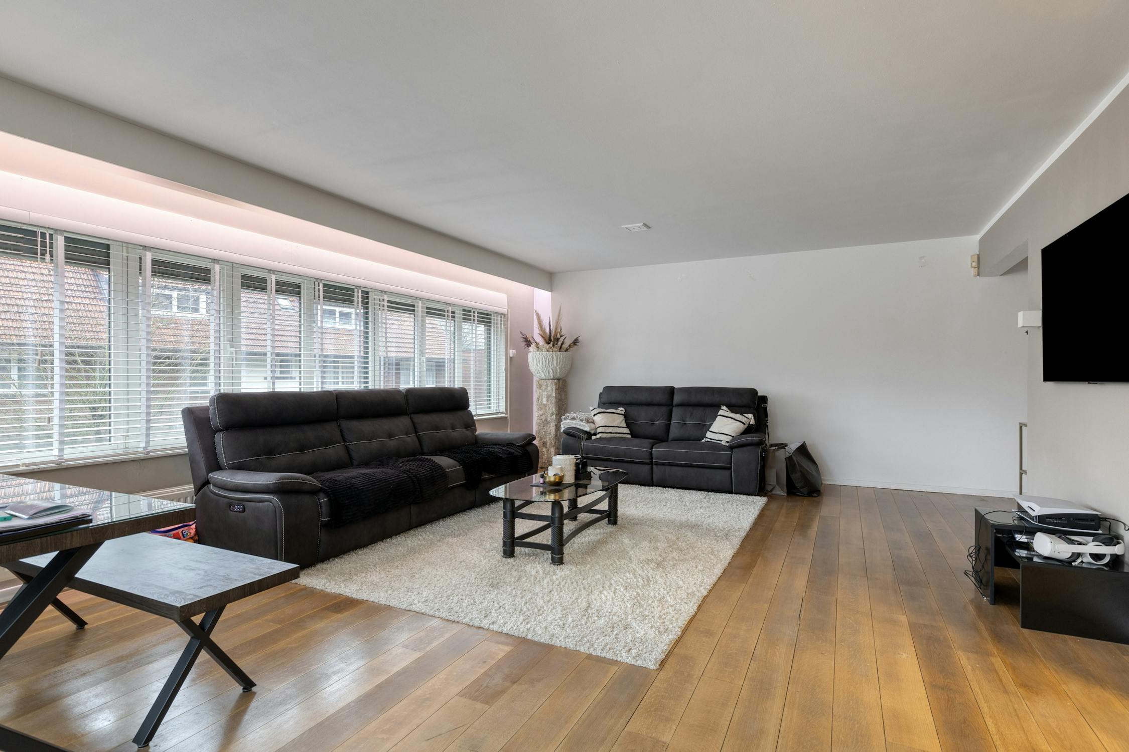 - Lichtrijke leefruimte (parket) van resp. ca. 40m² met voldoende ruimte voor een eet- en zithoek. De woonkamer is voorzien van airco.