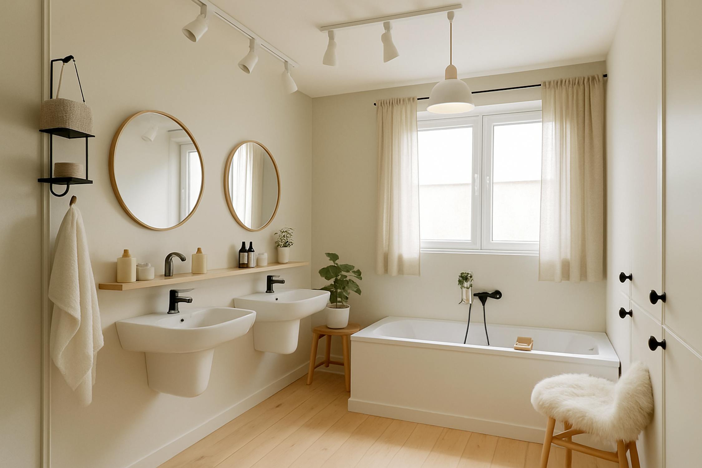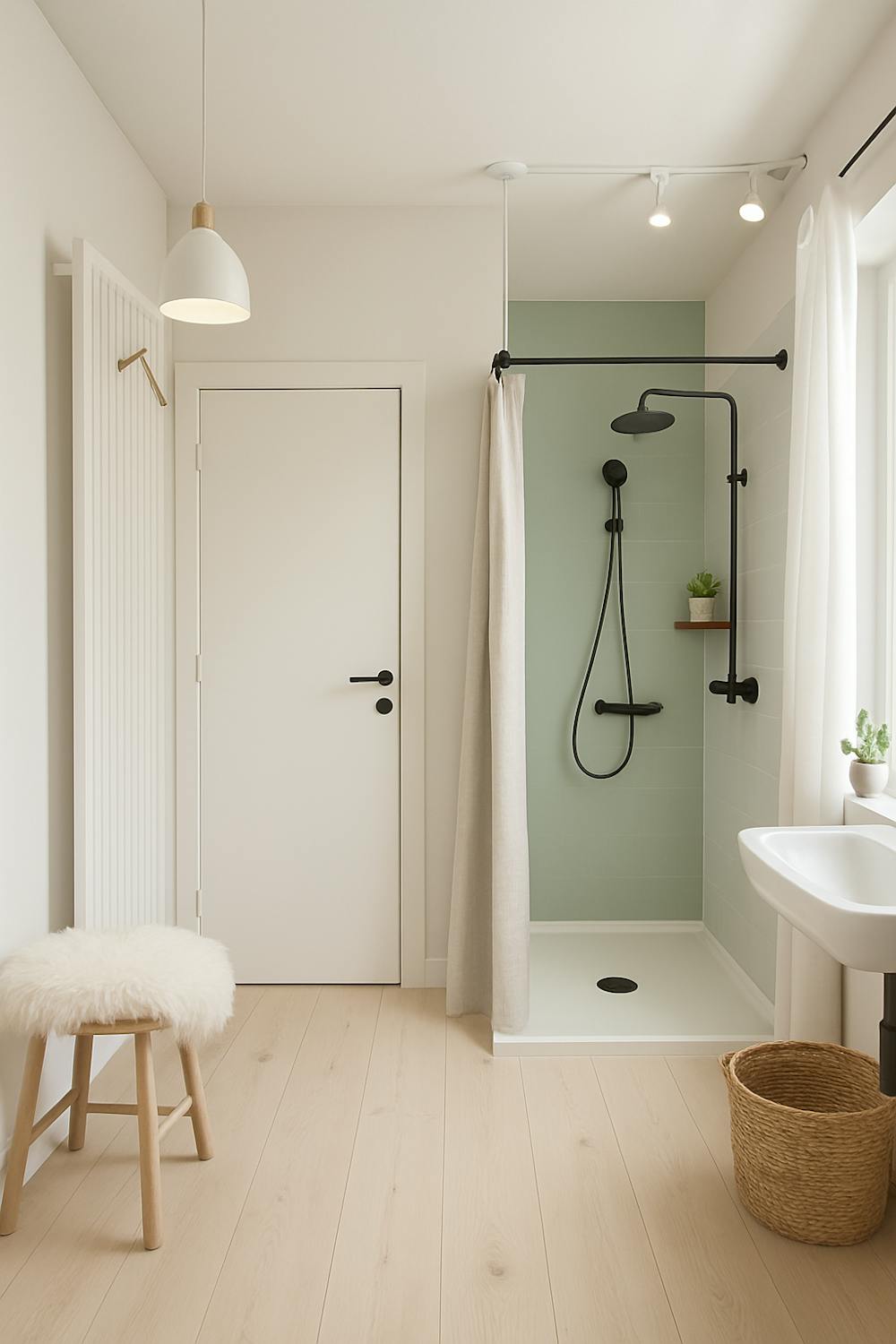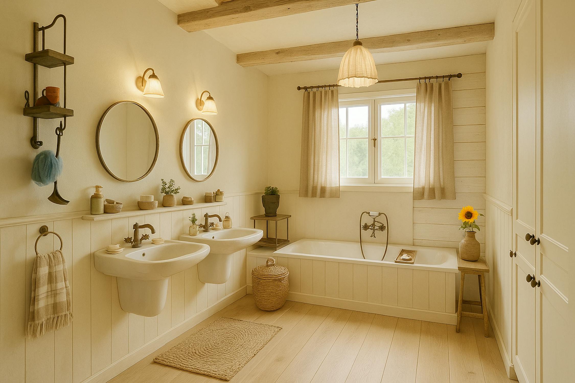 - Ruime badkamer met vernieuwde inloopdouche, ligbad en twee lavabo's.