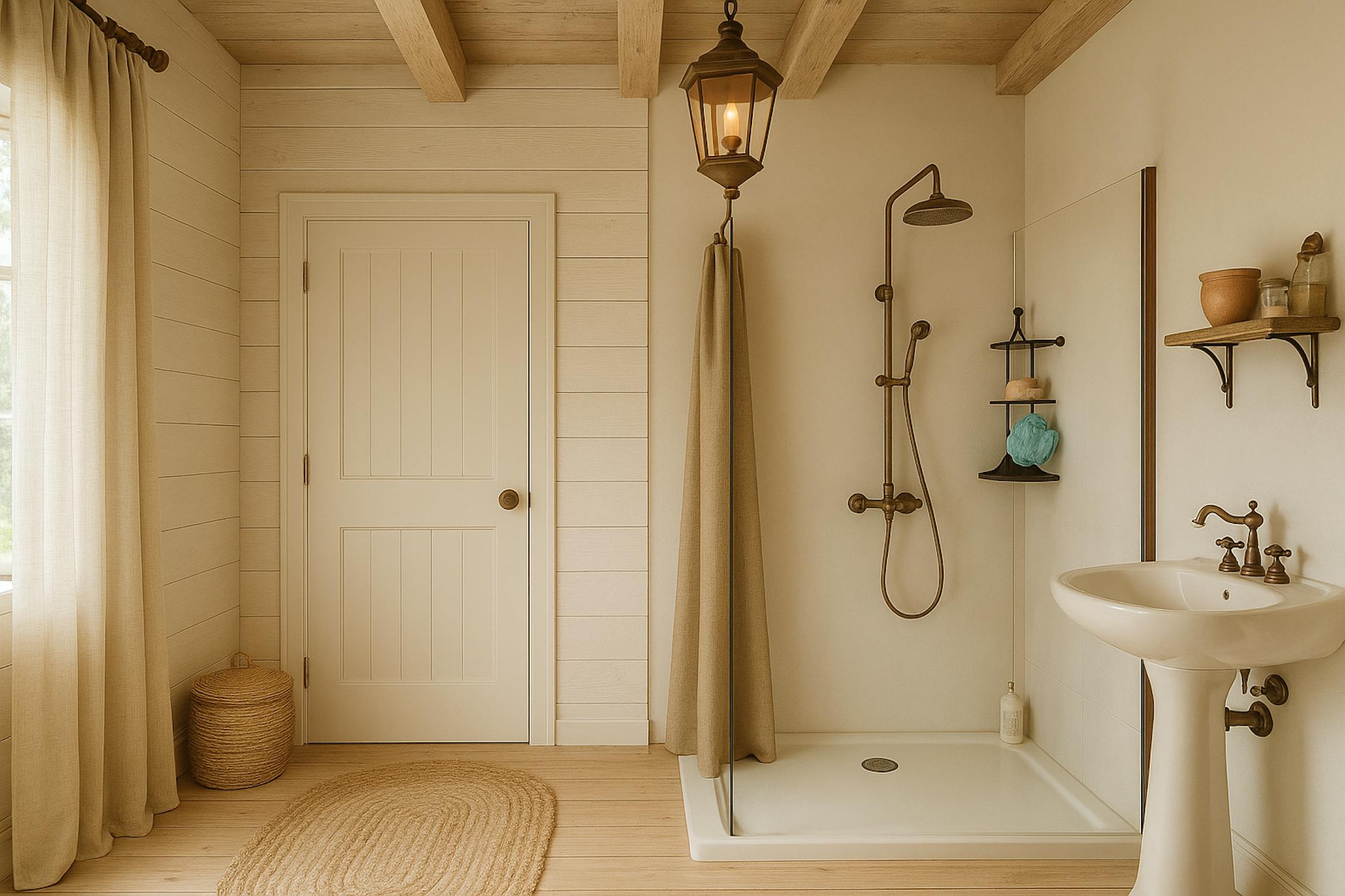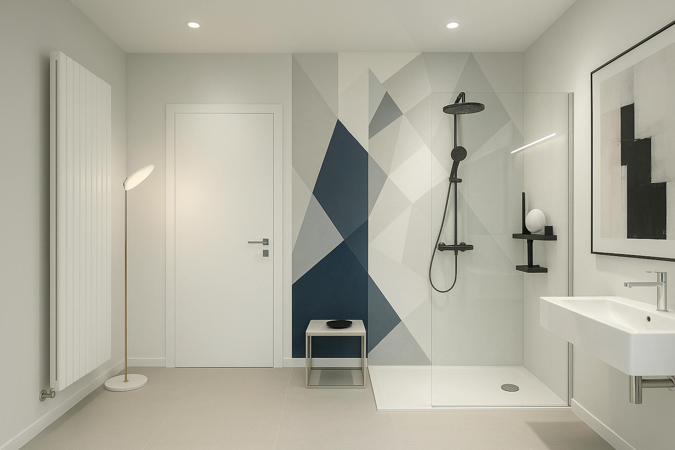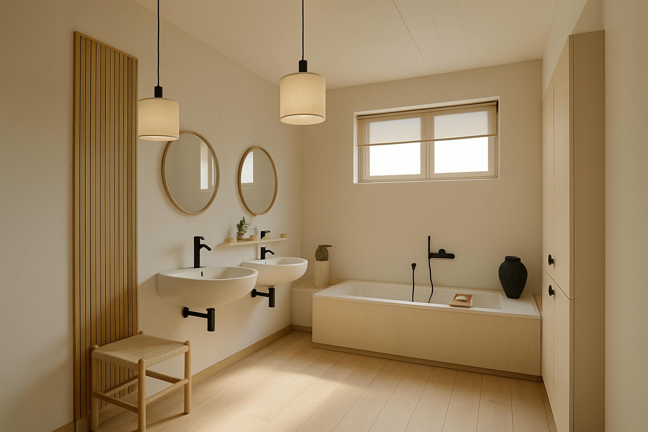 - Ruime badkamer met vernieuwde inloopdouche, ligbad en twee lavabo's.