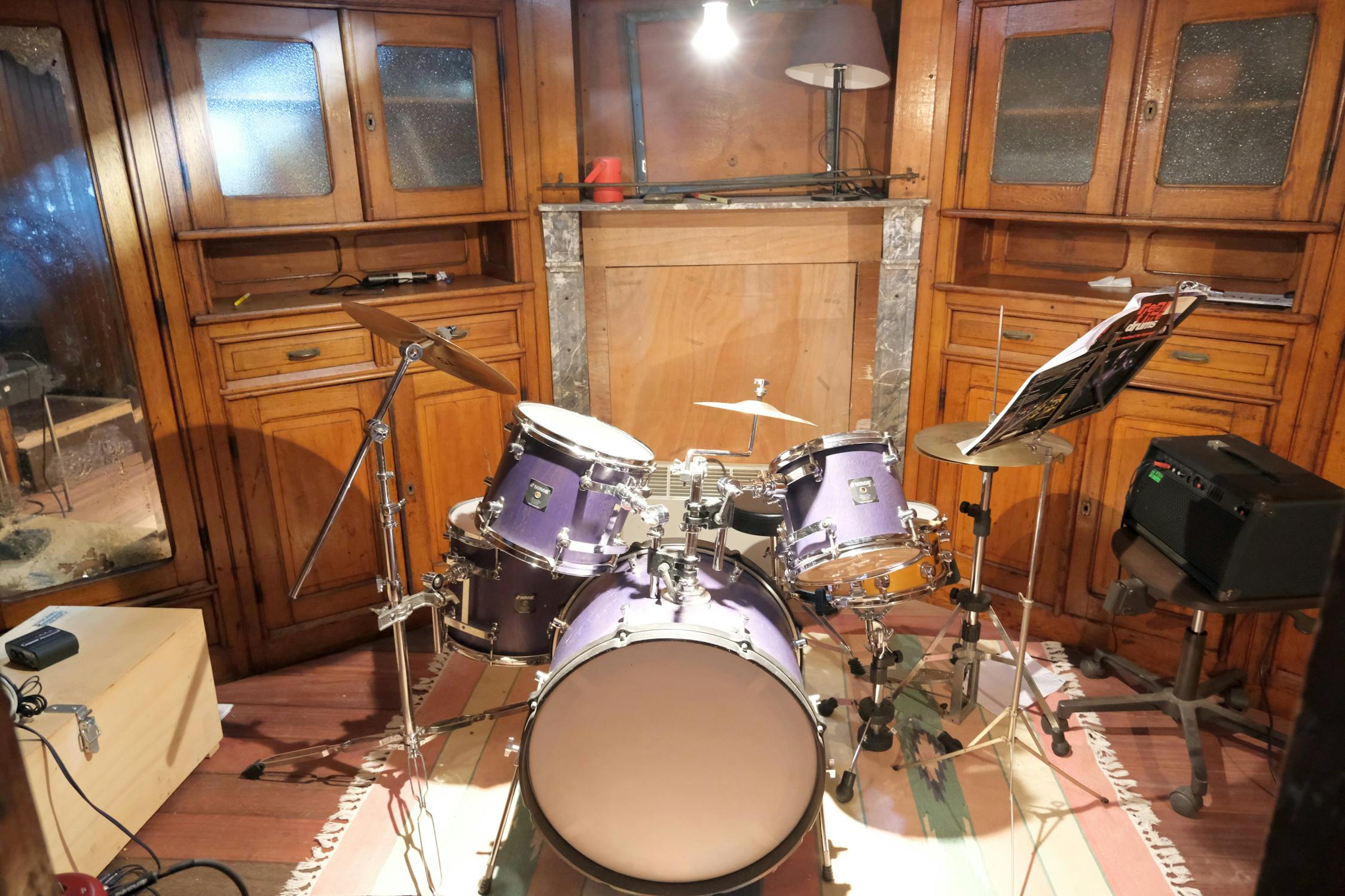 Onder de stuurhut bevindt zich nog een originele ruimte met prachtige kasten die momenteel ingericht is als muziekruimte.