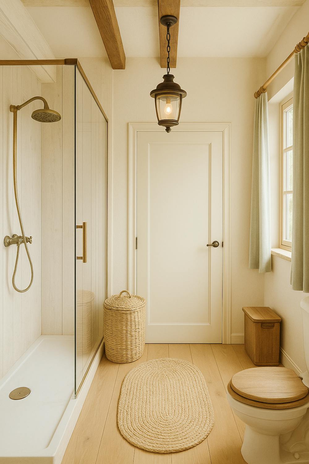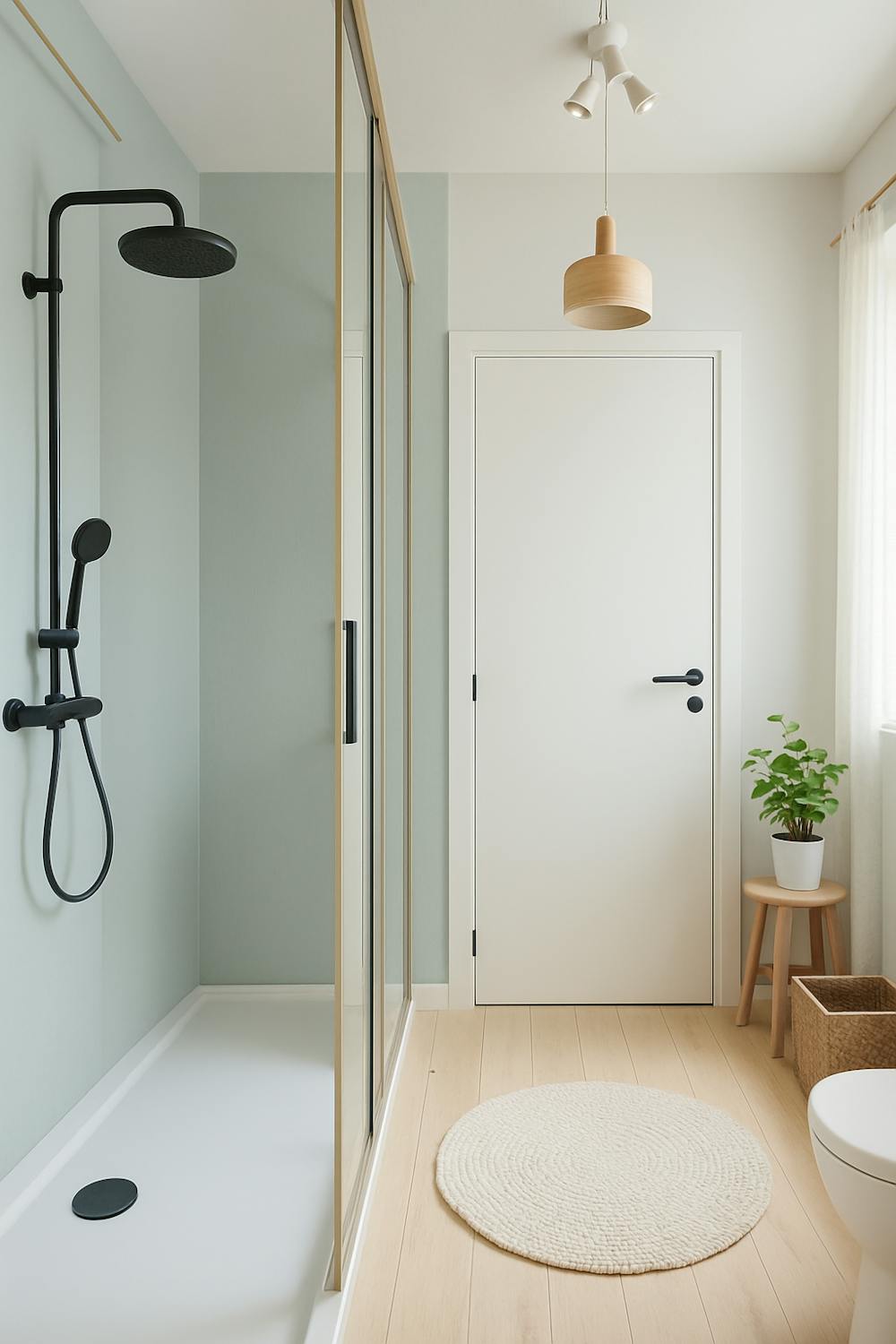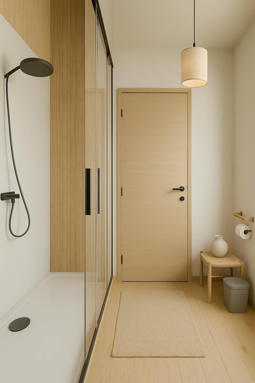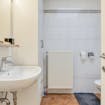 - badkamer met douche, toilet en lavabomeubel