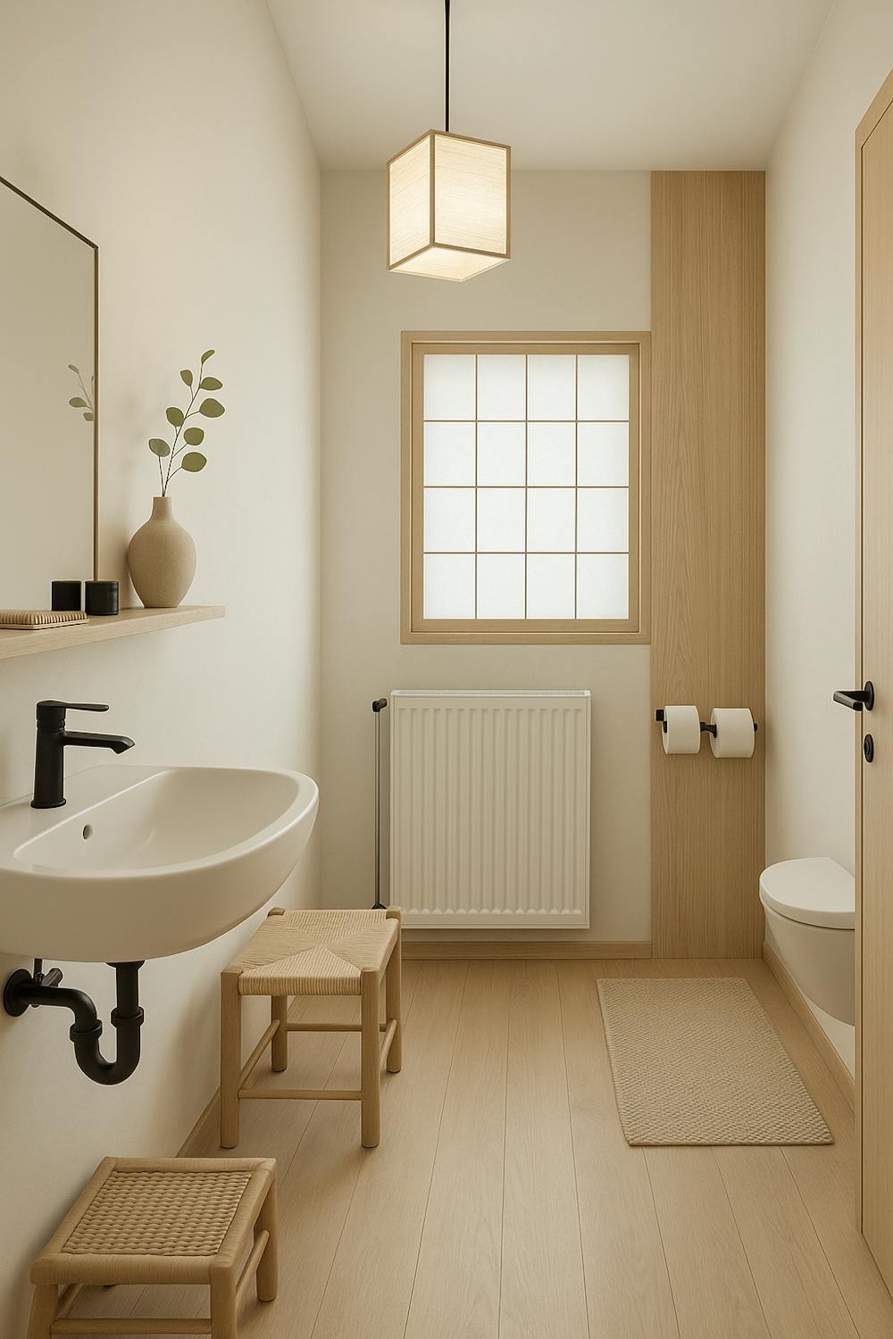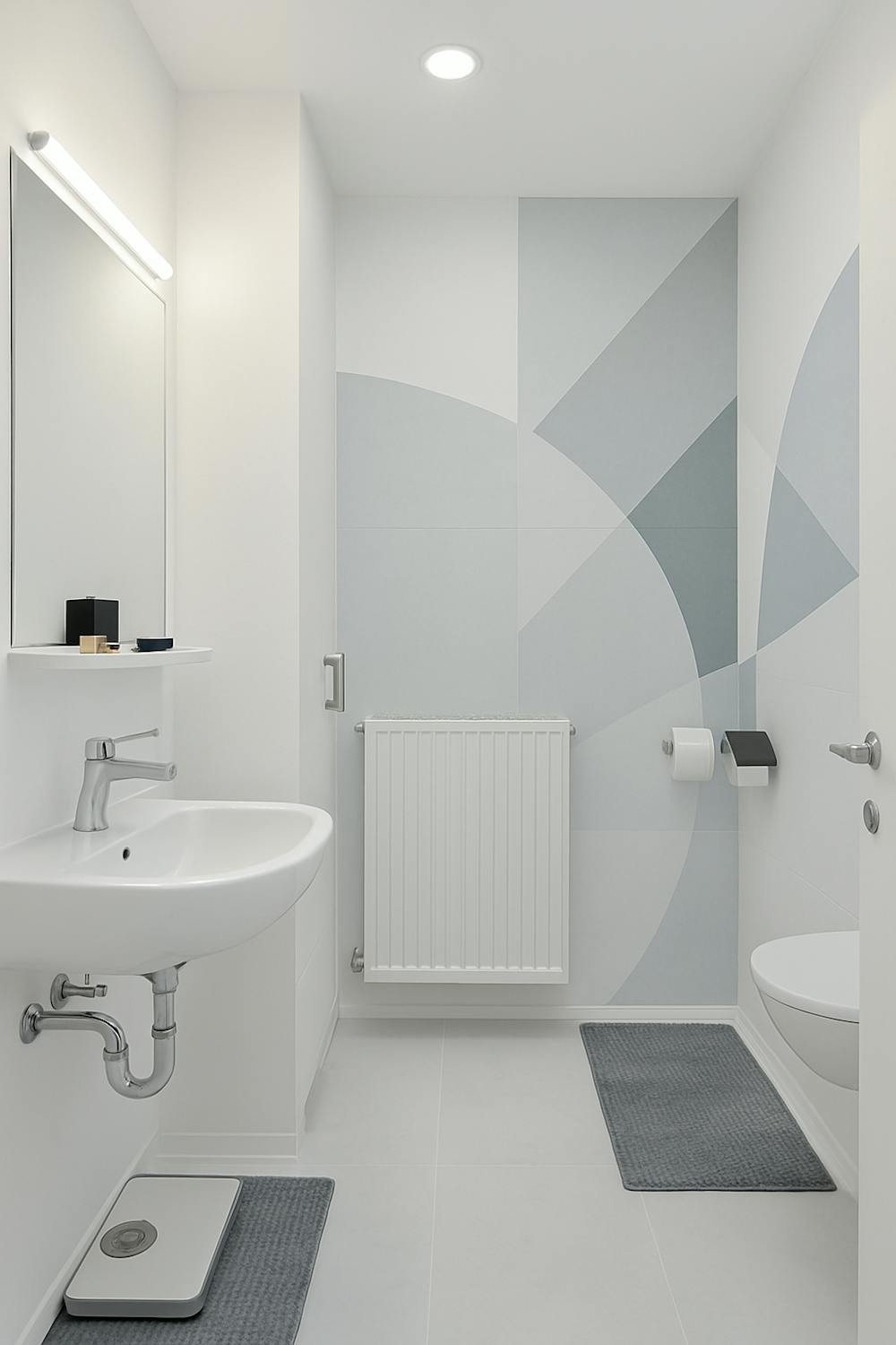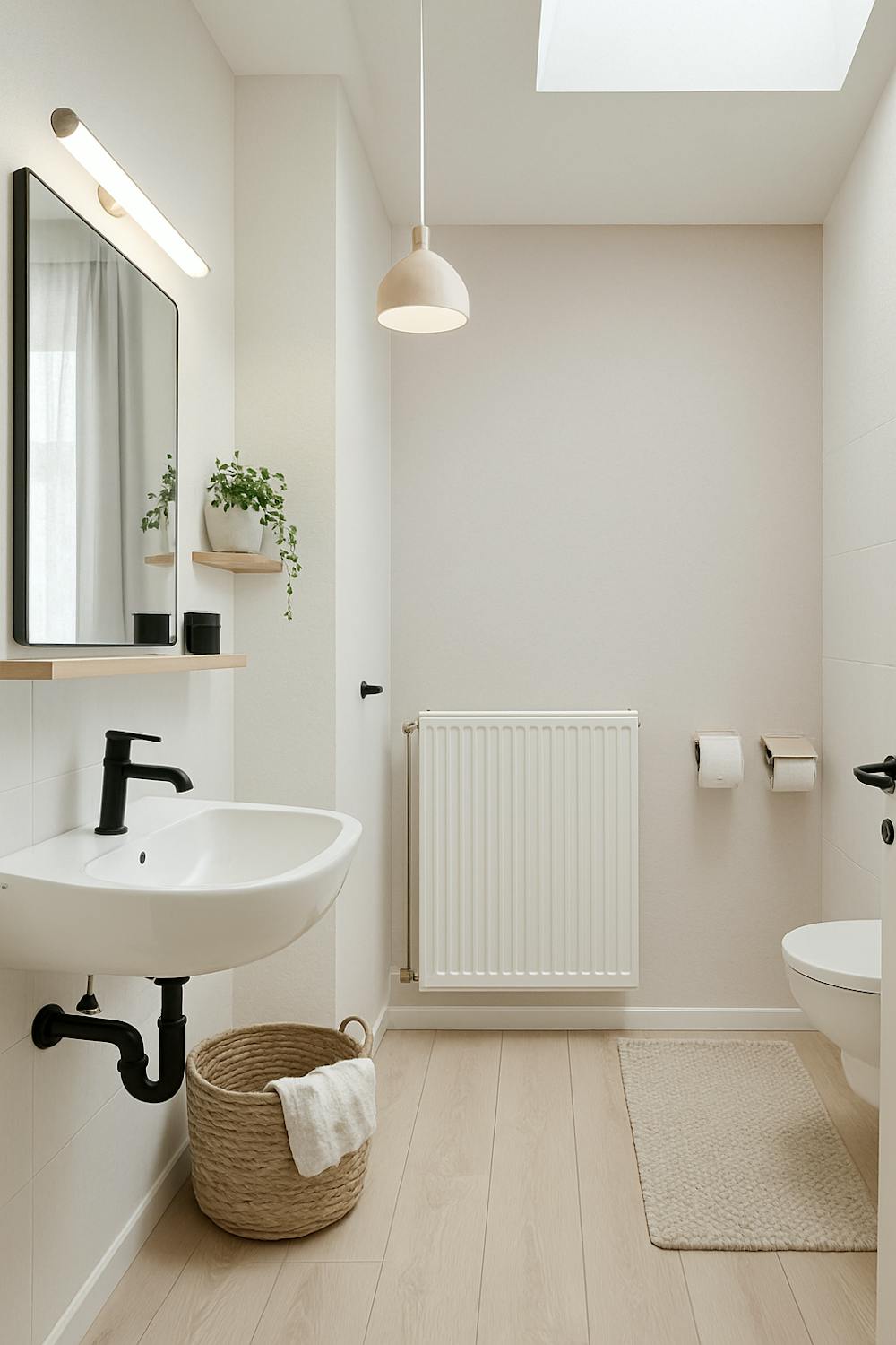 - badkamer met douche, toilet en lavabomeubel