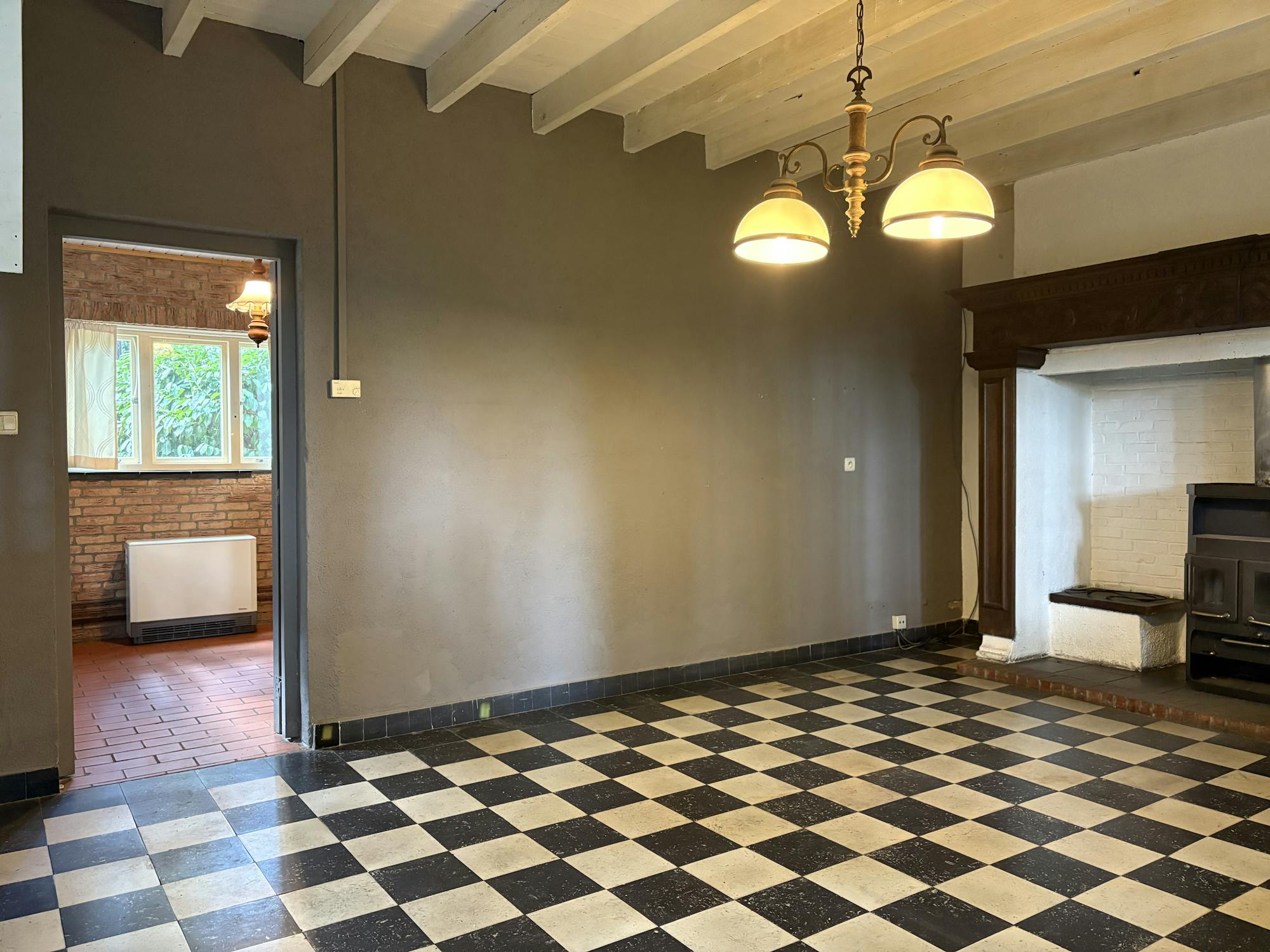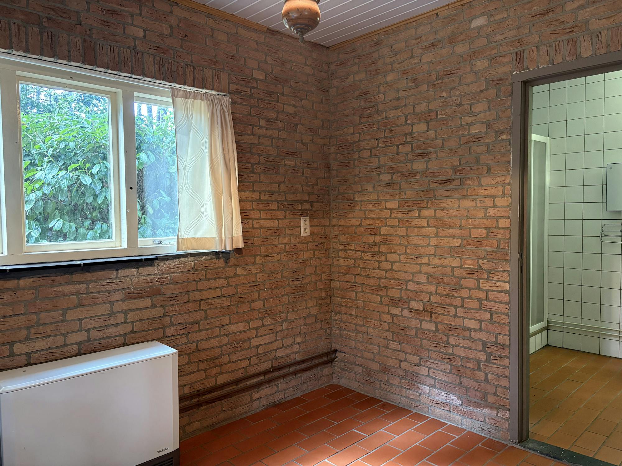 De woning wordt elektrisch verwarmd en beschikt over houten ramen met enkel glas.