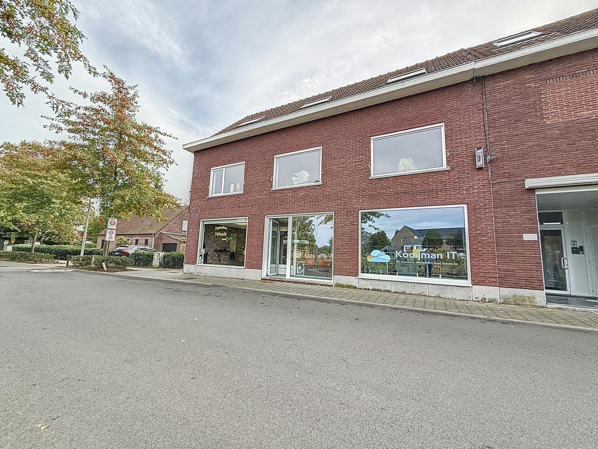 - Dit karaktervolle hoekpand (bouwjaar 1955, nadien gefaseerd kwalitatief vernieuwd), erkend als opbrengsteigendom, vormt het commerciële hart van de gemeente. Het bestaat uit 6 handelspanden en 7 residentiële eenheden, waaronder gerenoveerde appartementen, duplexen, een studio en een luxe penthouse.