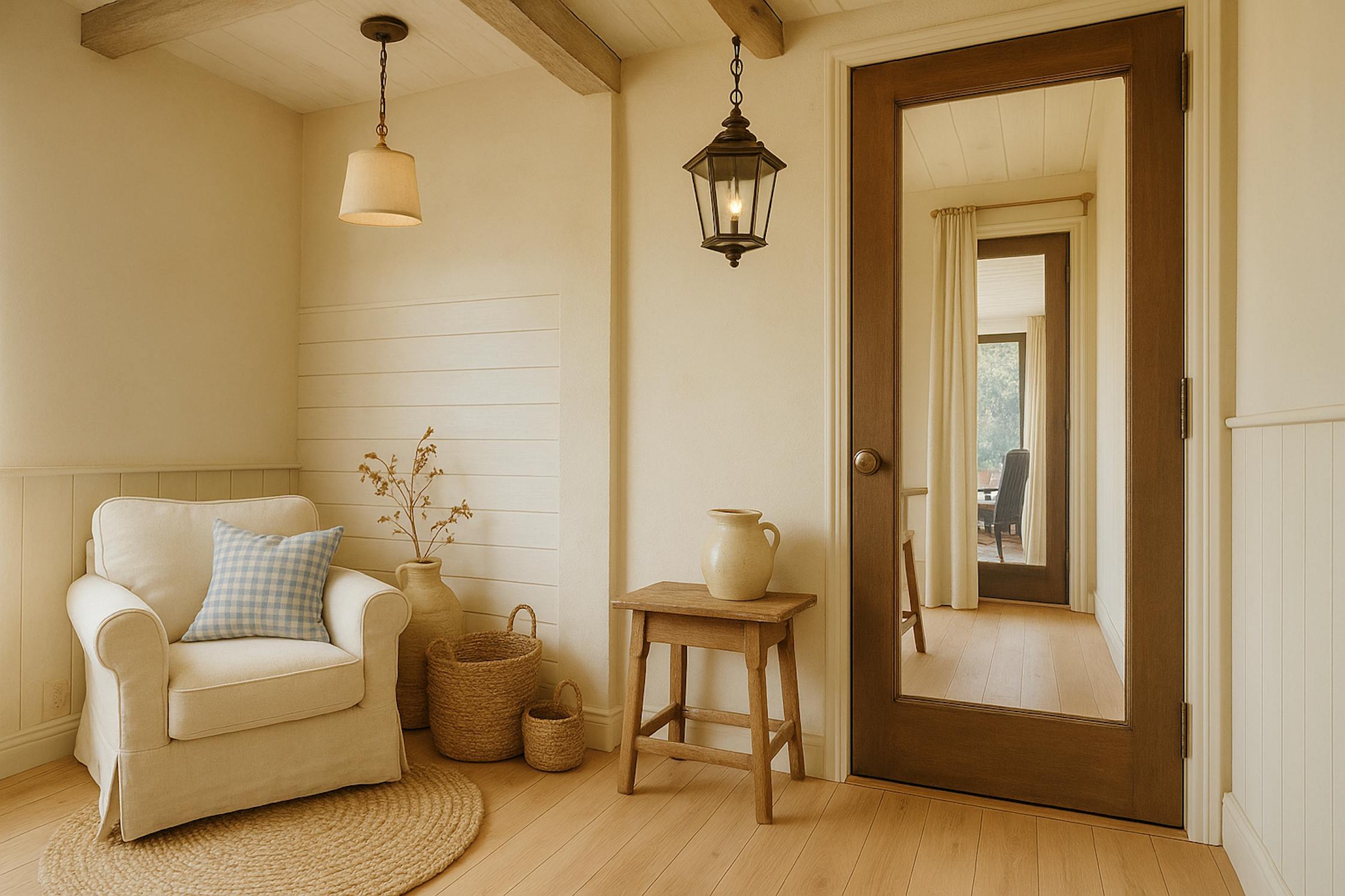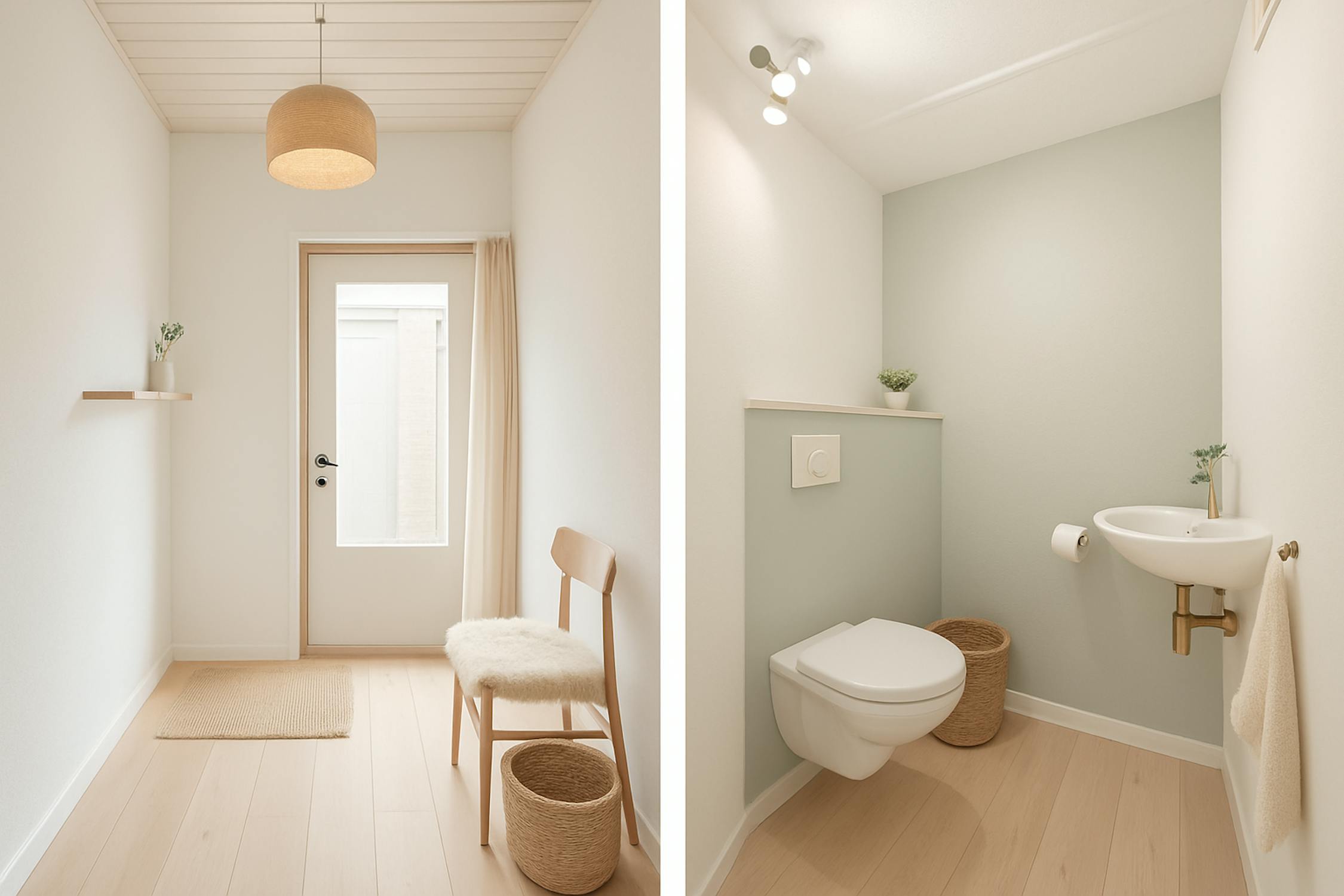 We betreden de woning via de inkomhal. Hier vinden we een apart gastentoilet met handenwasser terug.