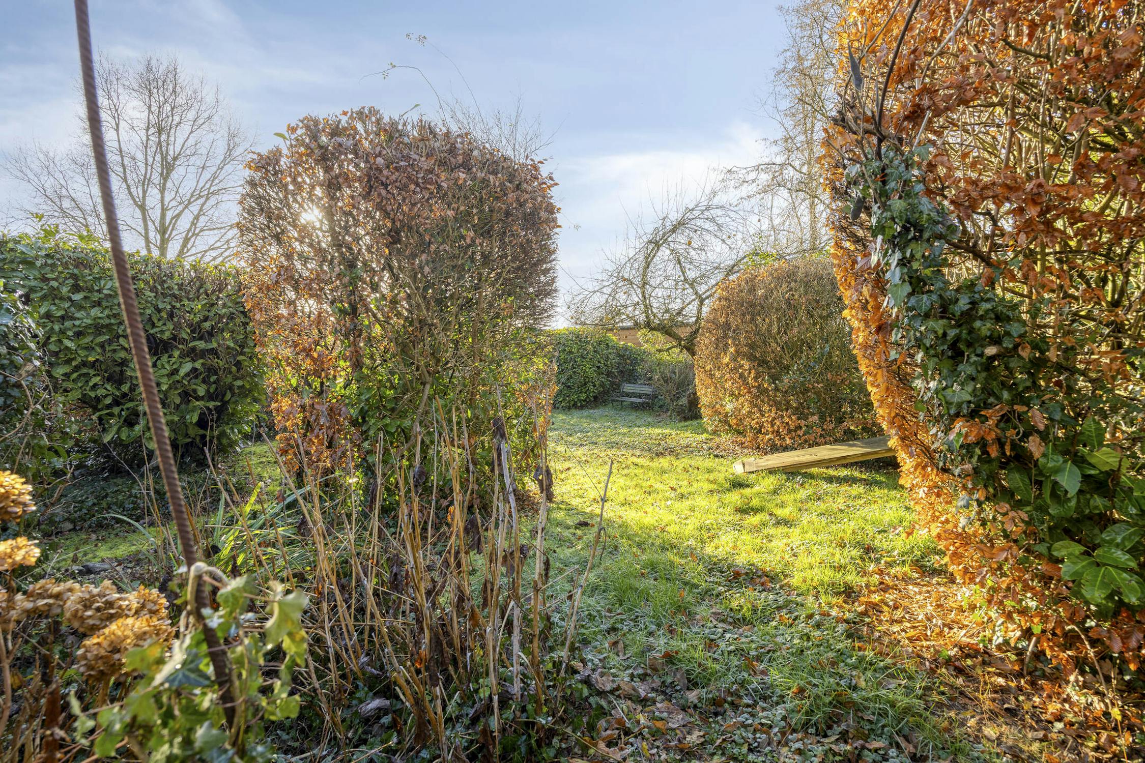 Achteraan bevindt zich een aangename tuin met een veranda, ideaal om het hele jaar door van het buitenleven te genieten.