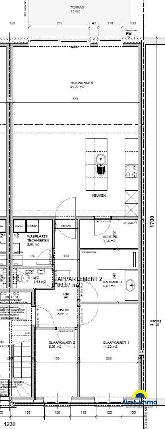 Gelijkvloers nieuwbouwappartement met 2 slaapkamers.