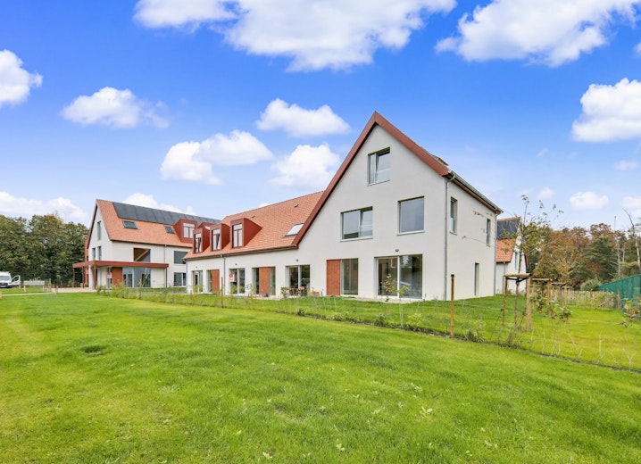 Het project telt 16 woningen, telkens met 1 tot 4 slaapkamers, en 5 inclusiestudio’s voor begeleid zelfstandig wonen. Elke woning beschikt over een privéterras en/of -tuintje. Je vindt hier rust en ontspanning in de ruime, aangelegde tuin en boomgaard, aan de zwemvijver of in de sauna. Klussen of je hobby uitoefenen kan je in de schuur. Heb je groene vingers? Dan is er plaats om samen met je buren een moestuin aan te leggen. Heerlijk, niet? Het gerenommeerde architectenbureau B-architecten tekende het volledige project.