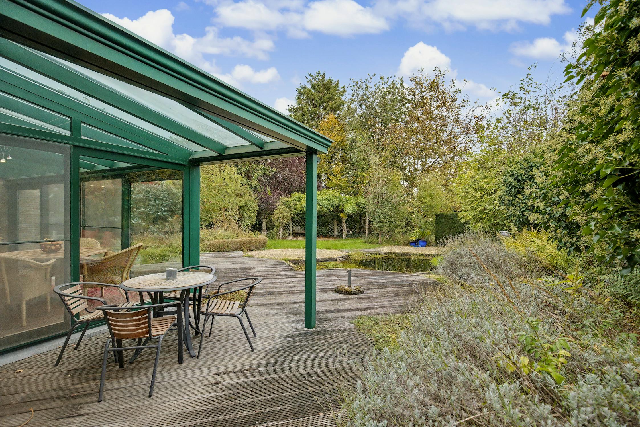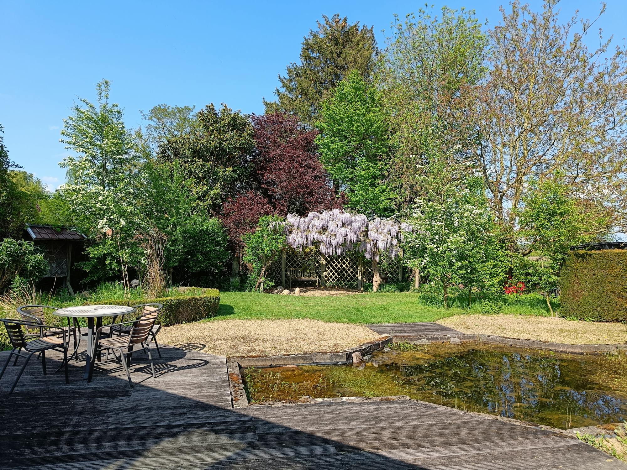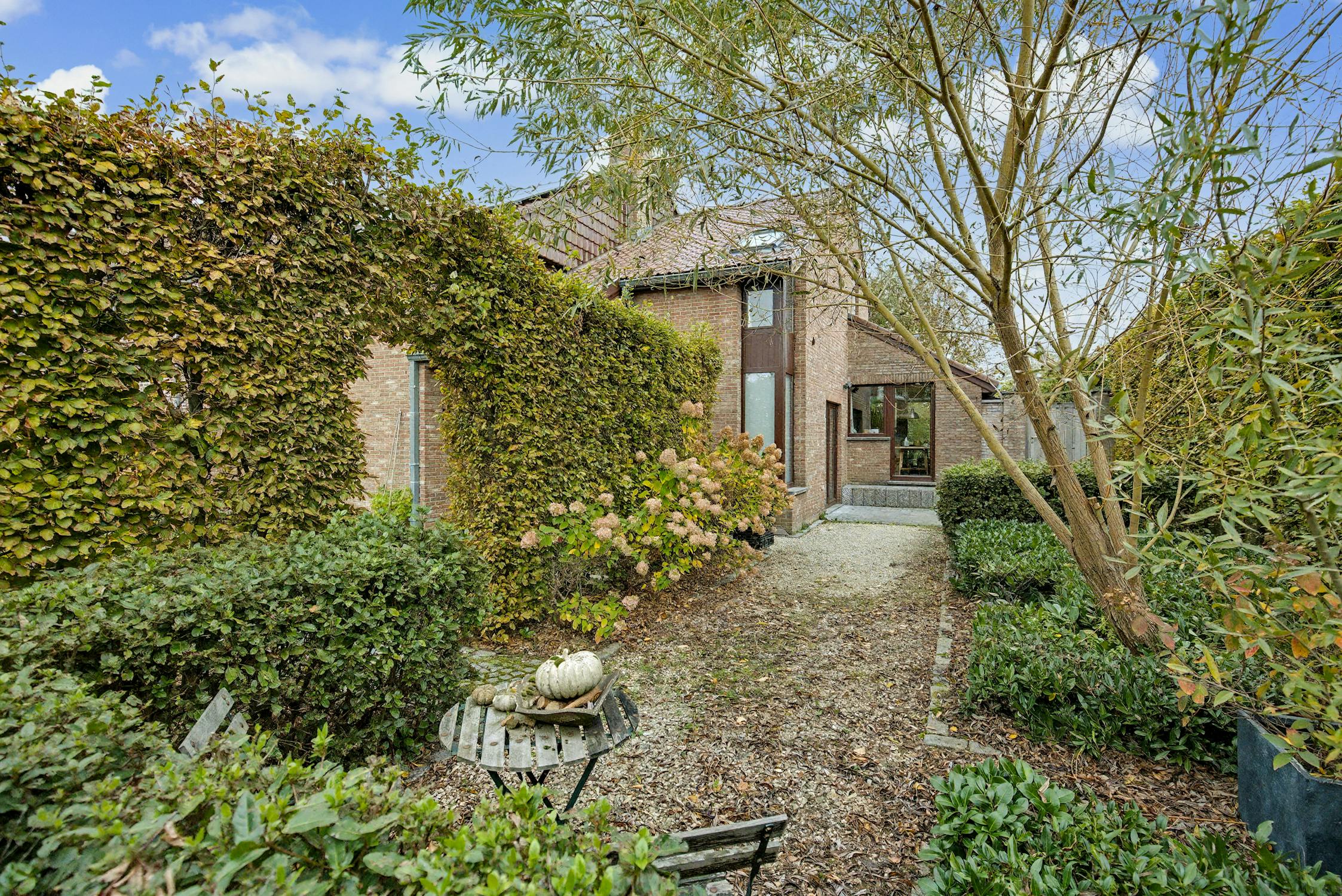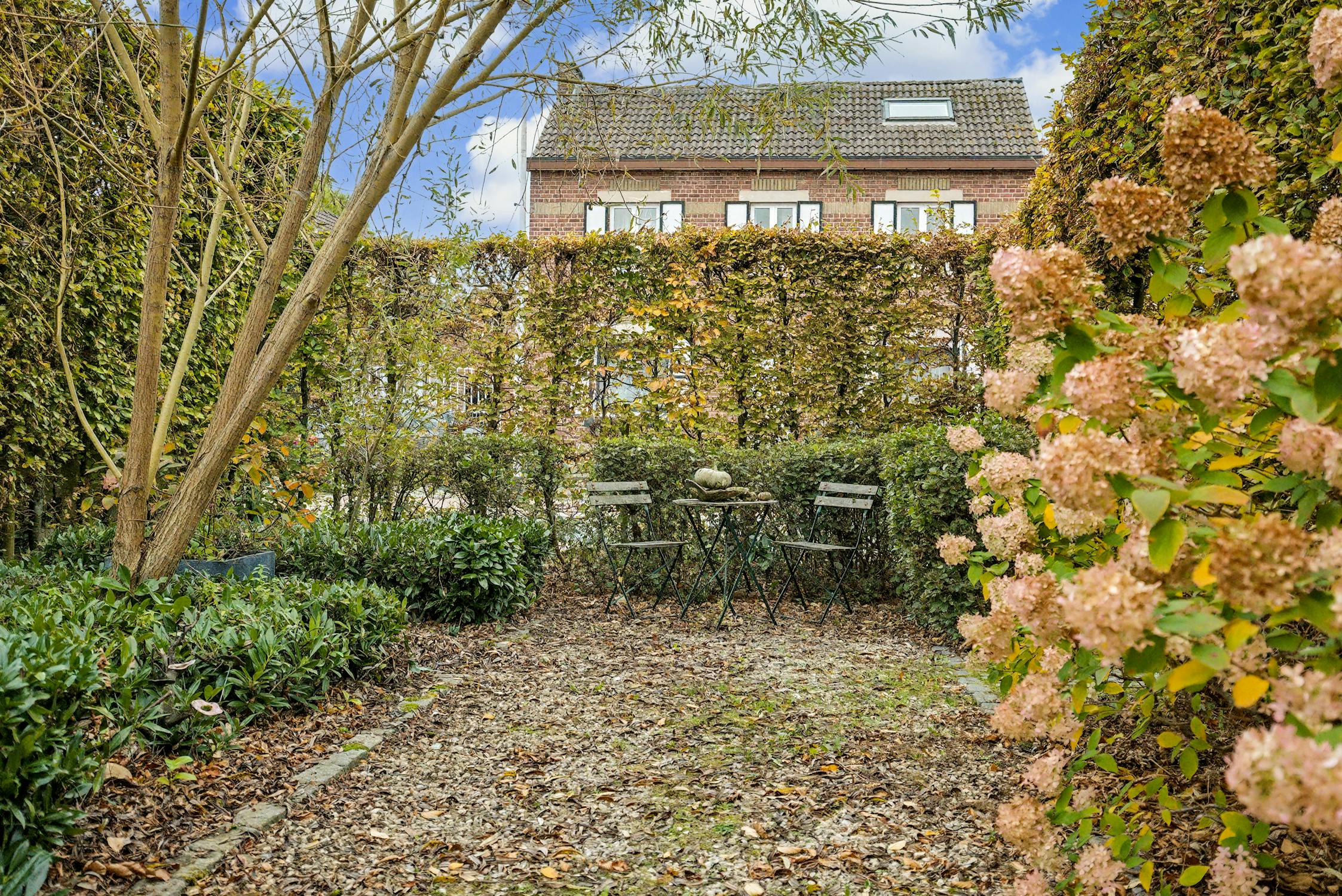 - aangelegde tuin met hoge hagen (privacy!)
