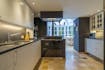 Ook de grote leefkeuken geniet van zicht op het groen en veel lichtinval, dankzij de glazen uitbouw waar u gedurende elk seizoen heerlijk kan tafelen. Het marmeren werkblad, de hoogkwalitatieve keukenapparatuur, de tegelvloer en de ingemaakte kasten zorgen ervoor dat kookplezier en gebruiksgemak hier primeren.