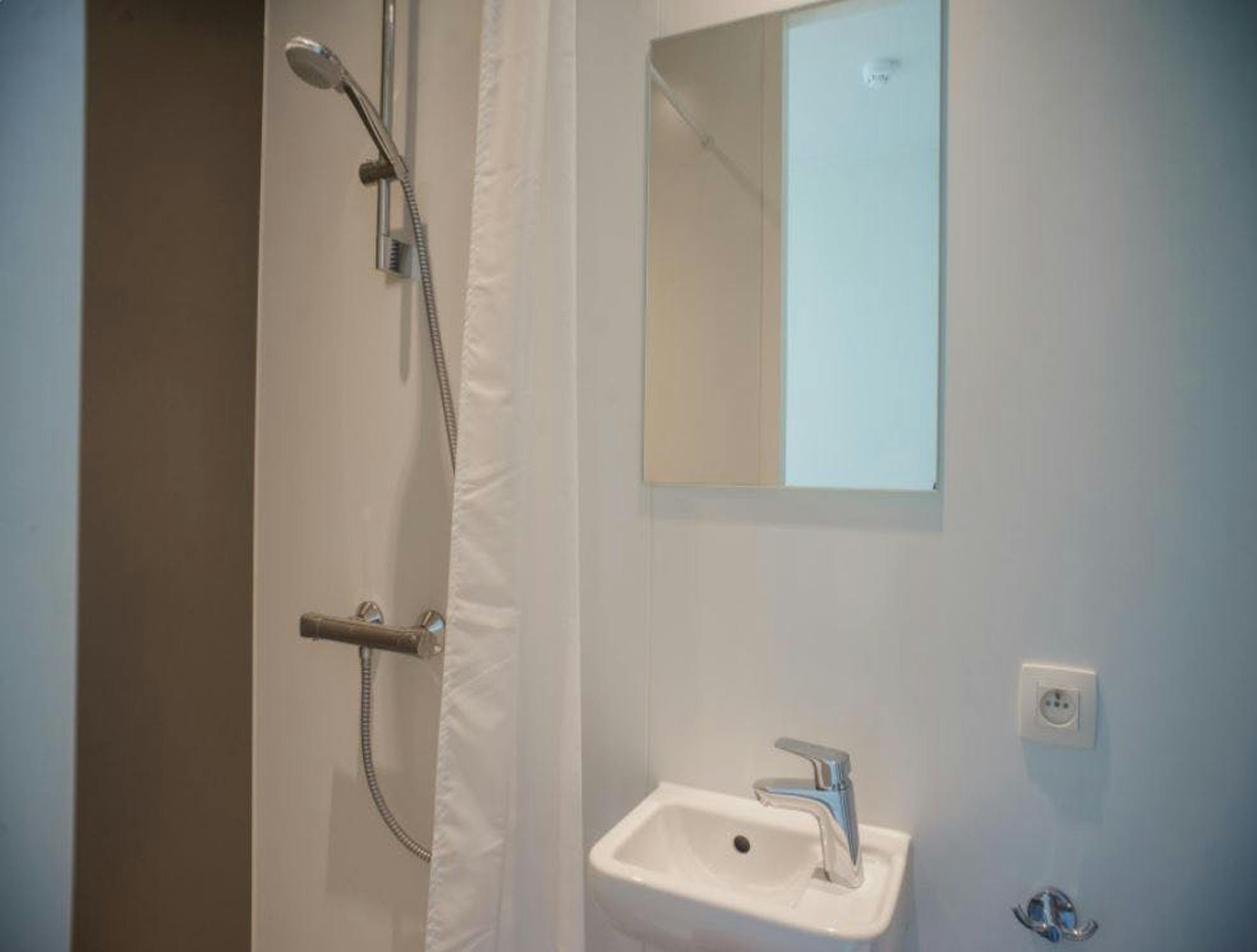 De studentenkamer is voorzien van een privébadkamer inclusief douche, lavabo en toilet.
