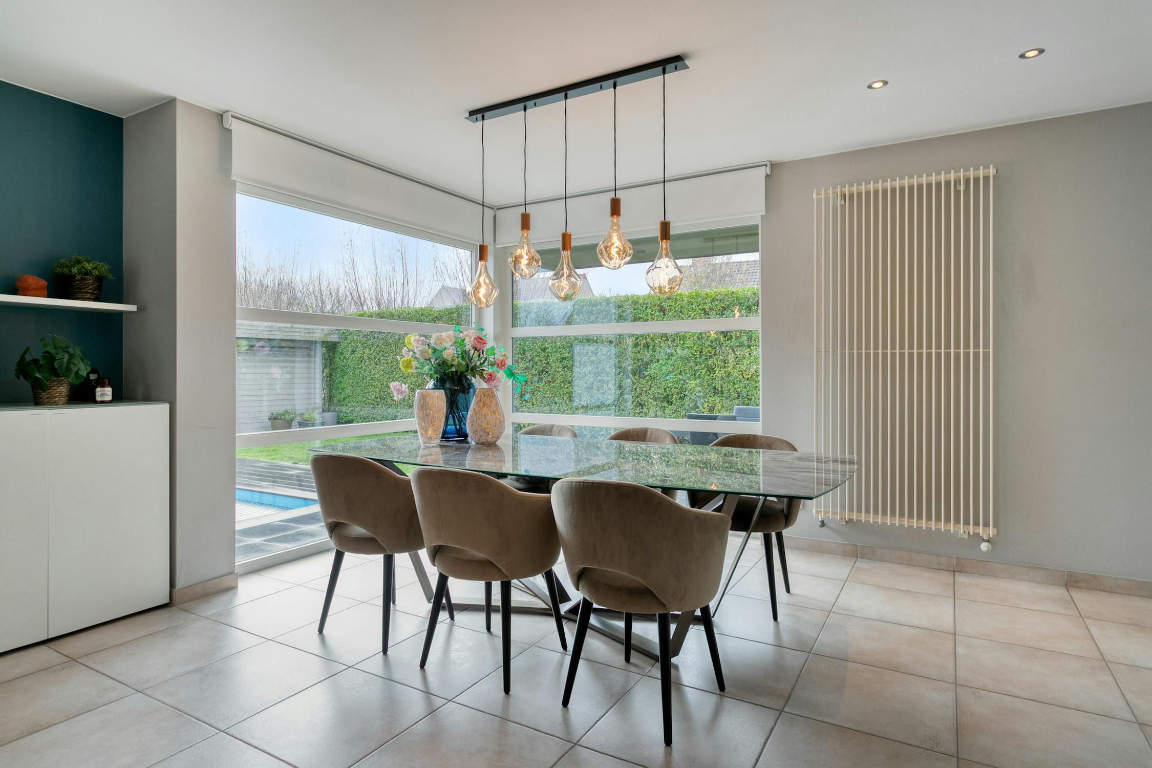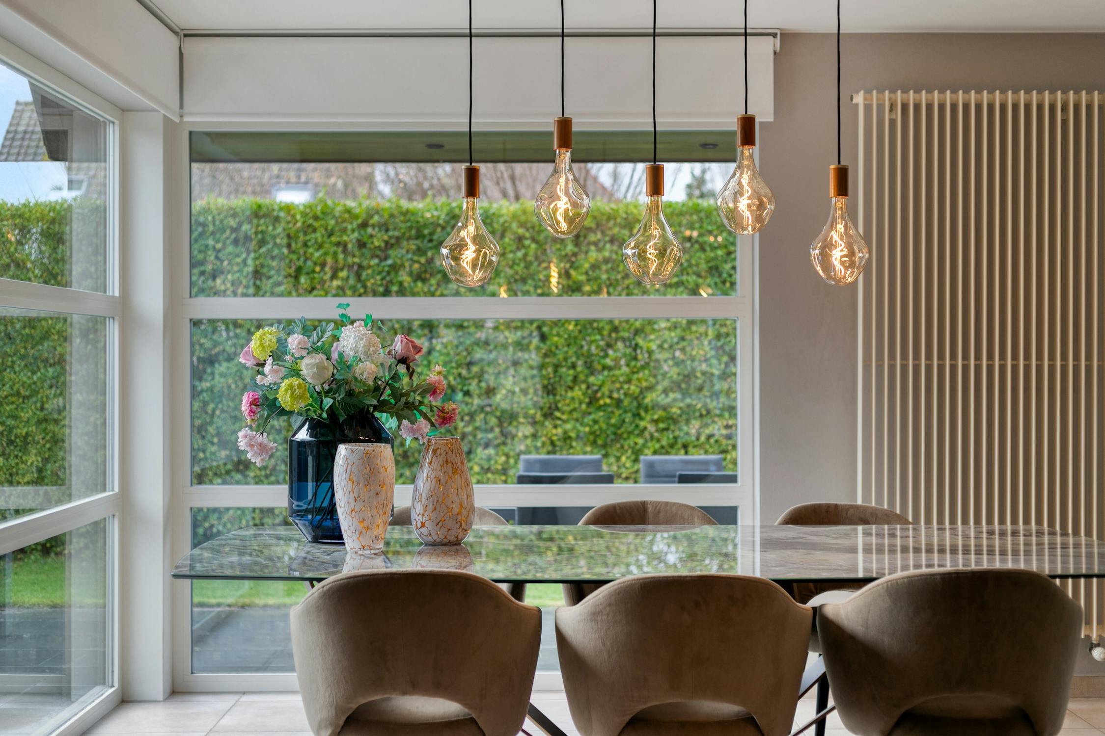 - eetkamer met zicht op de tuin