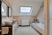 - ruime badkamer uitgerust met zowel een ligbad als een douche en een dubbele wastafel.