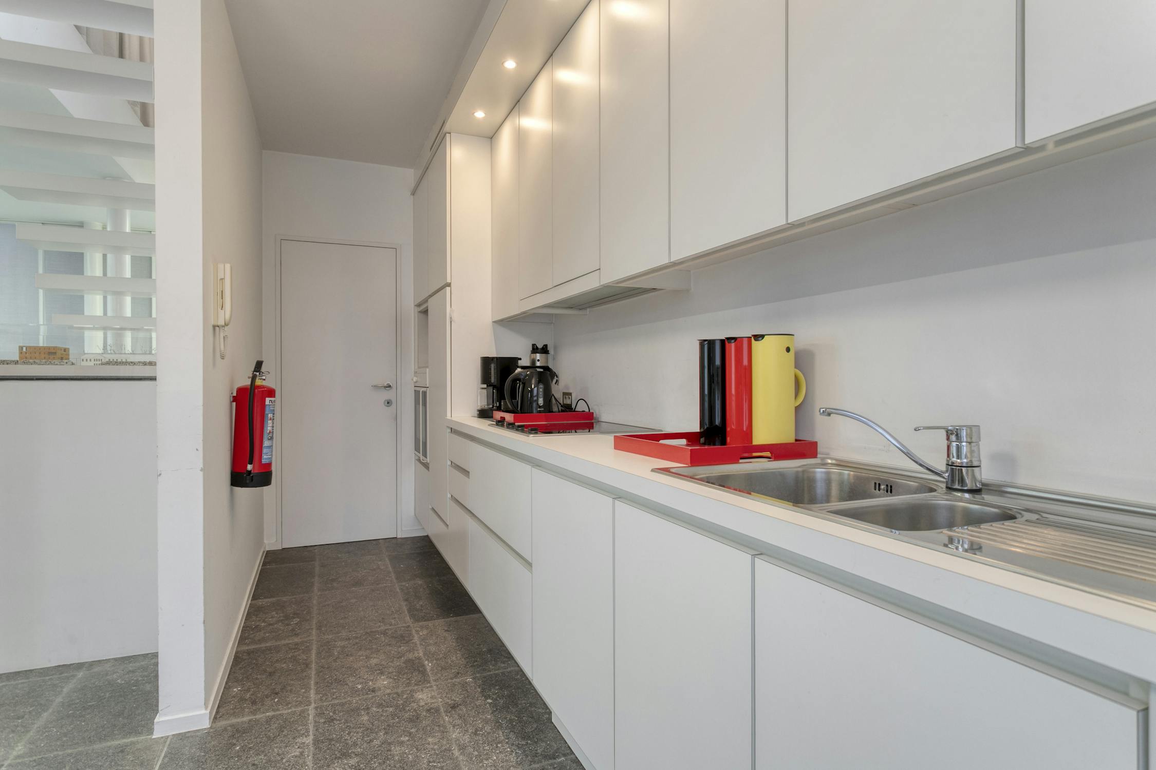 - apart bureel met ingerichte moderne keuken en opbergruimte met toegang tot een tweede verdiep.