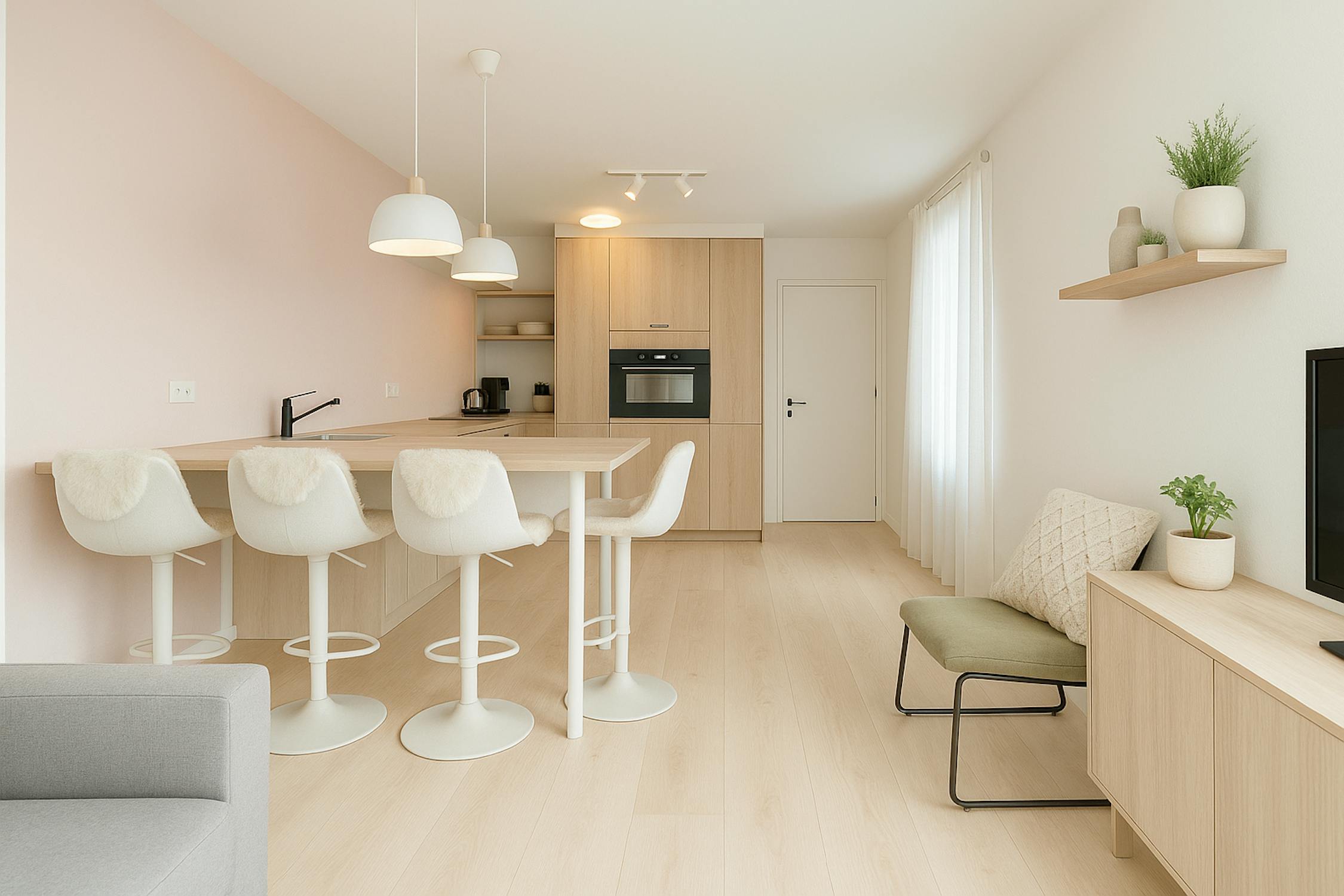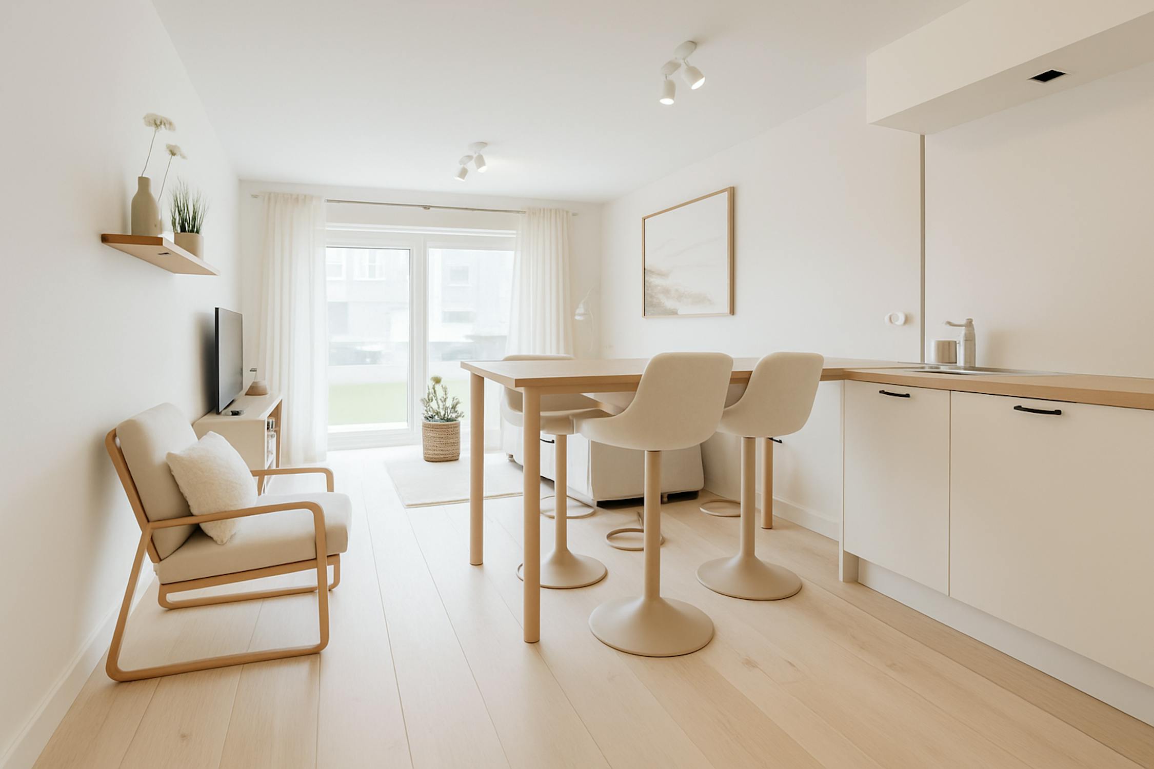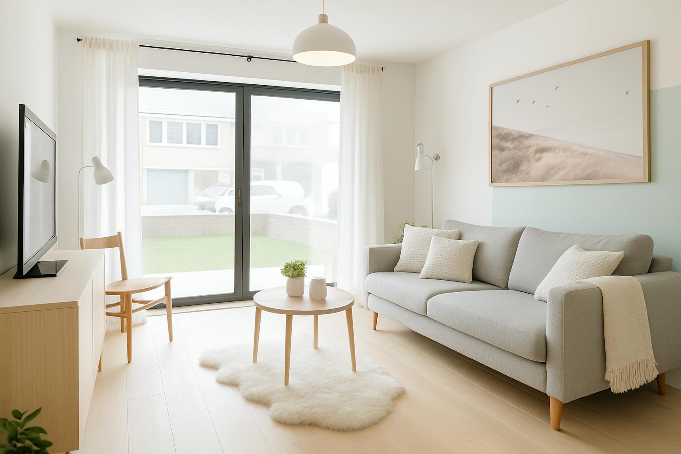 - leefruimte met toegang tot het terras vooraan