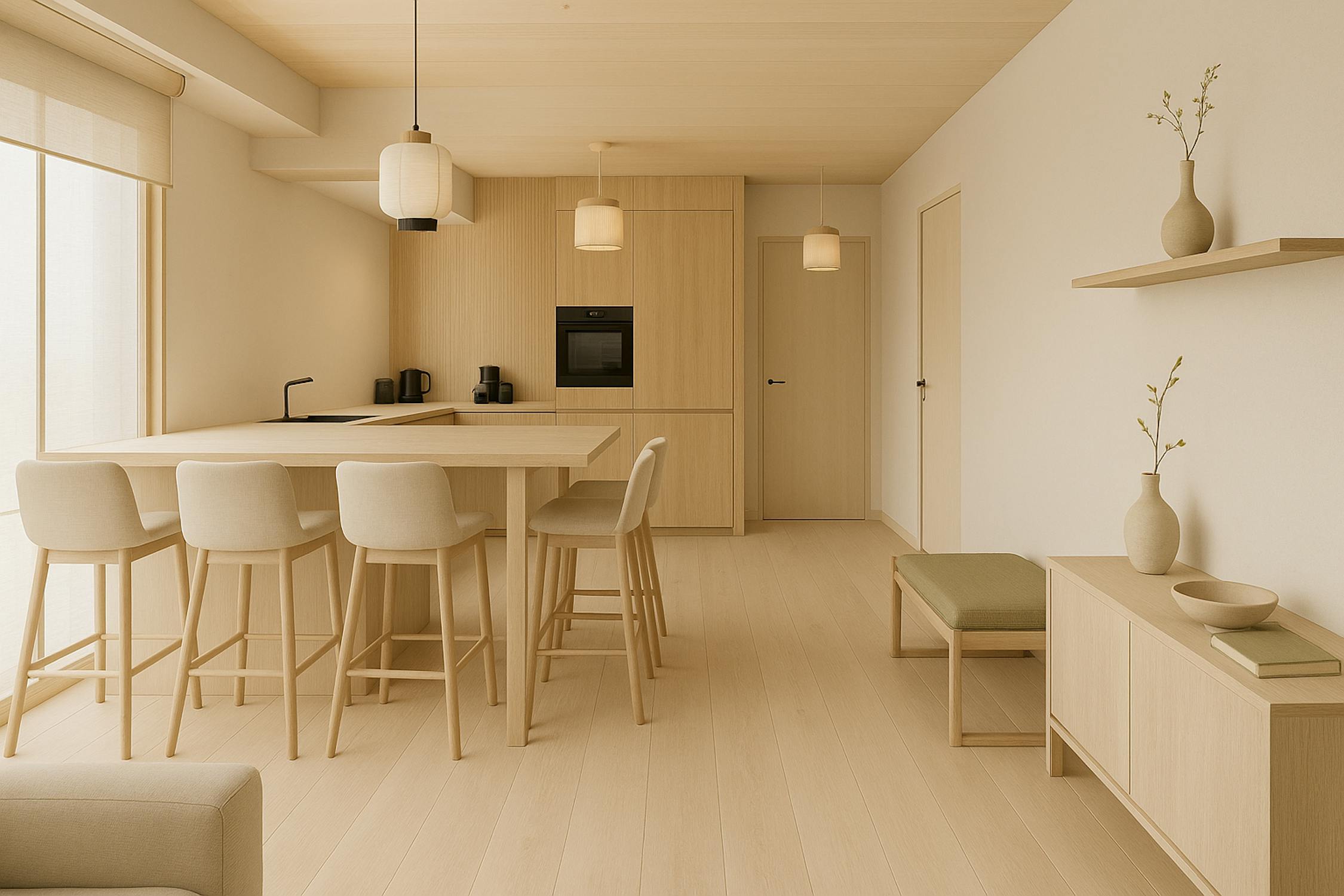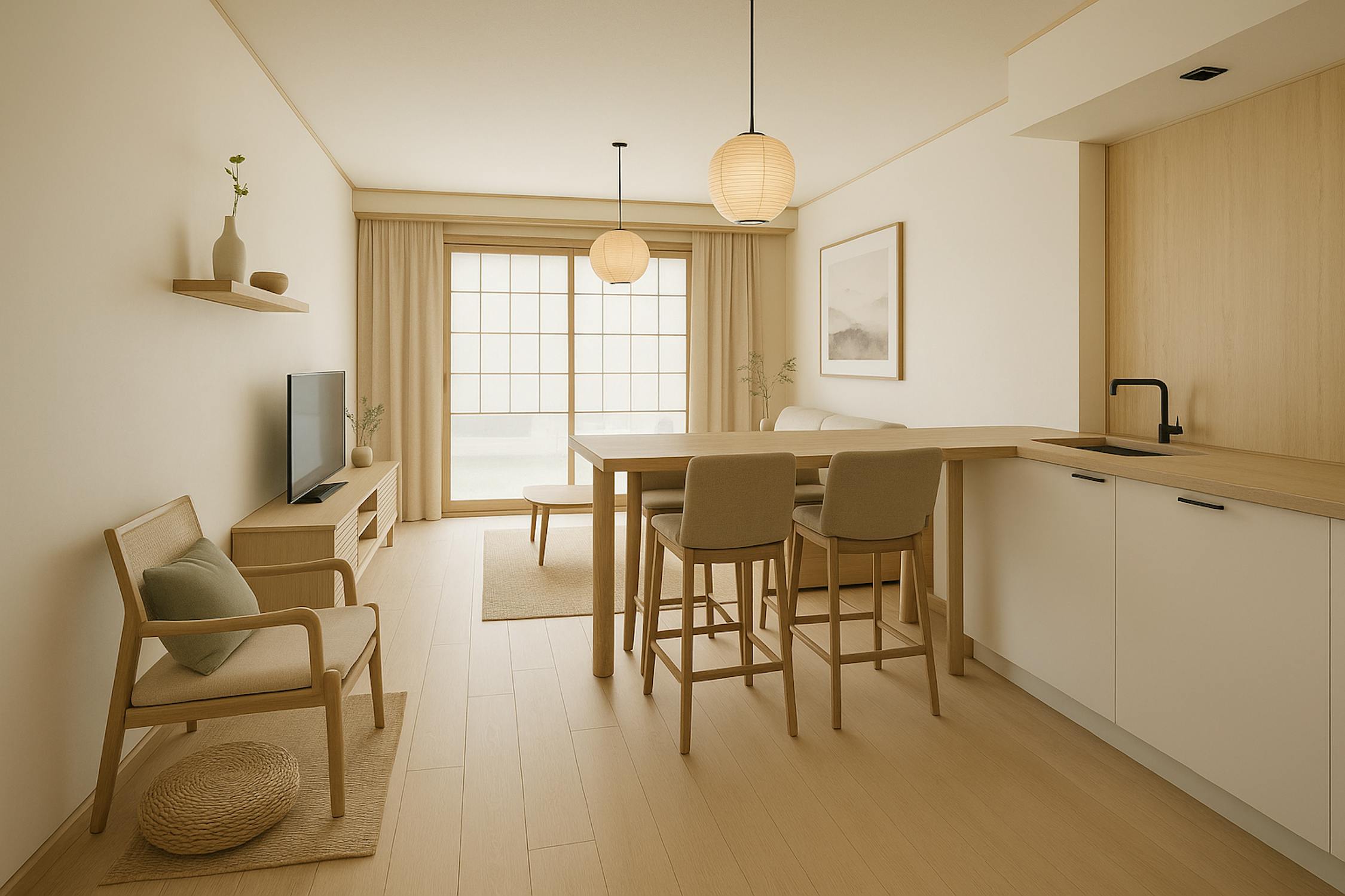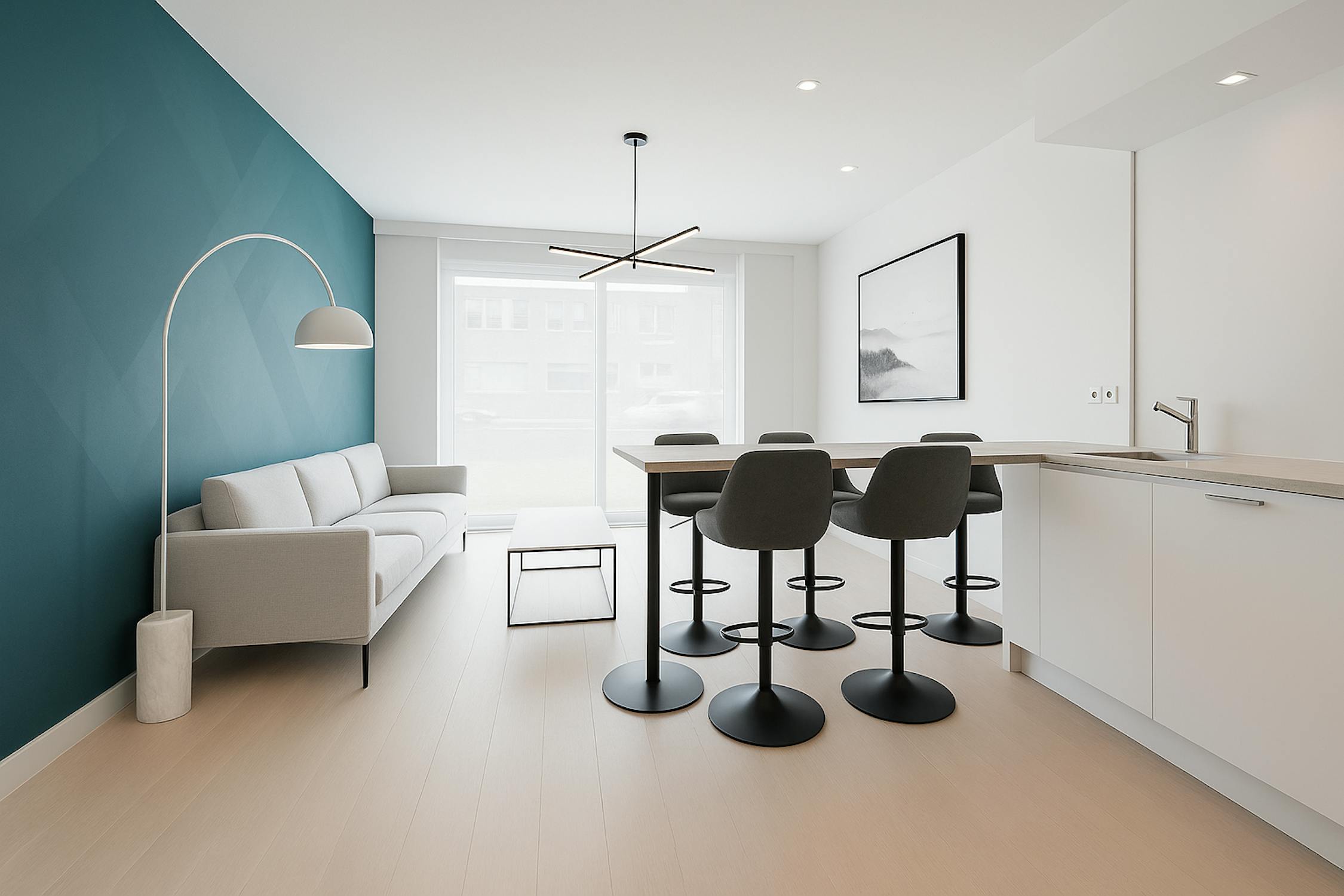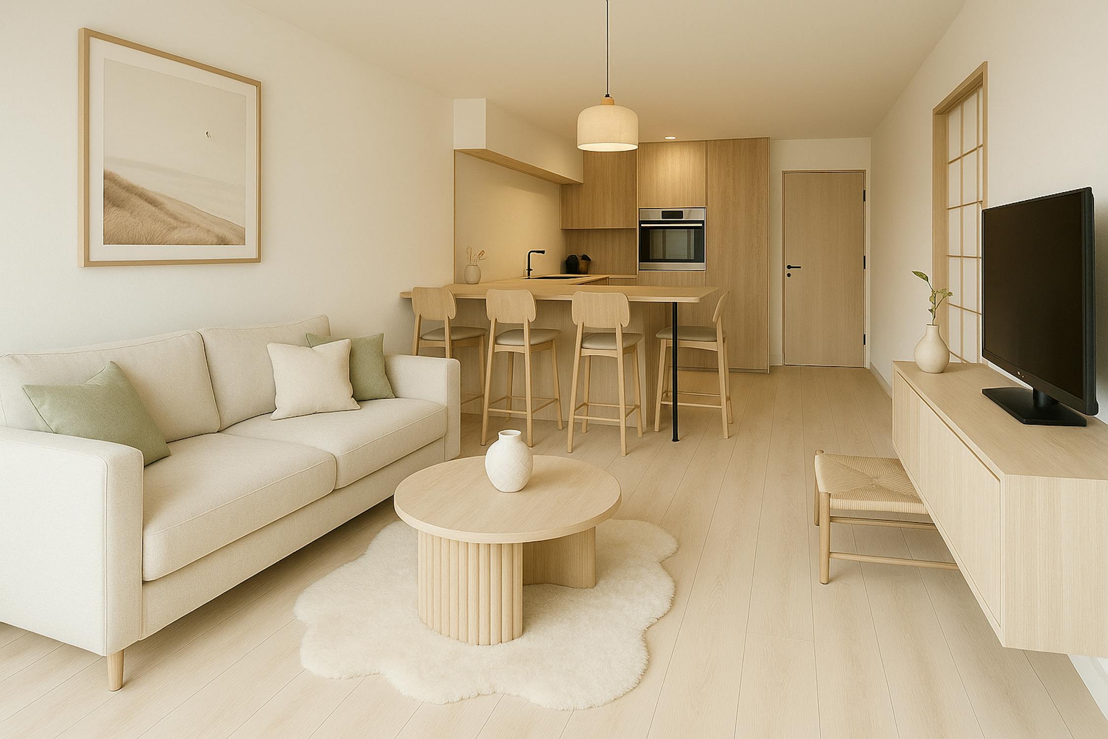 - leefruimte met toegang tot het terras vooraan