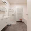 - badkamer voorzien van een douche, dubbele lavabo en bad