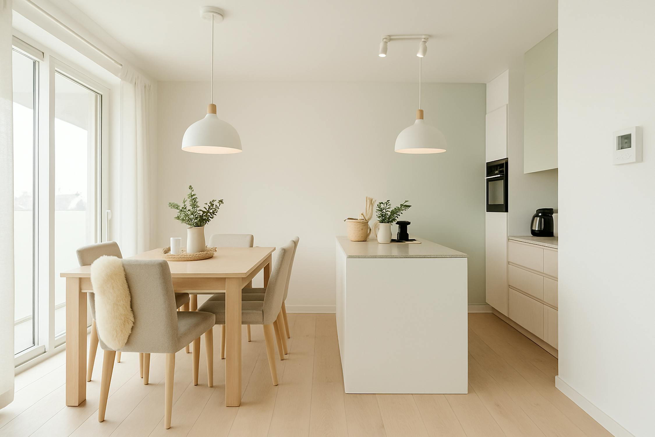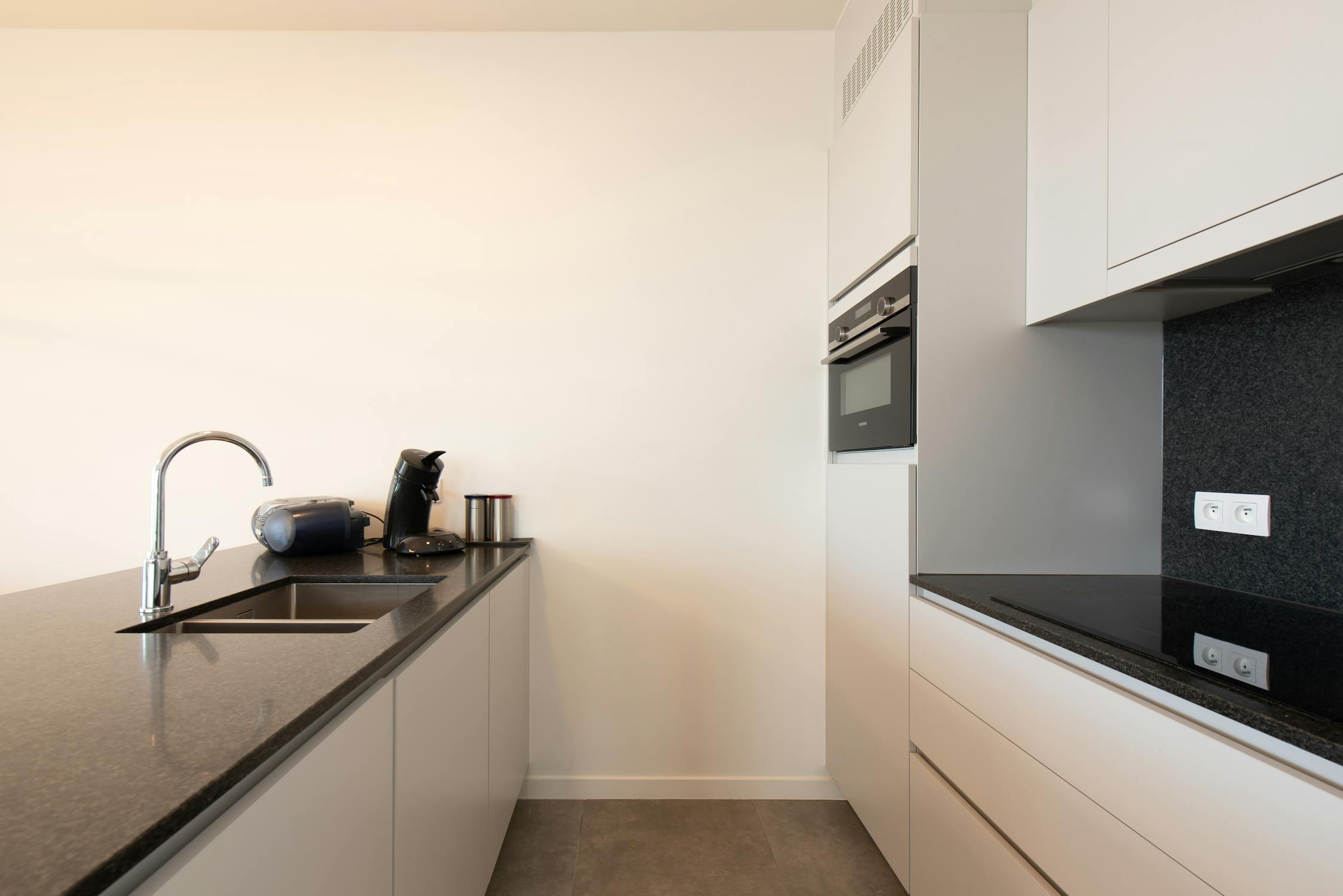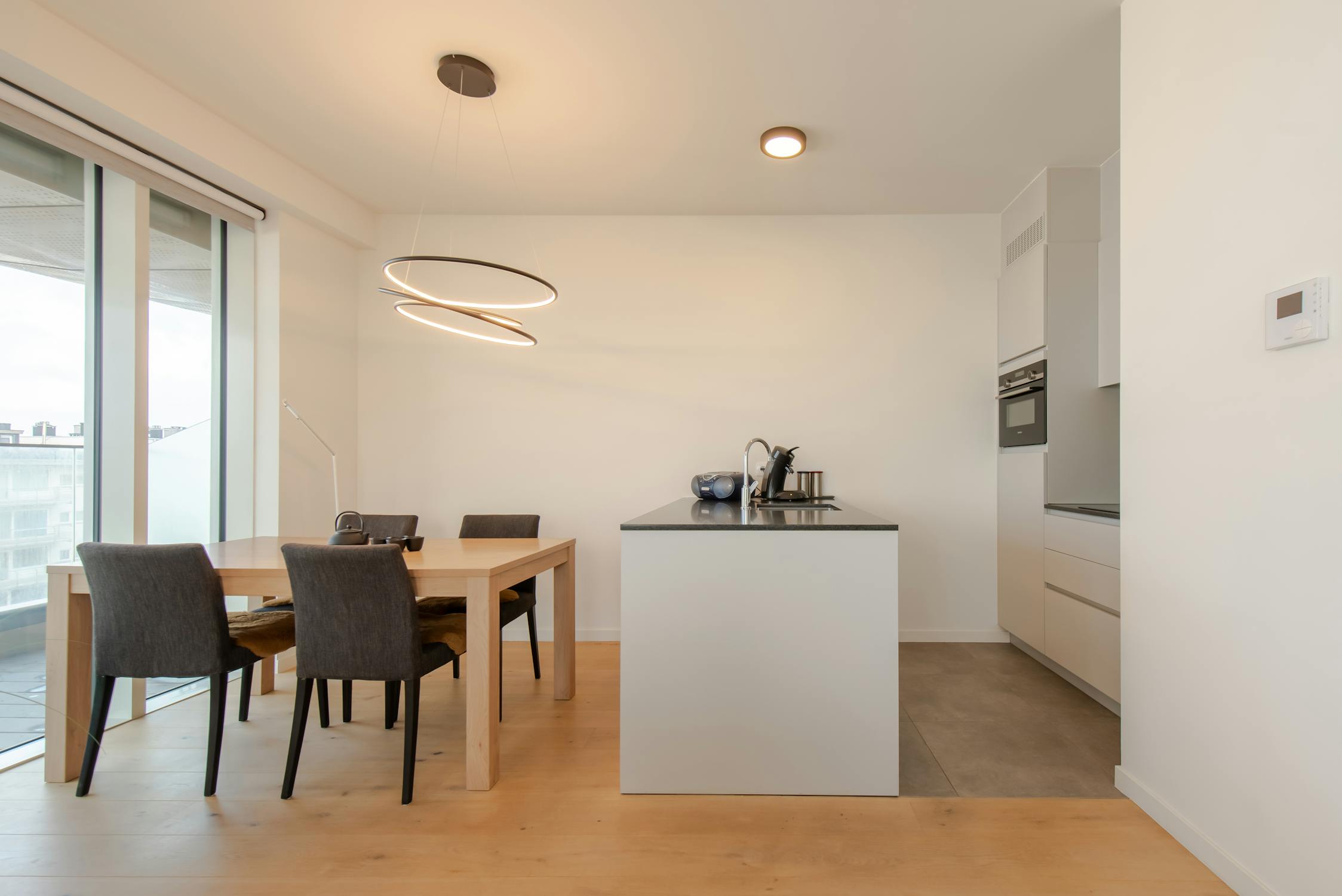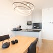 - leefruimte met uitgeruste keuken voorzien van een spoeltafel, keramische kookplaat, frigo en combi-oven