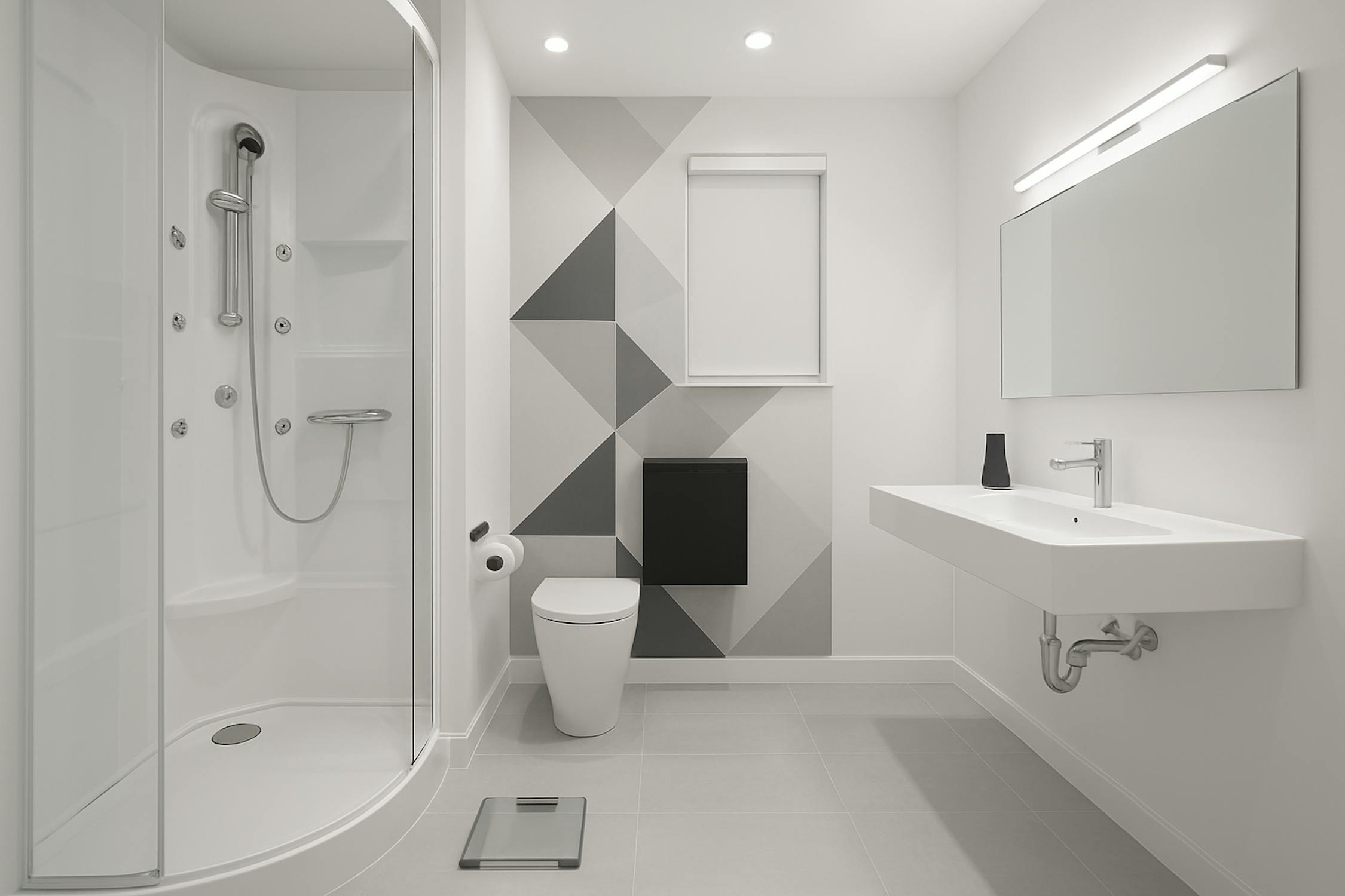 - badkamer voorzien van een douche, dubbele lavabomeubel, toilet en aansluiting voor wasmachine