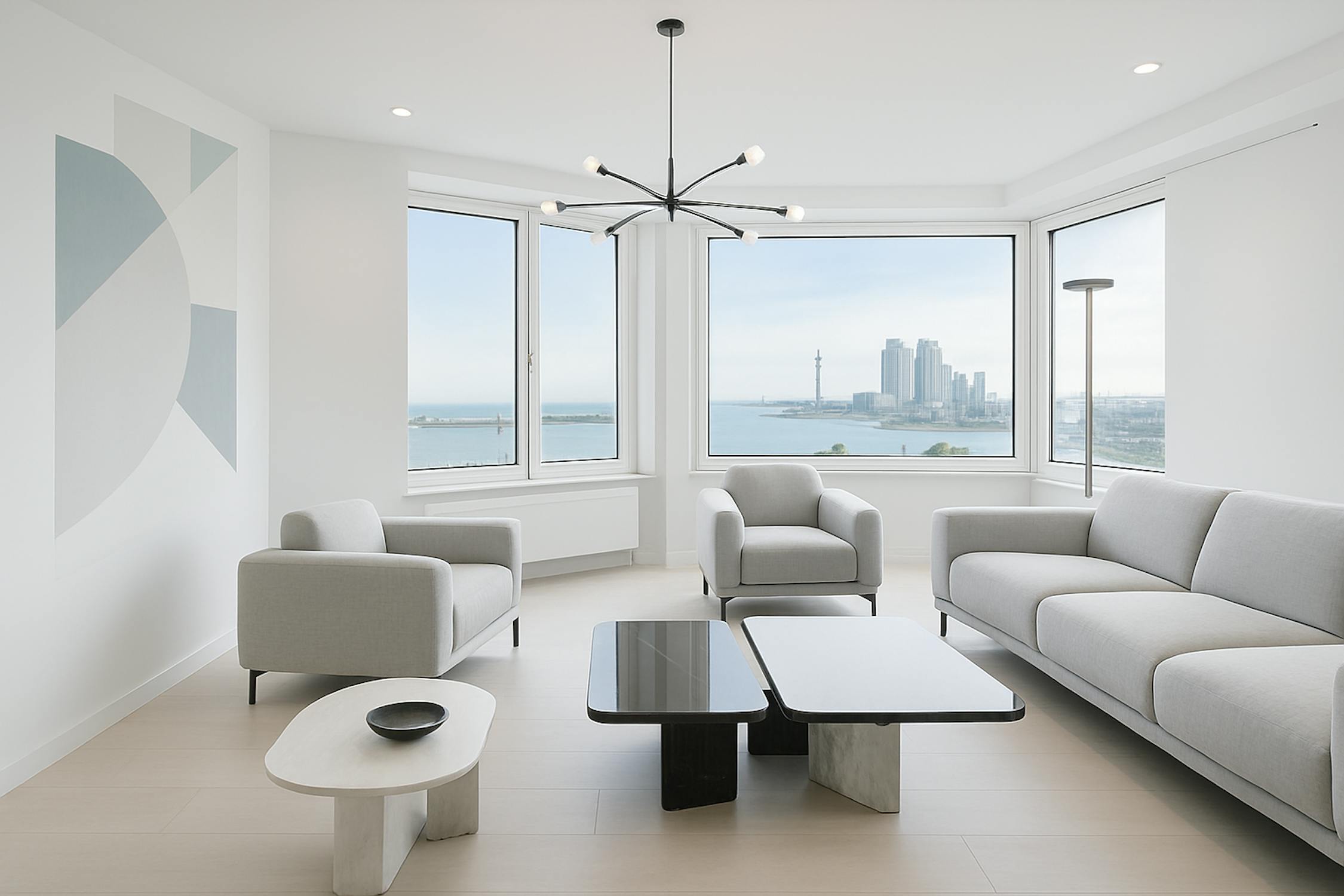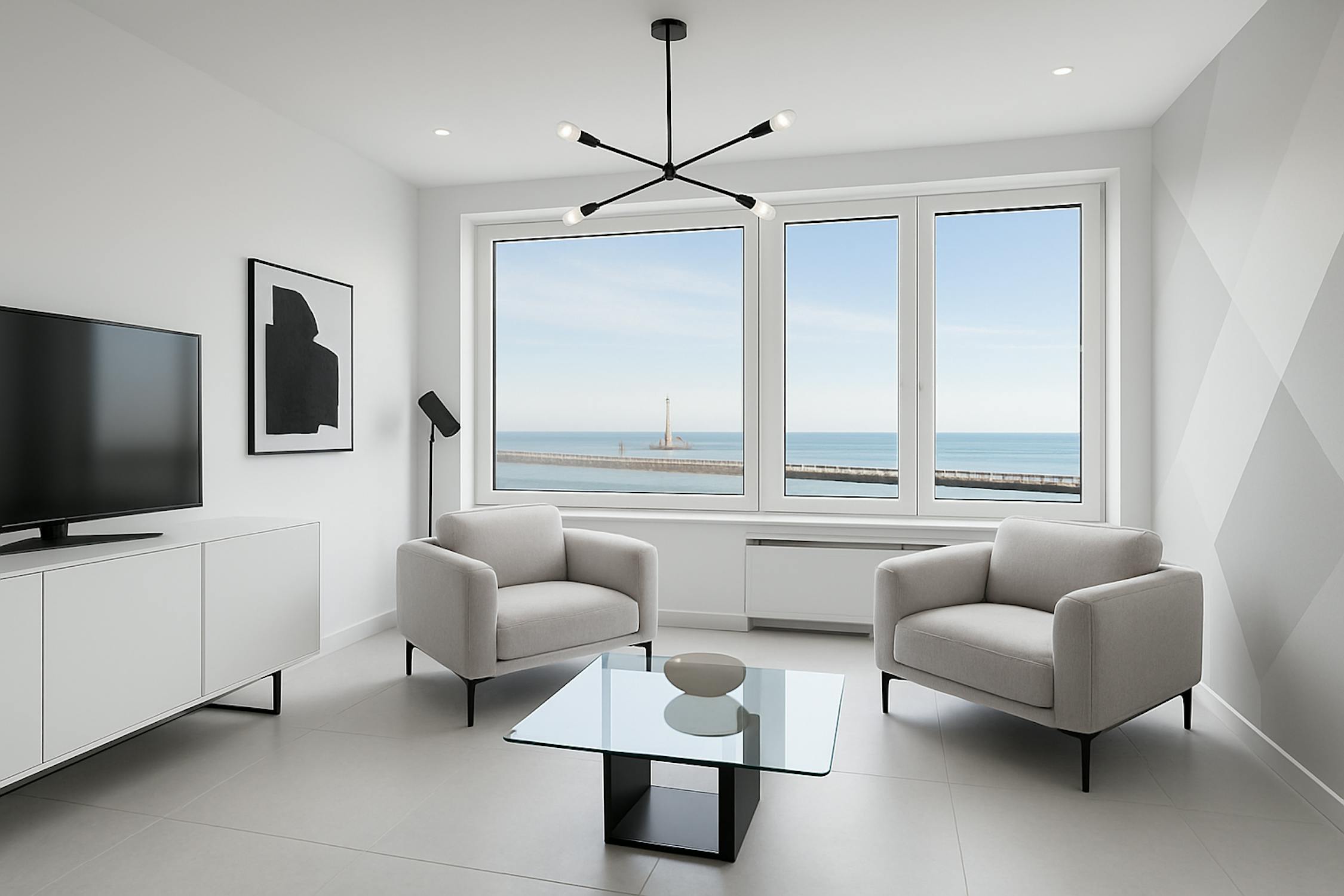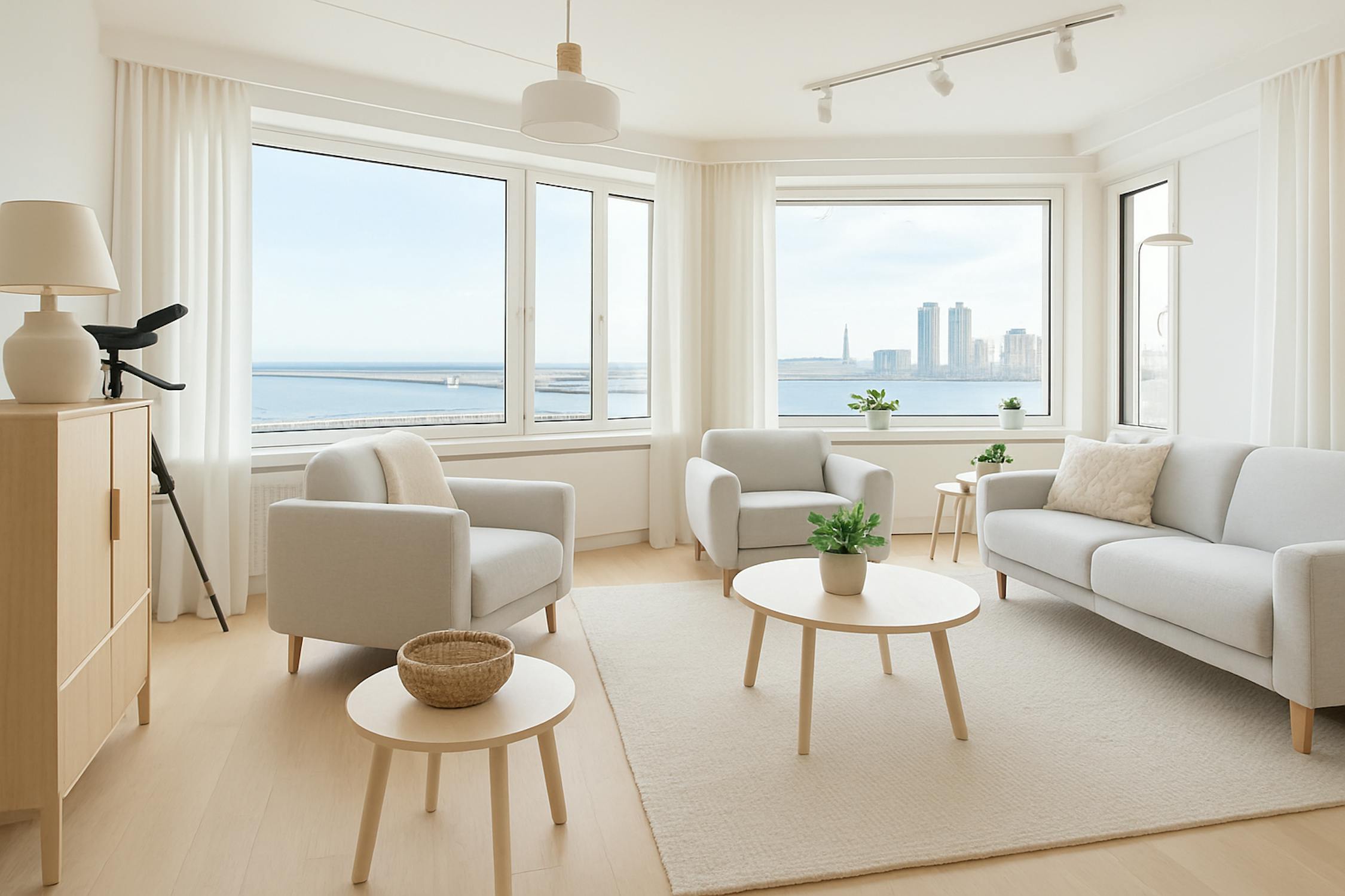 - leefruimte met panoramisch zicht op zee