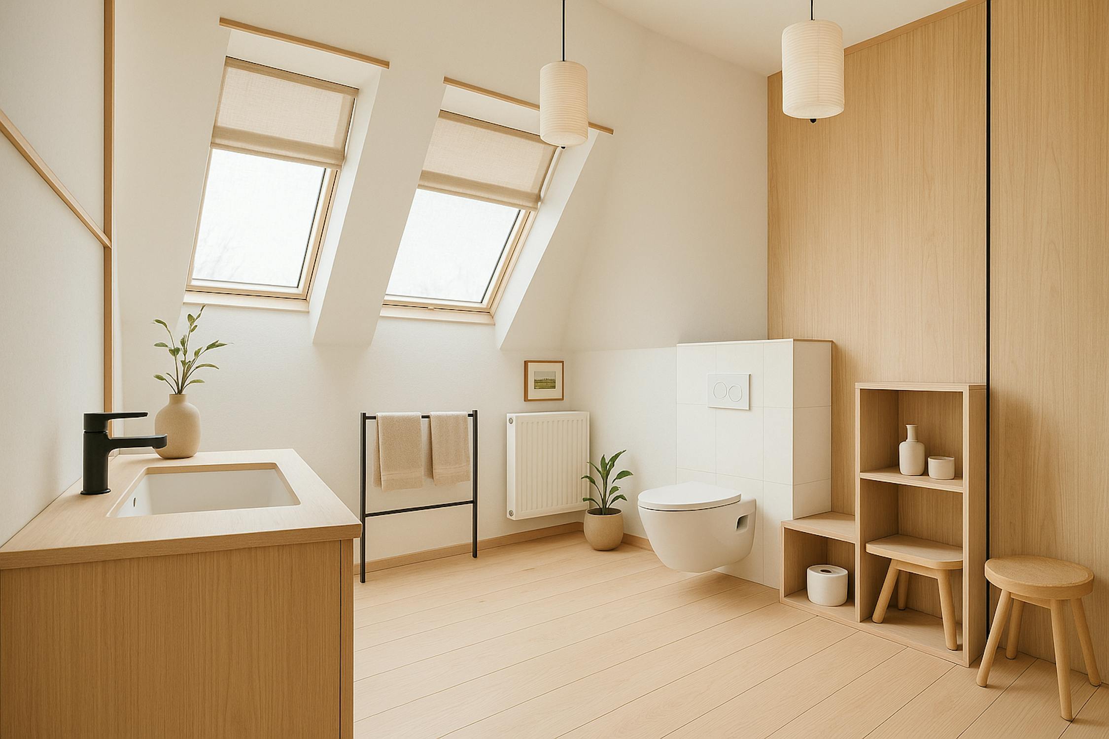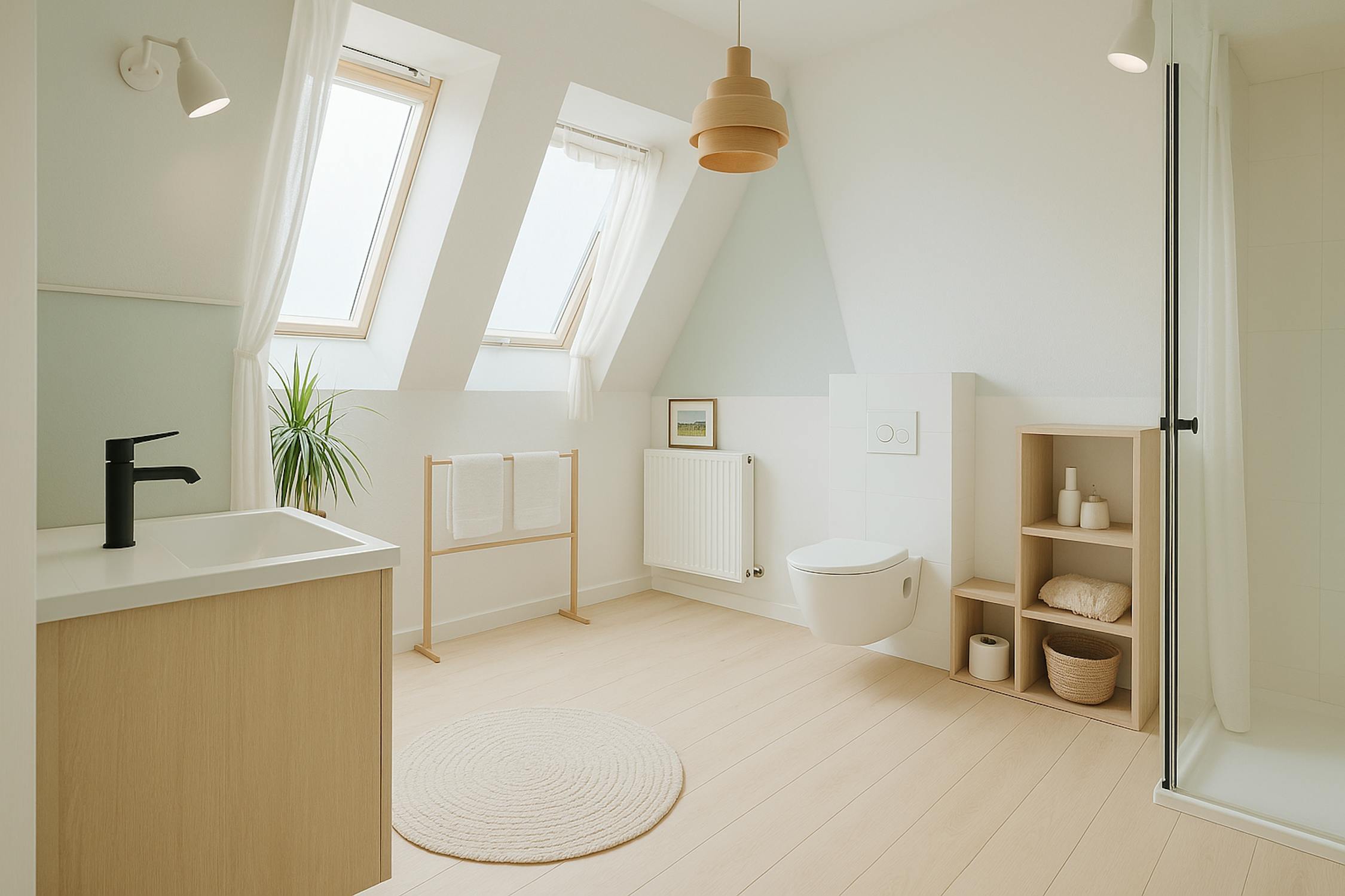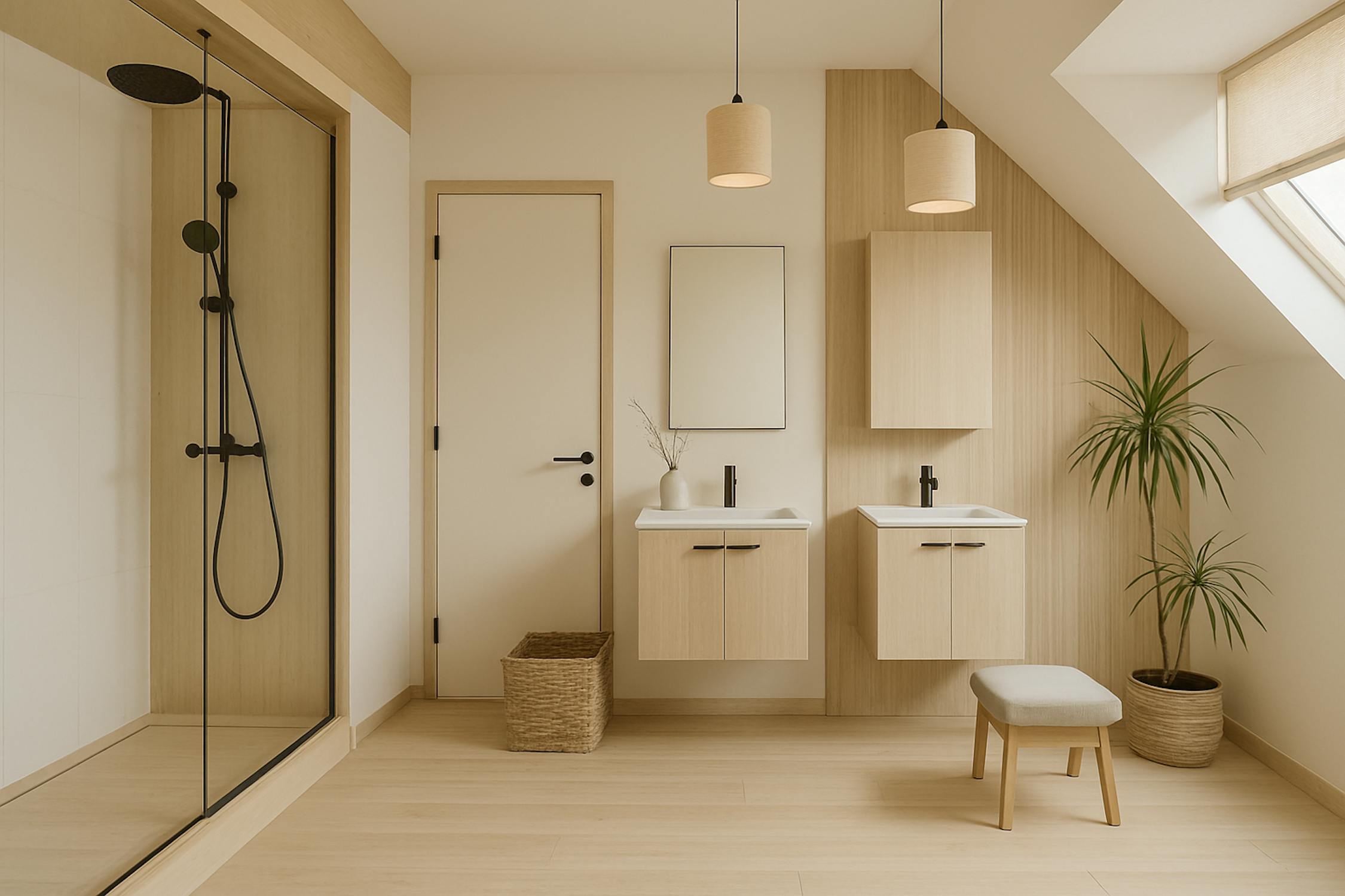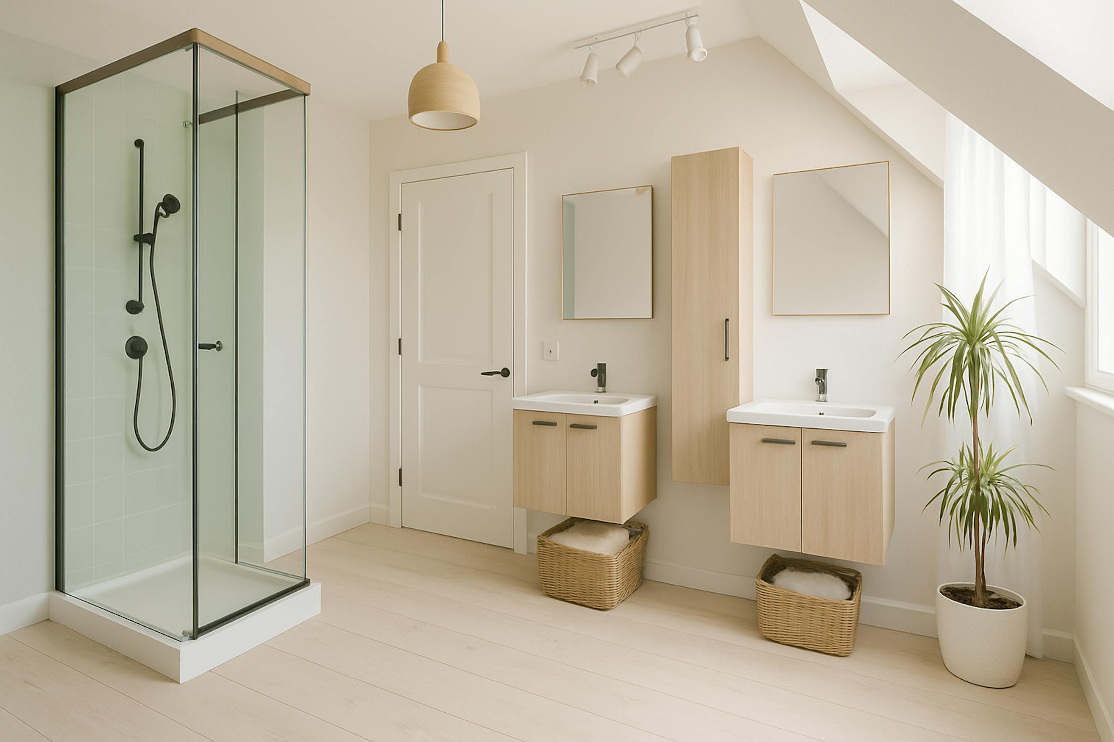 - badkamer 2 (dubbele badkamermeubel, douche en toilet)