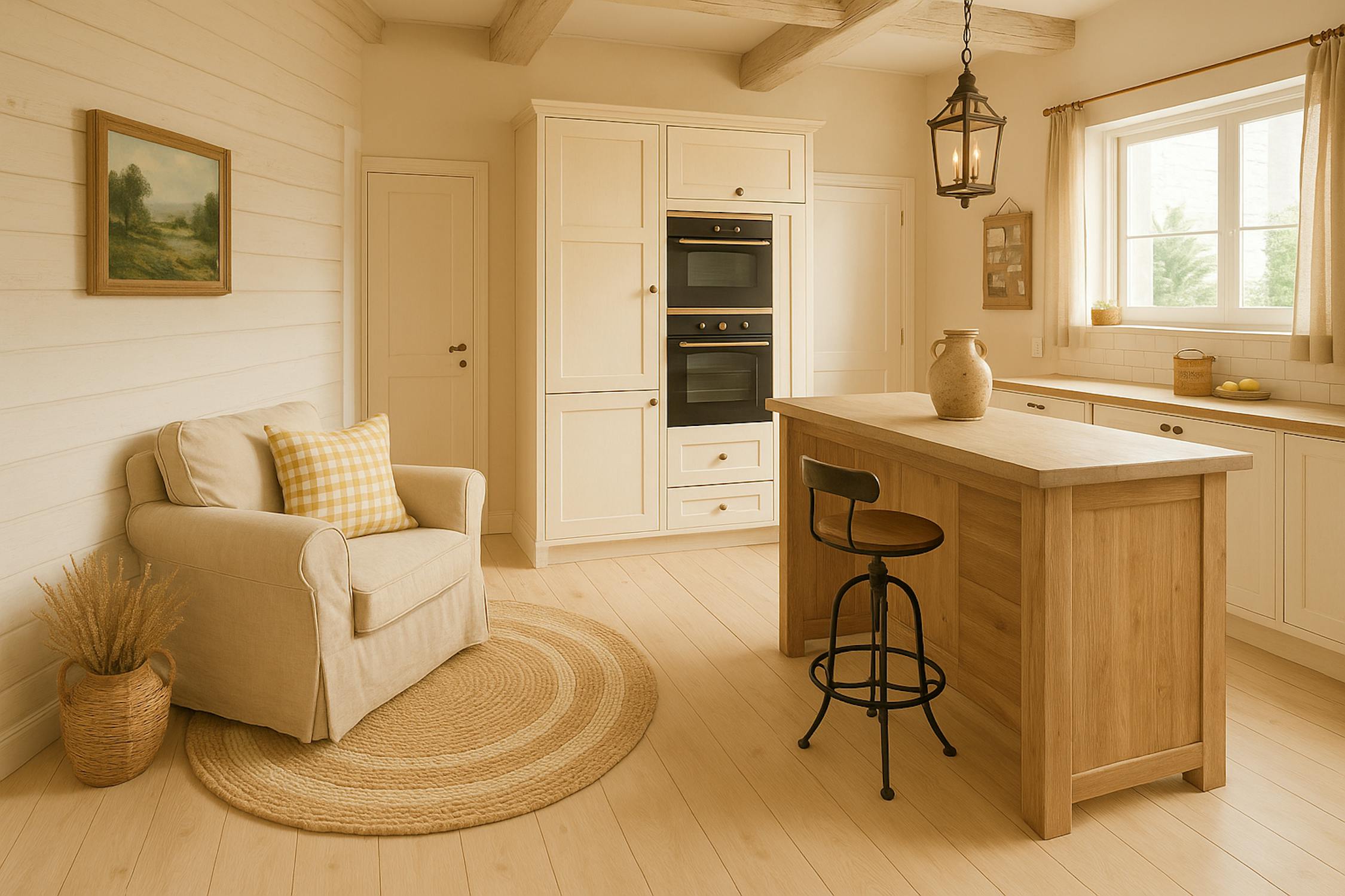 - geïnstalleerde keuken (dubbele spoeltafel, inductie fornuis, frigo, microgolf, oven en vaatwas)