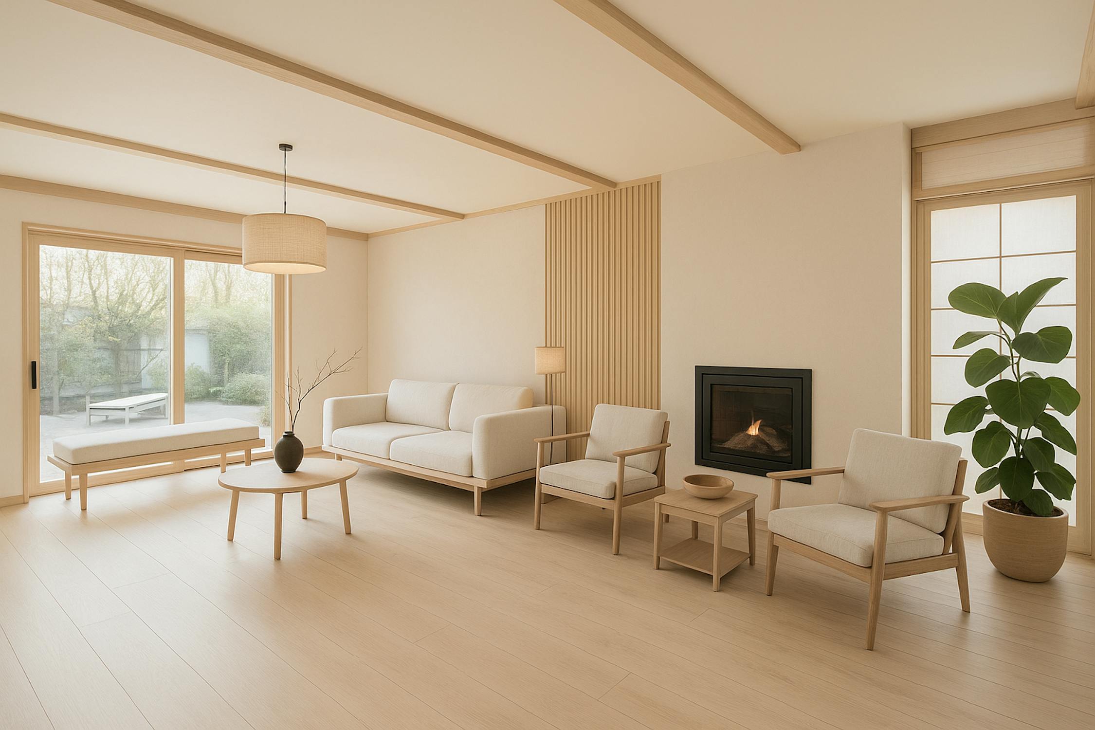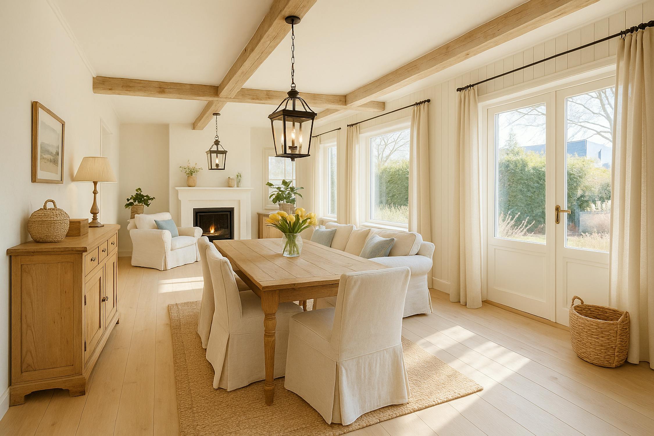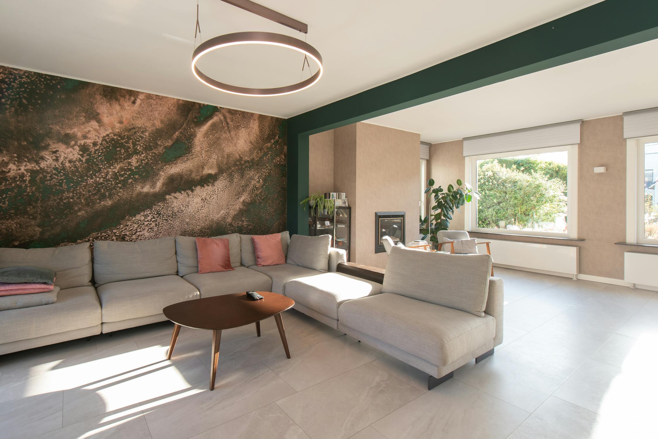 - prachtige leefruimte met zicht op de tuin en sfeervolle gaskachel