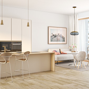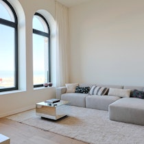 De architectuur van Troon 17 Oostende is een knipoog naar het rijke verleden van de stad. Architect Berkein is erin geslaagd om zijn typische moderne stijl met grote glaspartijen te combineren met grandeur van het voormalige schoolgebouw.