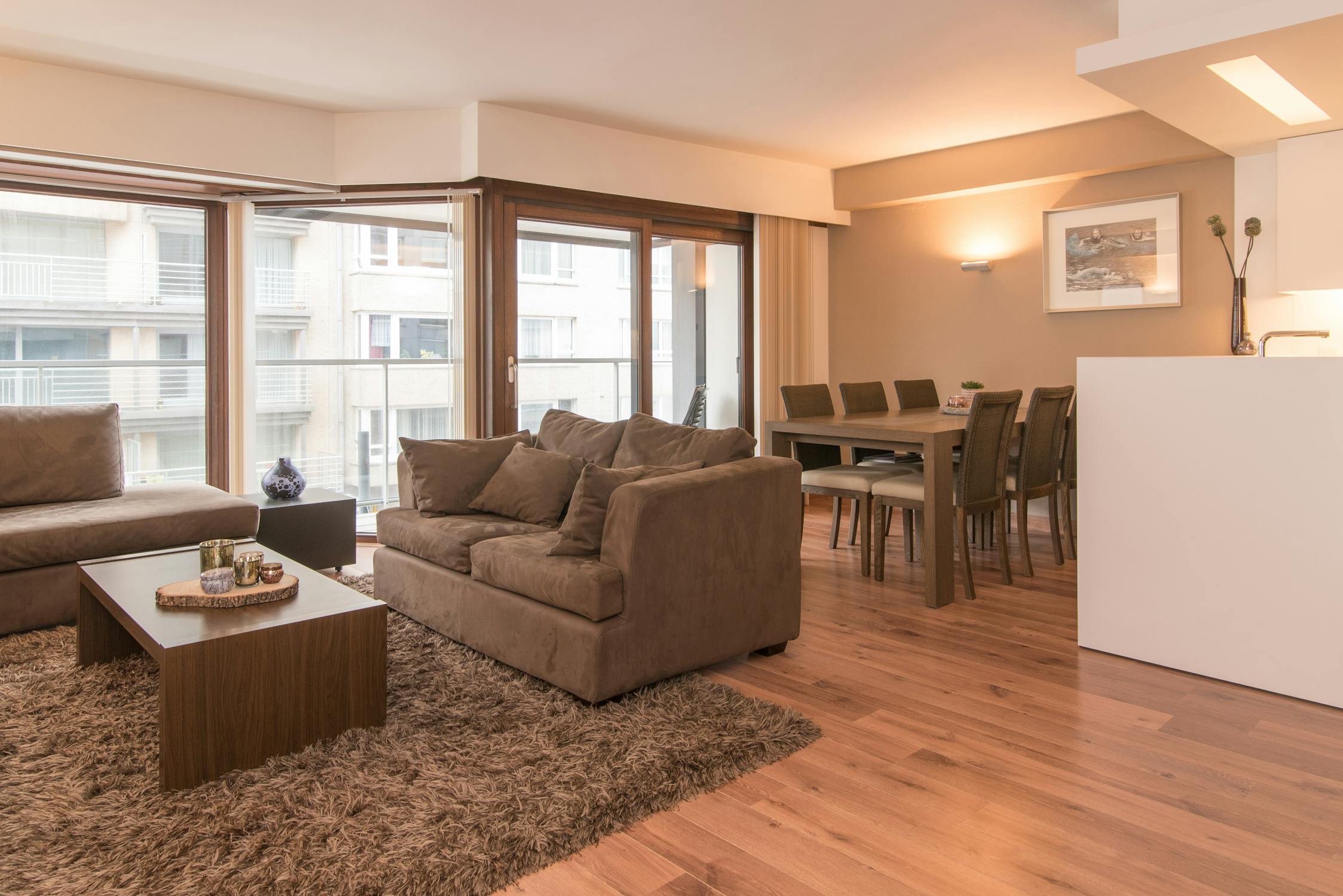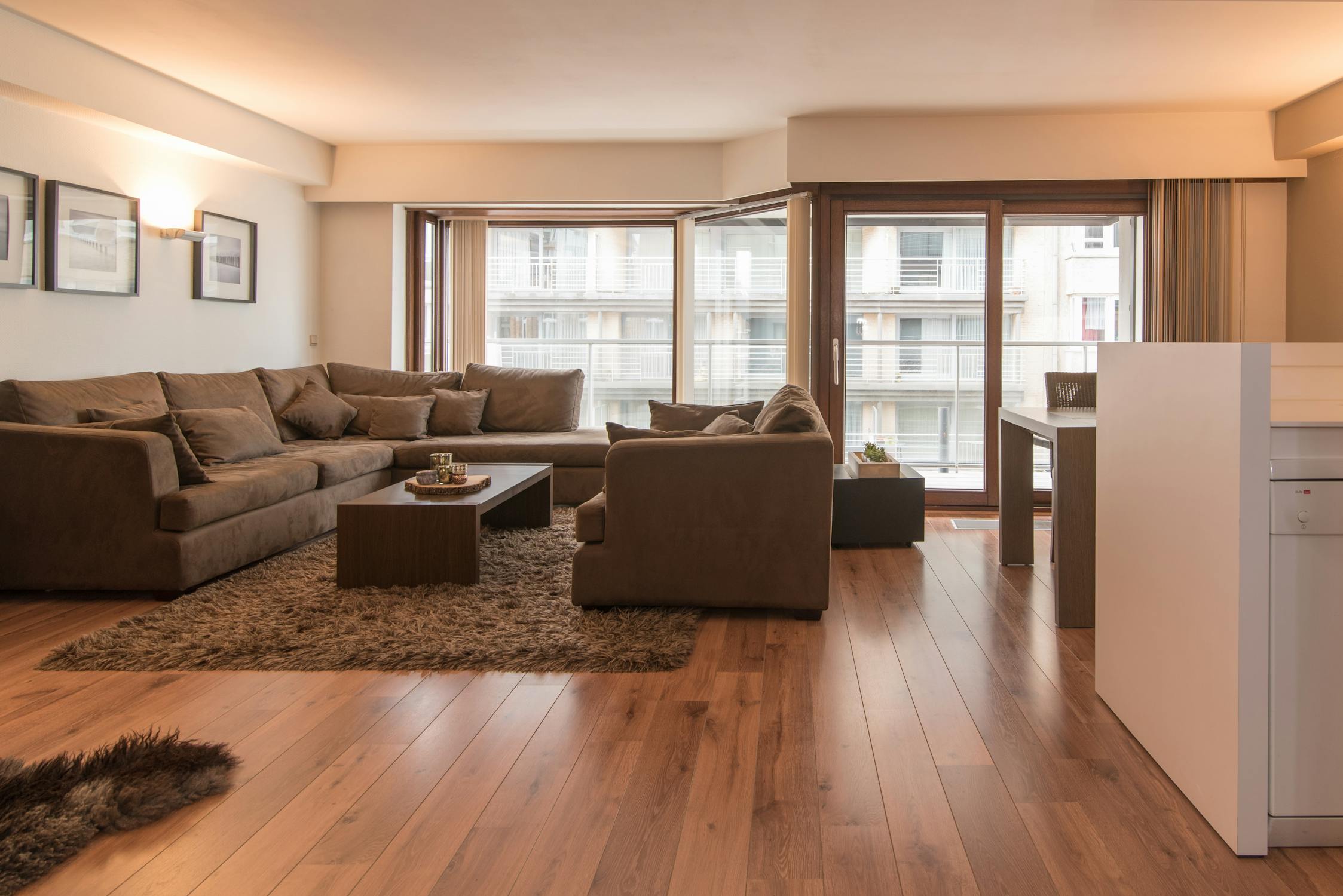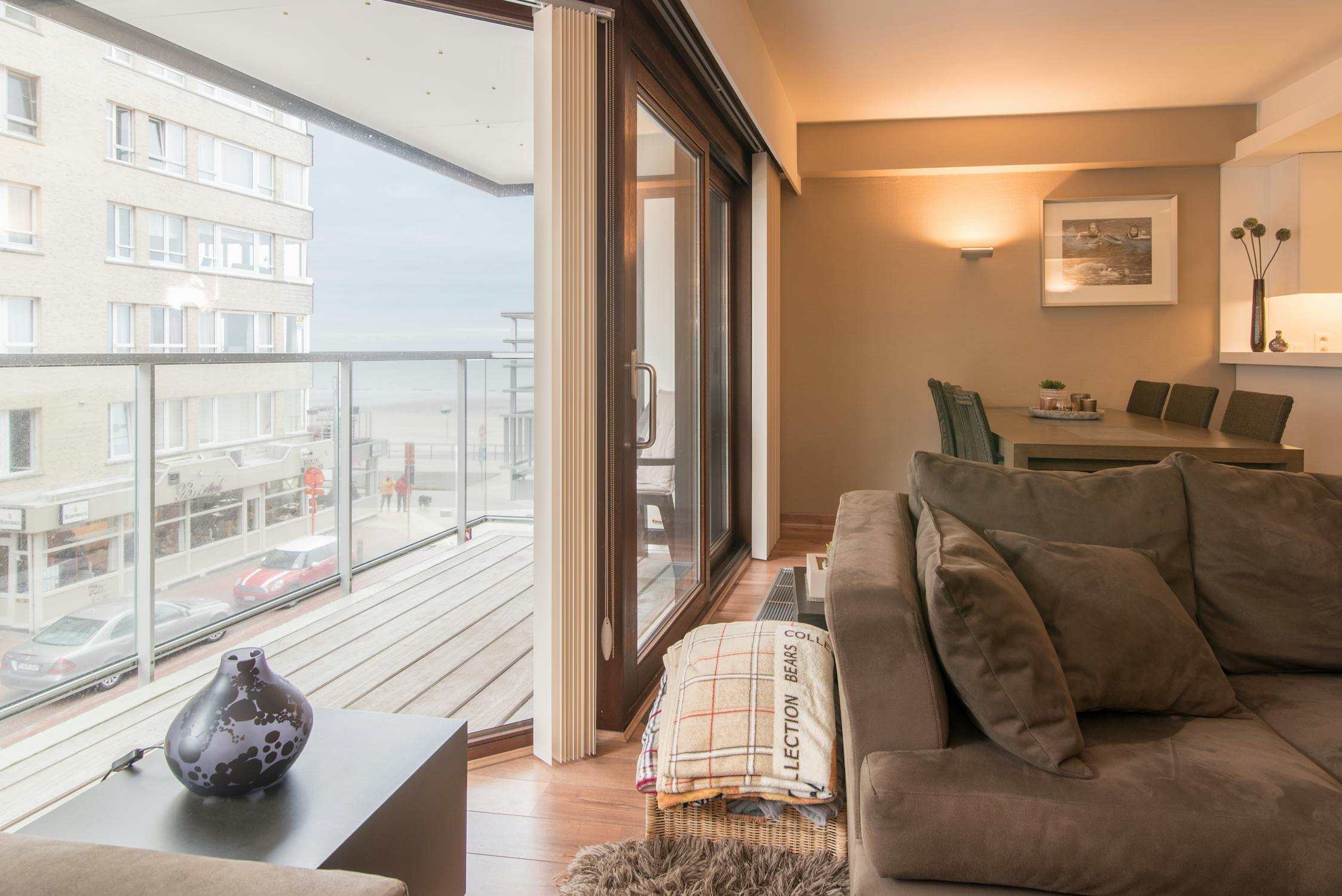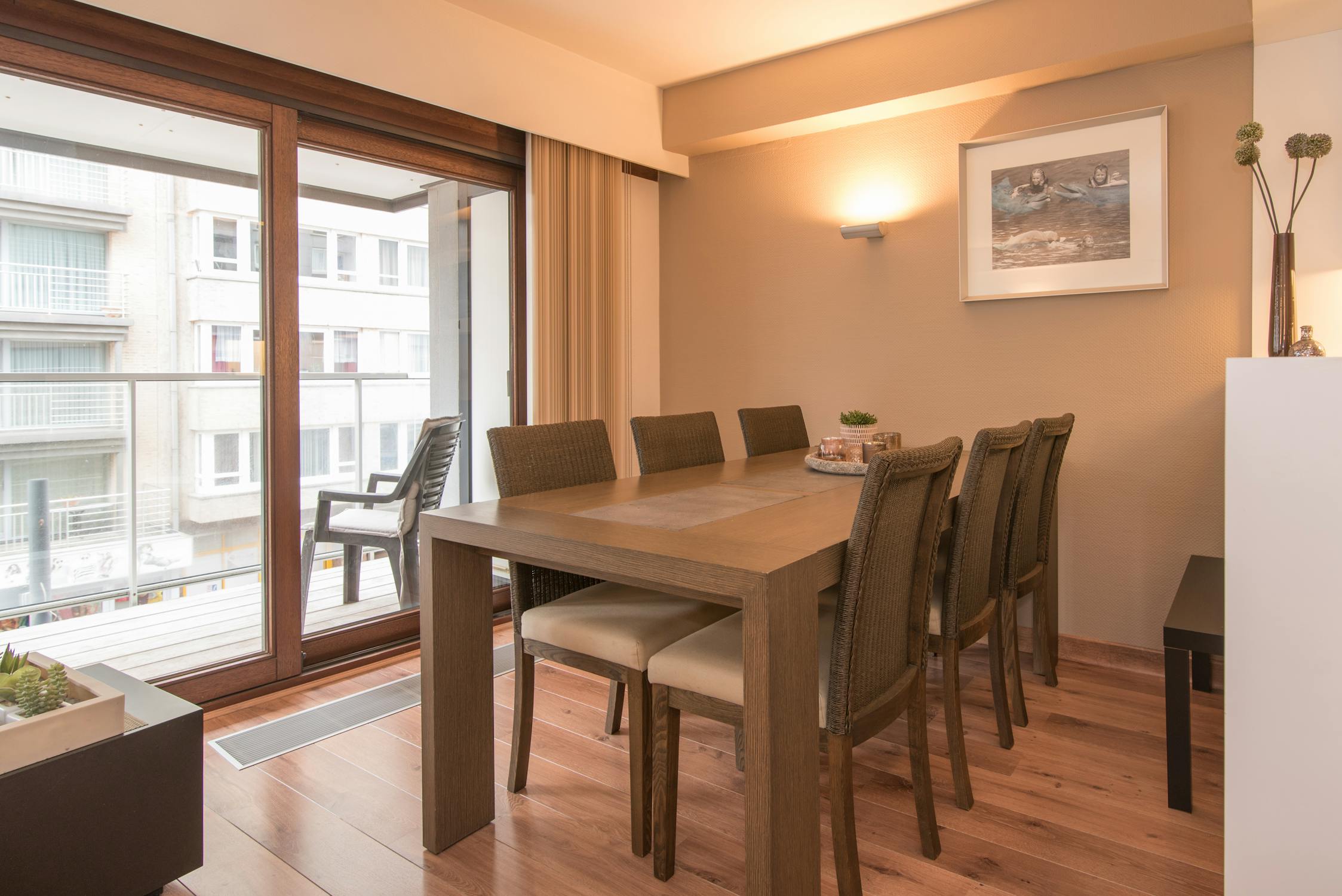 Woonappartement met zonnig terras en zijdelings zeezicht.