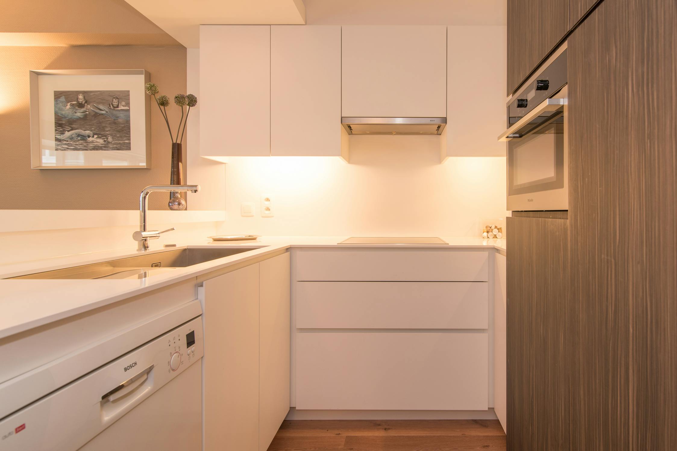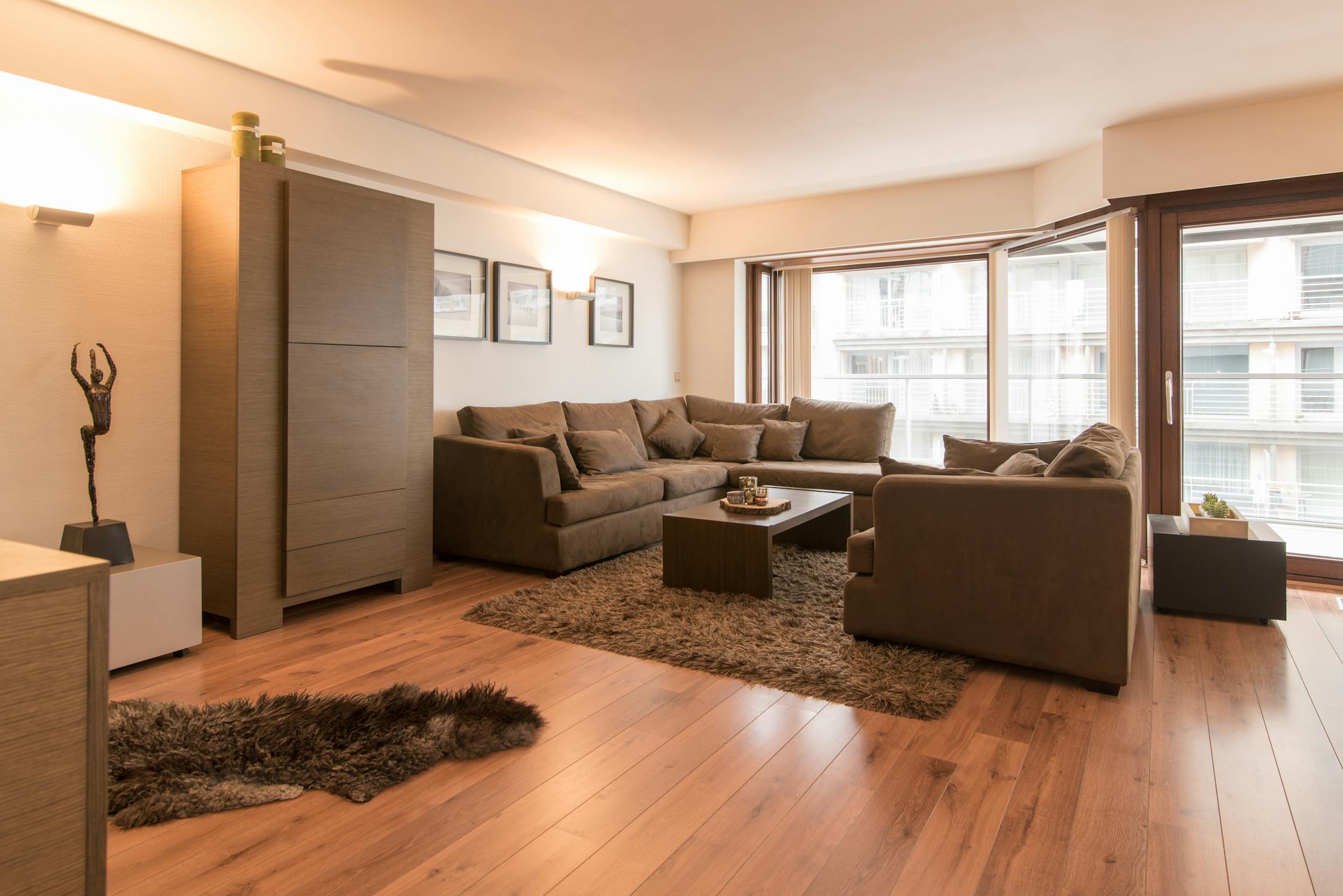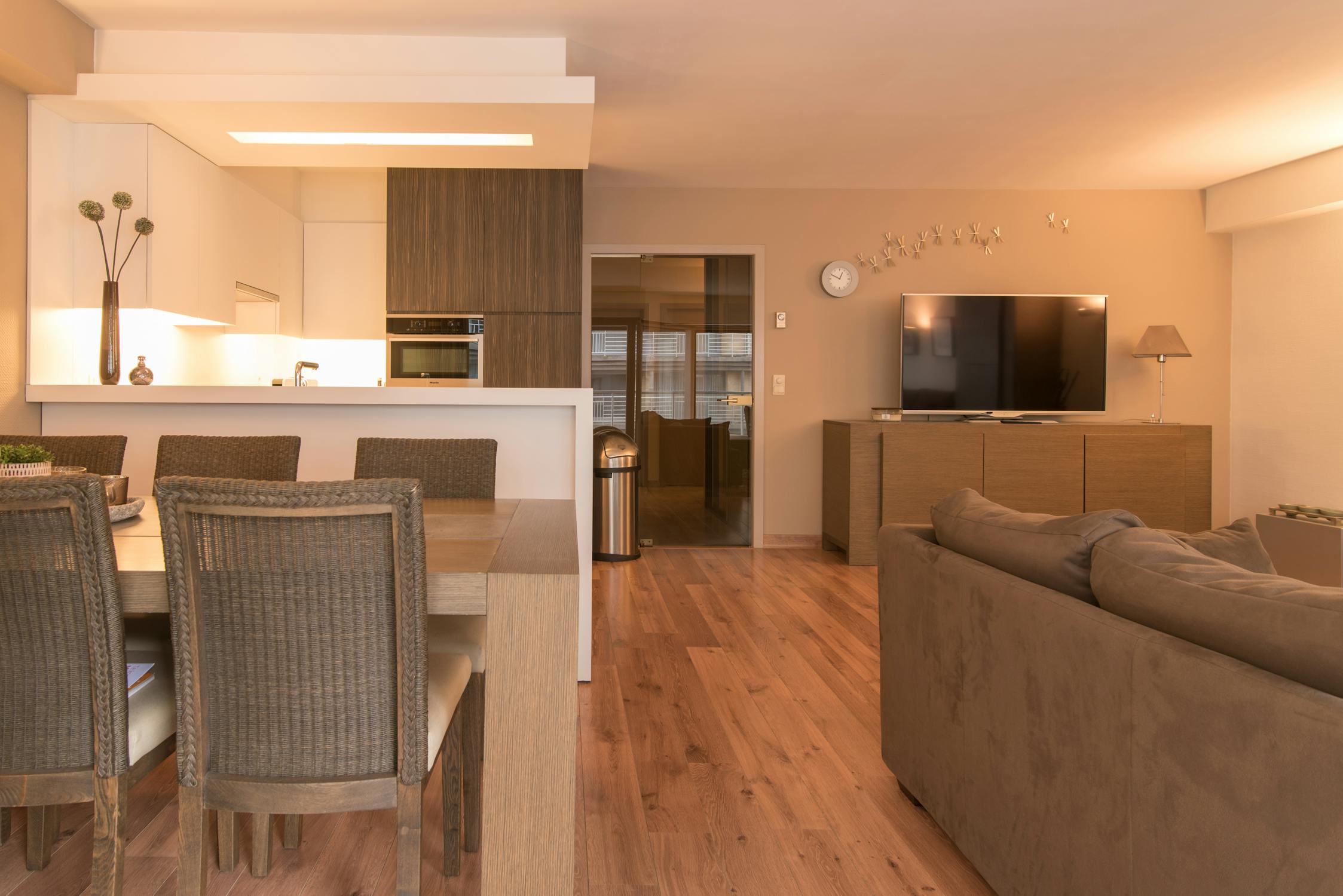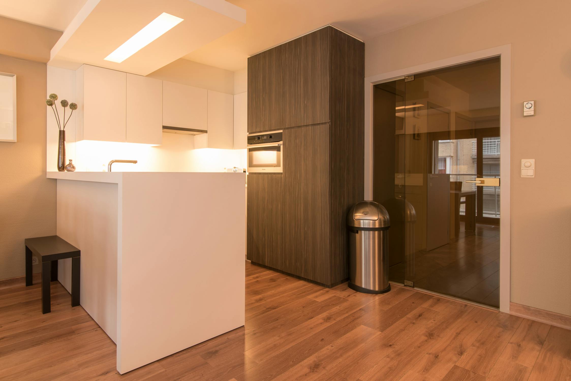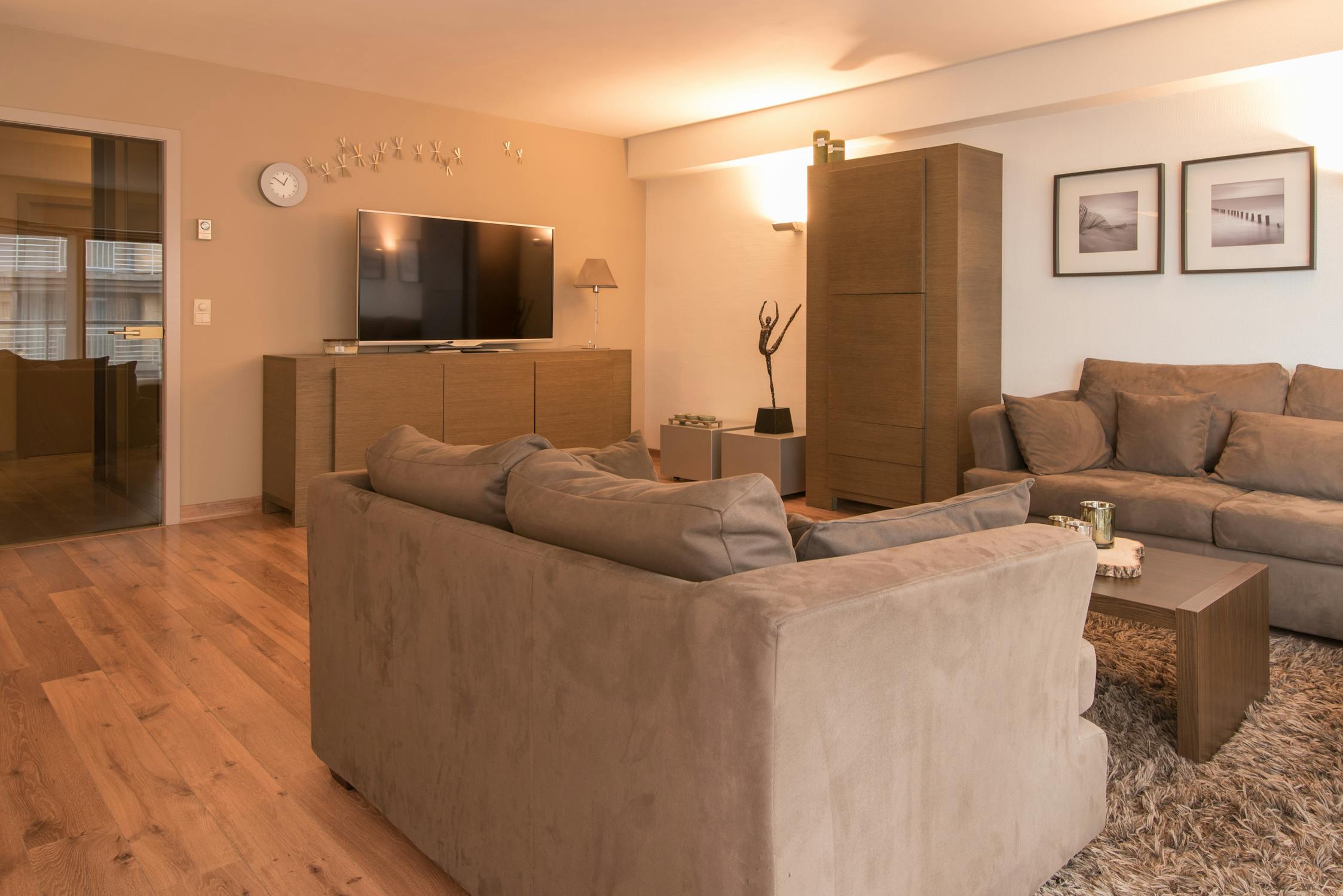 Woonappartement met zonnig terras en zijdelings zeezicht.