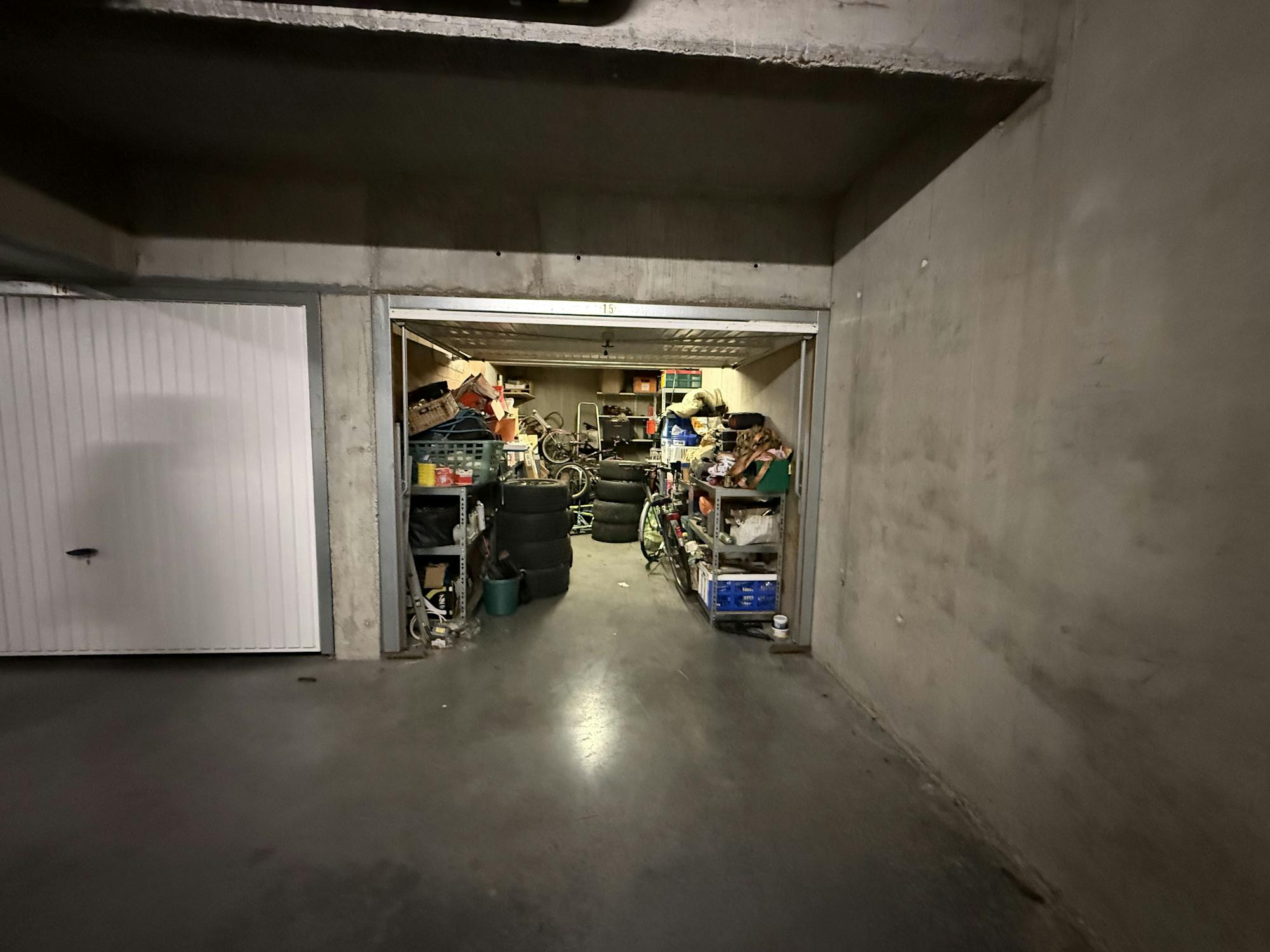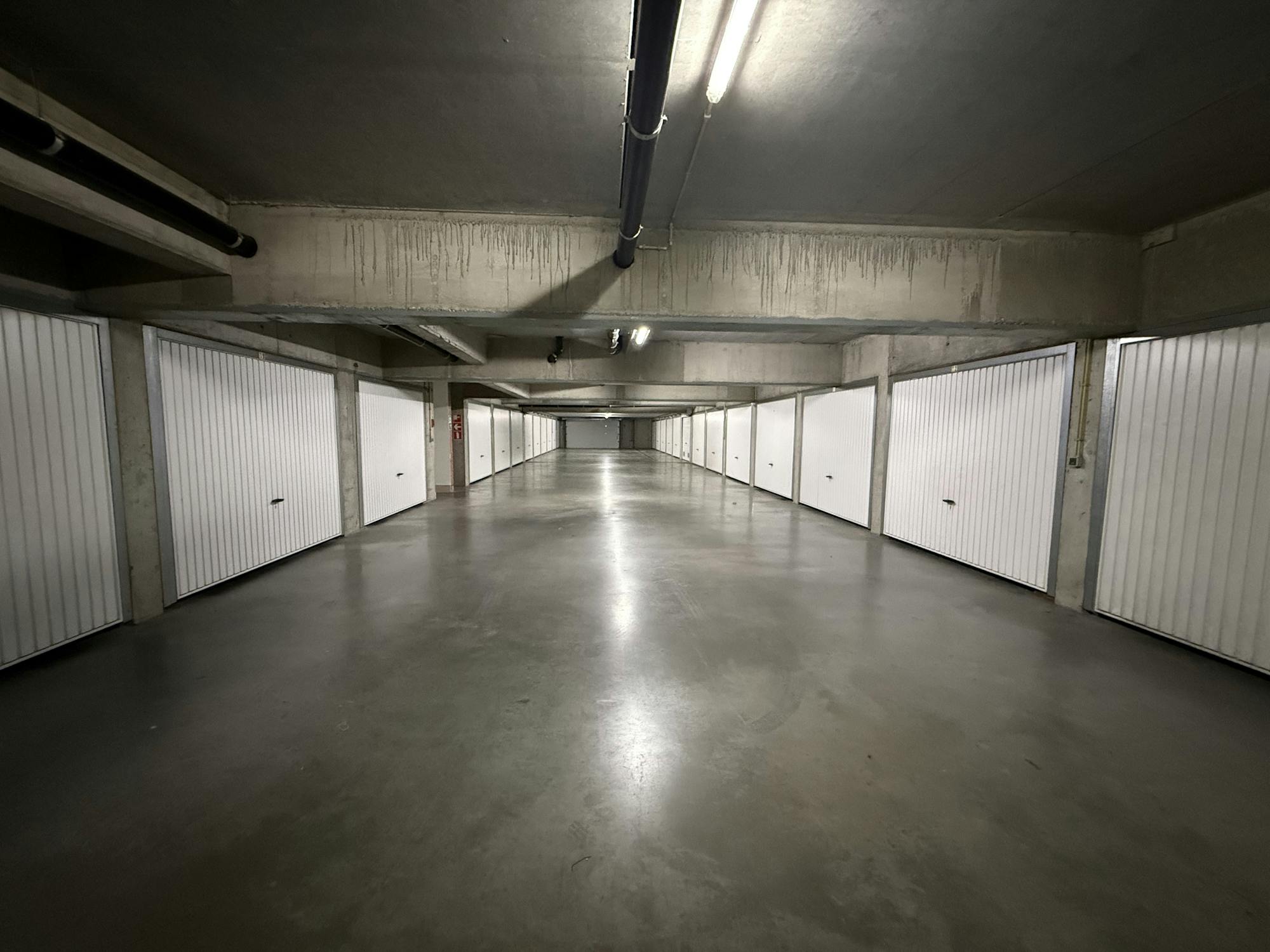Garagebox te koop langs de Kapelstraat te Bredene, gelegen op de -1 verdieping. Momenteel verhuurd.