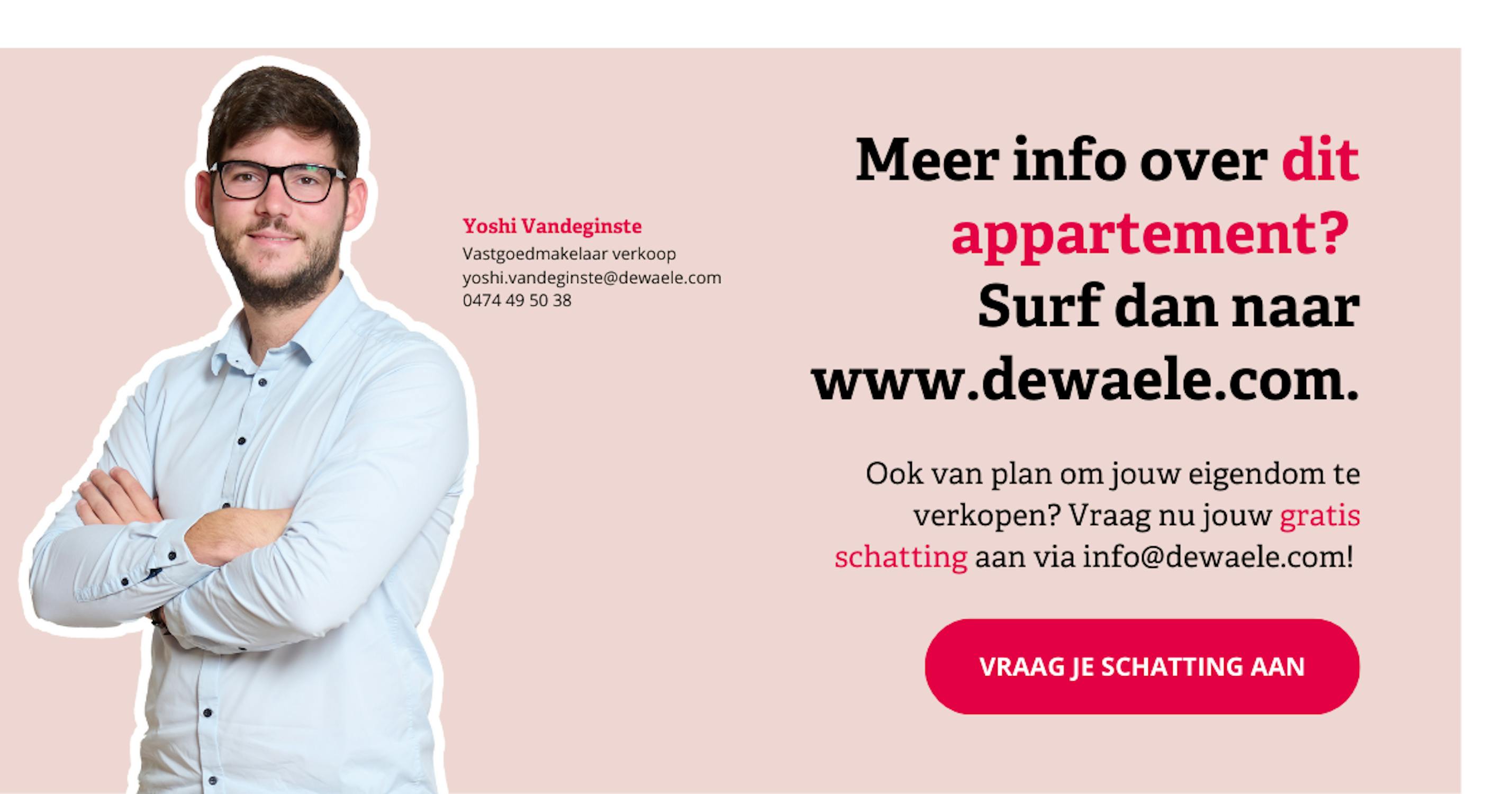 Een ruim bedrijfspand, een villa in 't groen of een appartement aan zee. Laat ons weten wat je precies zoekt en ontvang als eerste het meest recente (en discrete) aanbod in je mailbox. En dit nog voor het op de vastgoedwebsites wordt gepubliceerd!
