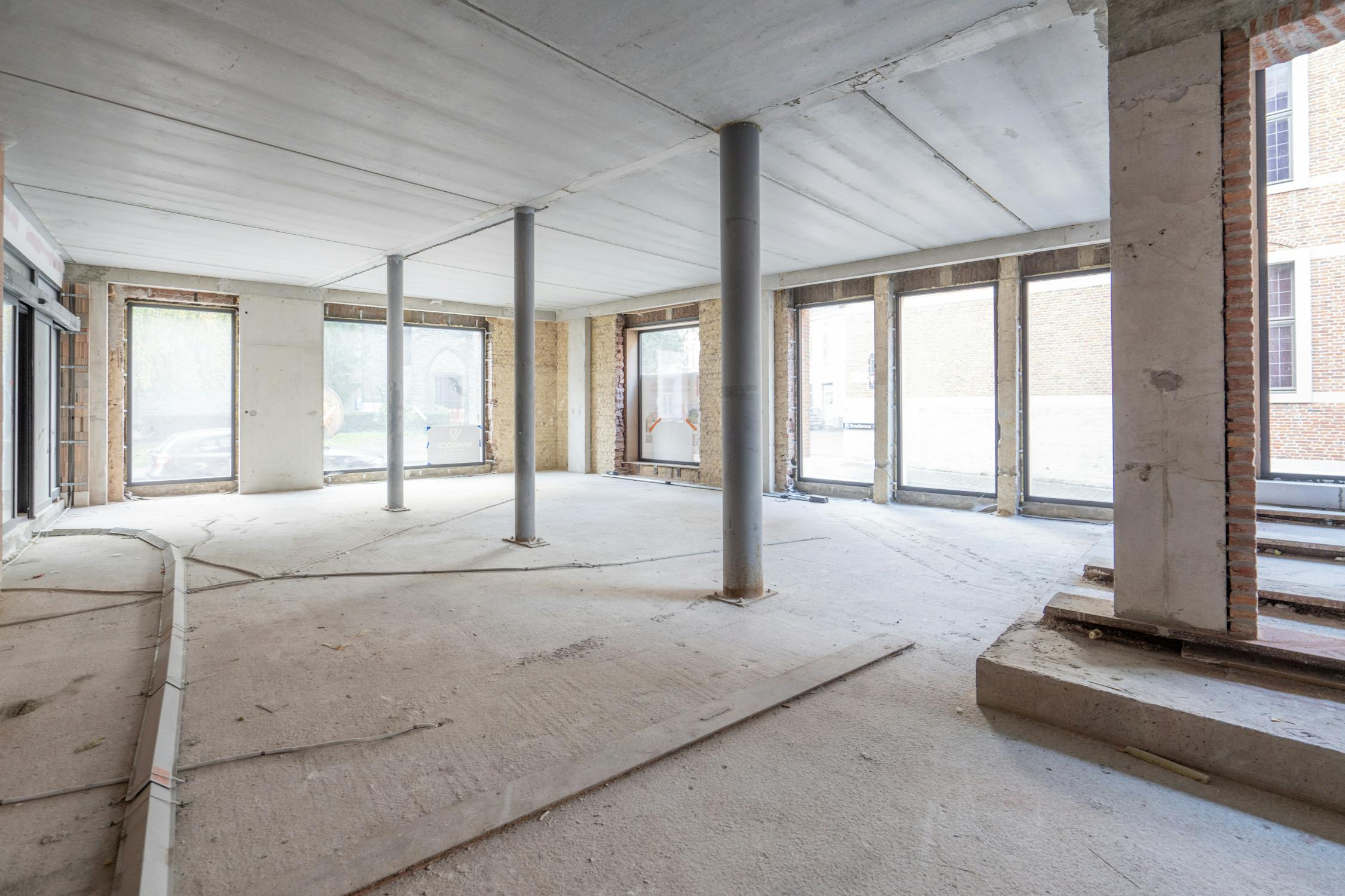 Ca. 267 m² vrij in te vullen commerciële handels/kantoorruimte te koop op het gelijkvloers. Royale raampartijen met grote zichtbaarheid en veel lichtinval.