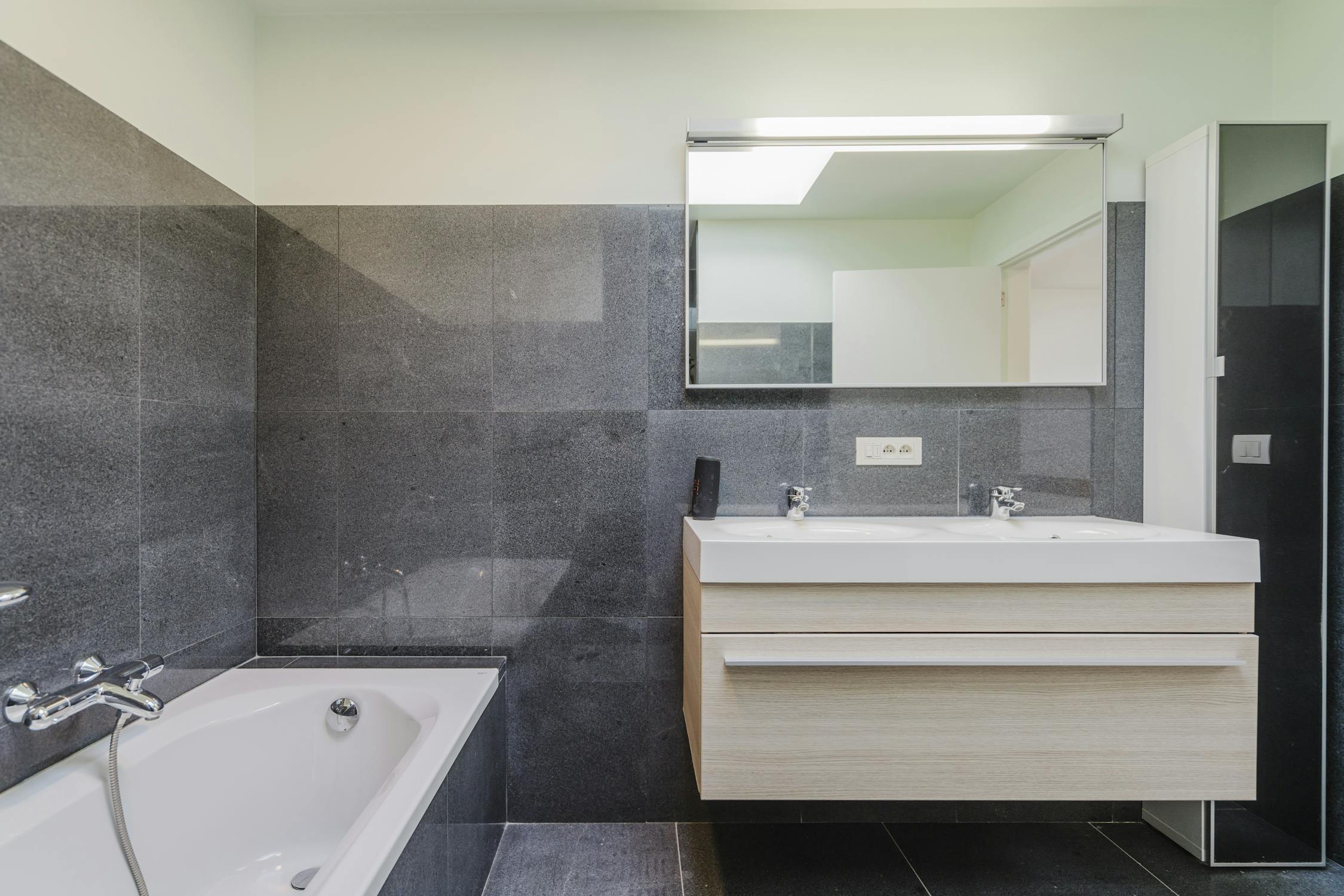 - badkamer met bad, douche en lavabo