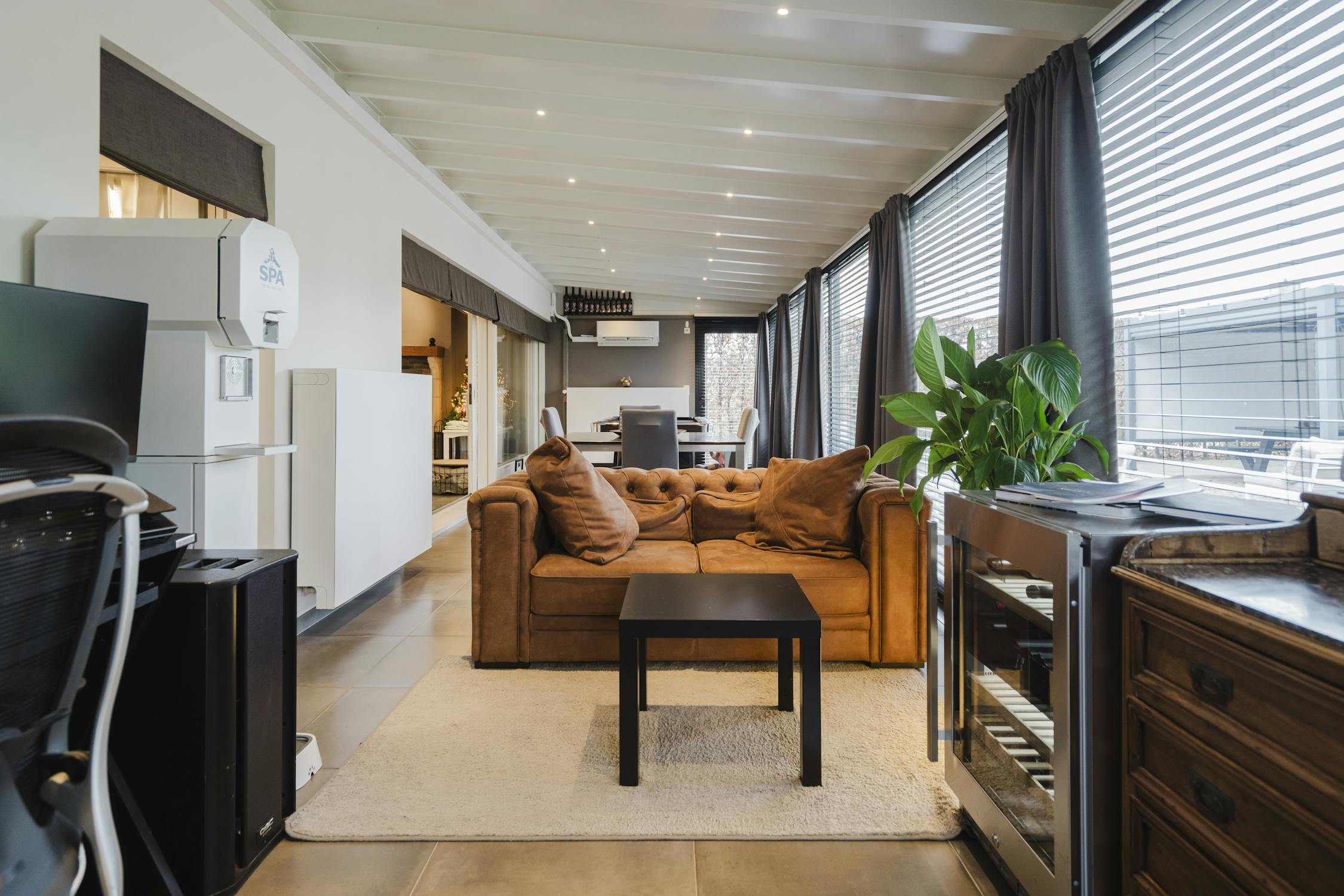 - Lichtrijke leefruimte met toegang tot de aangename veranda en zicht op de tuin (ZW-gericht met leuk terras en recente pergola)