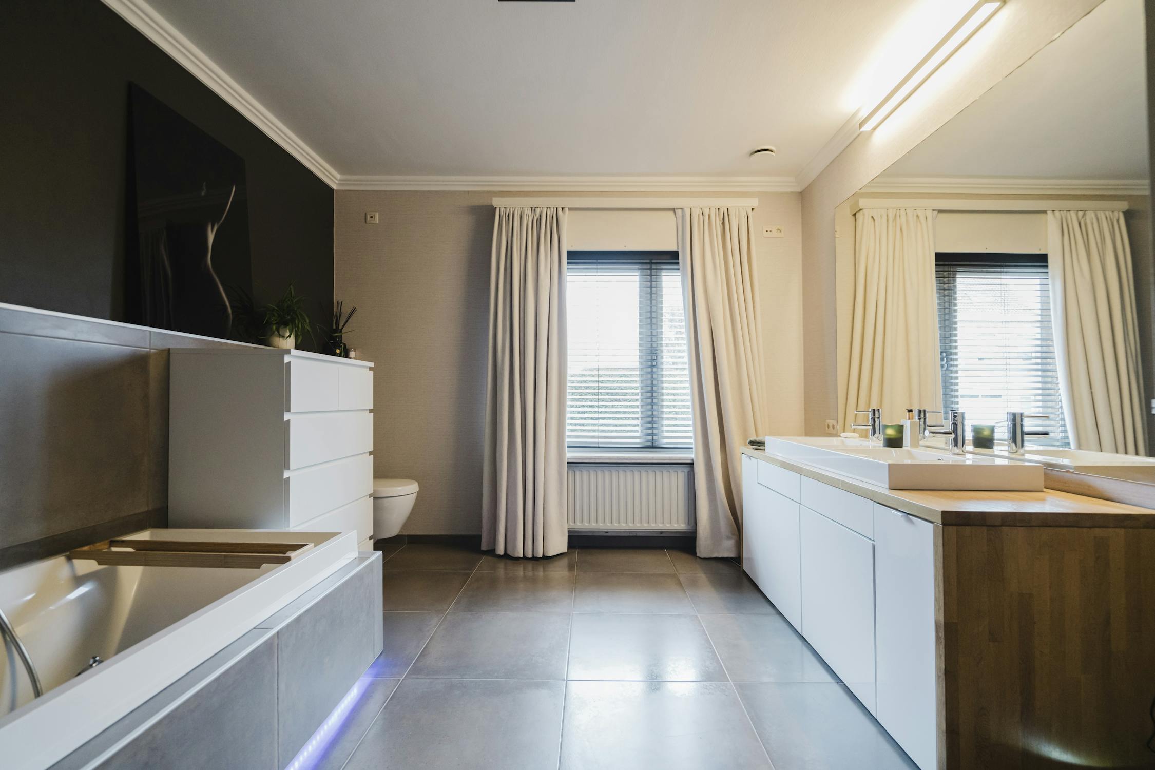 - Luxueuze badkamer met ligbad, inloopdouche, toilet en dubbele lavabo