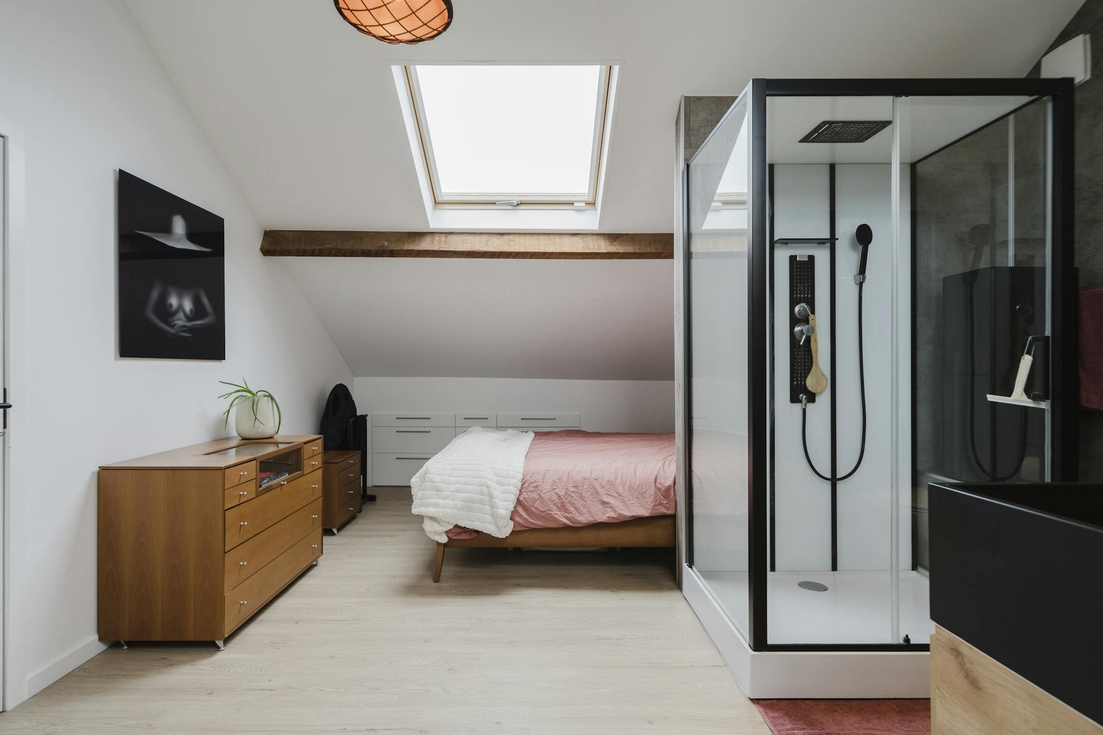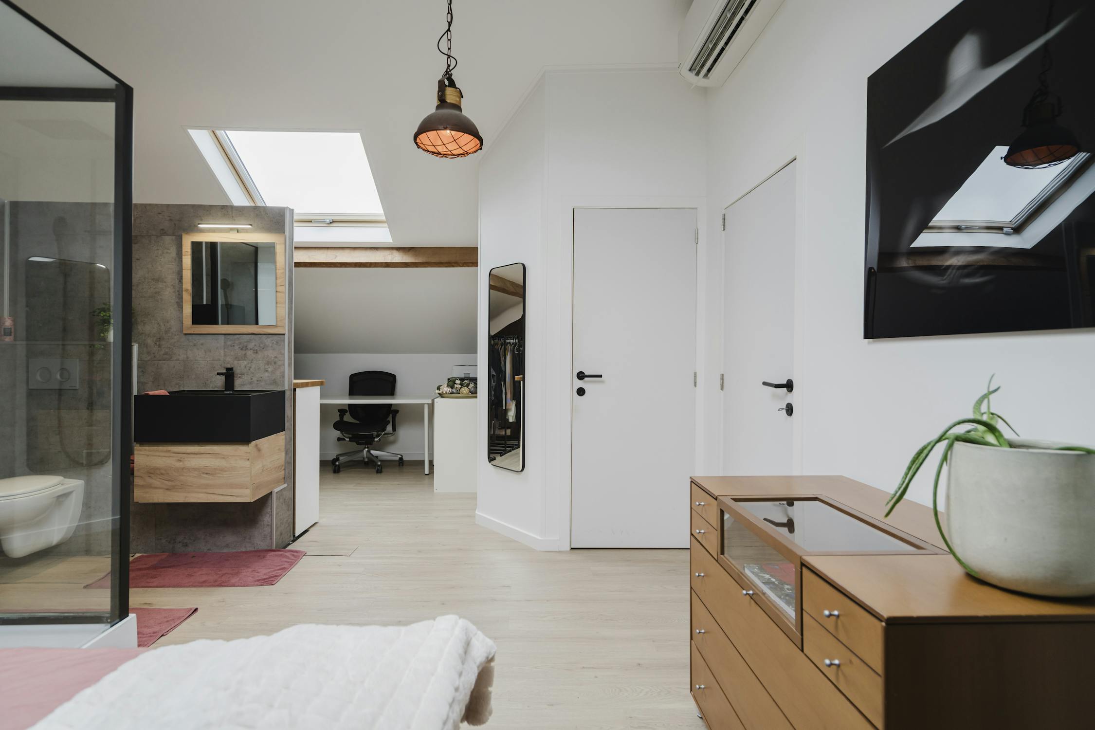 - Ingerichte loft: op vandaag gebruikt als masterbedroom met badkamer en een polyvalente ruimte
