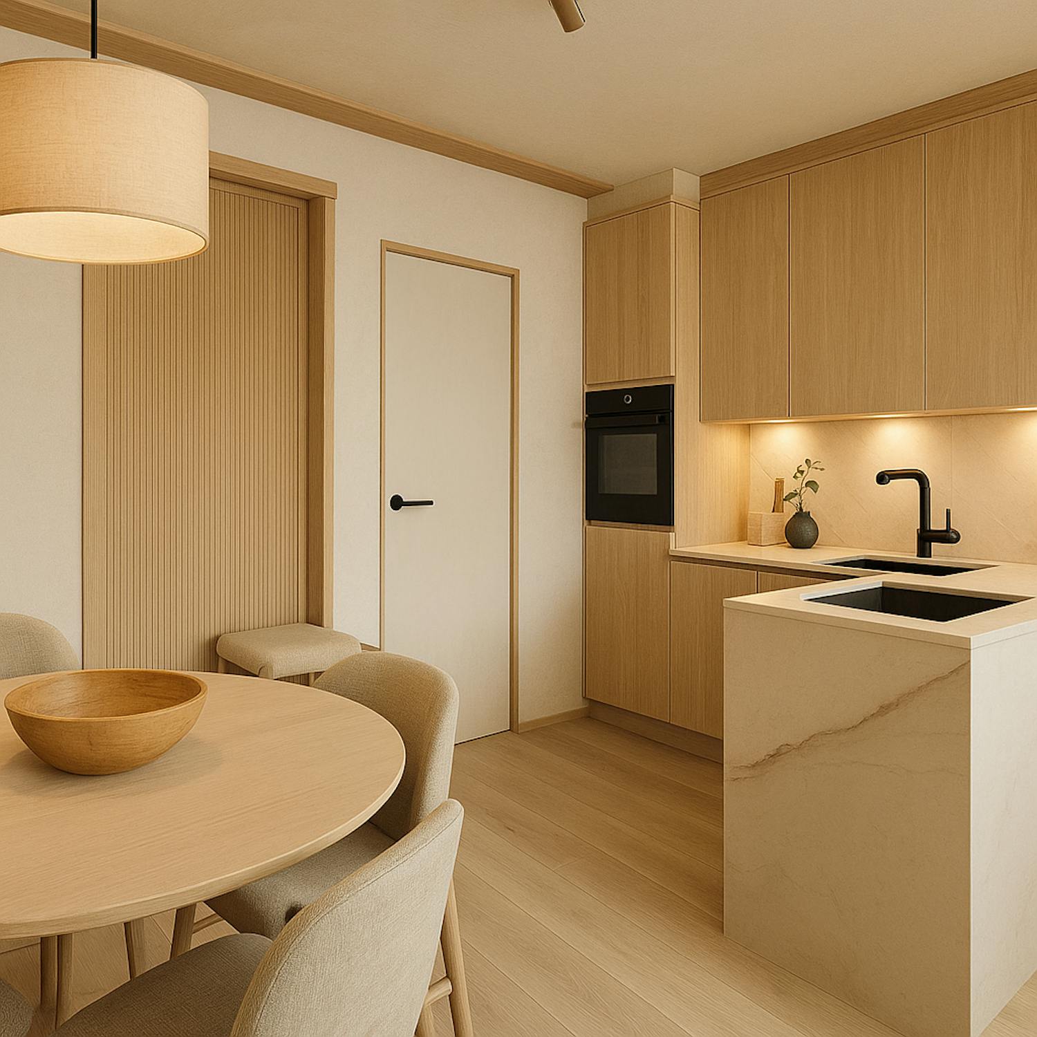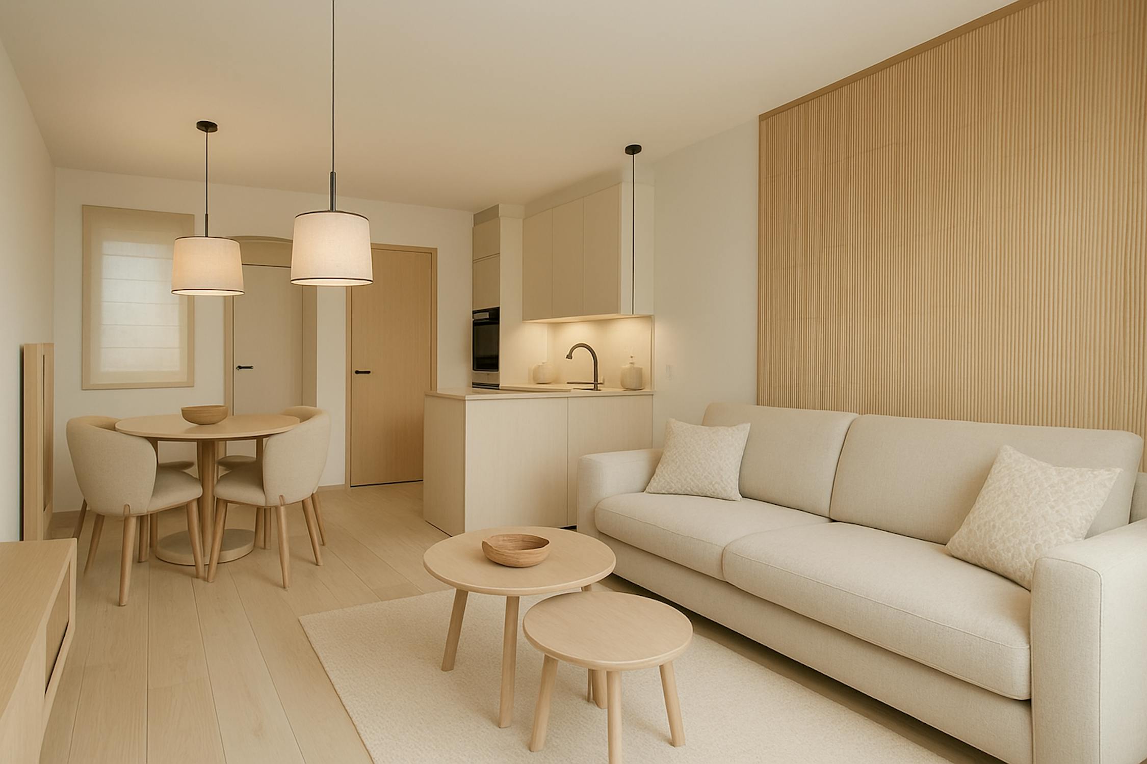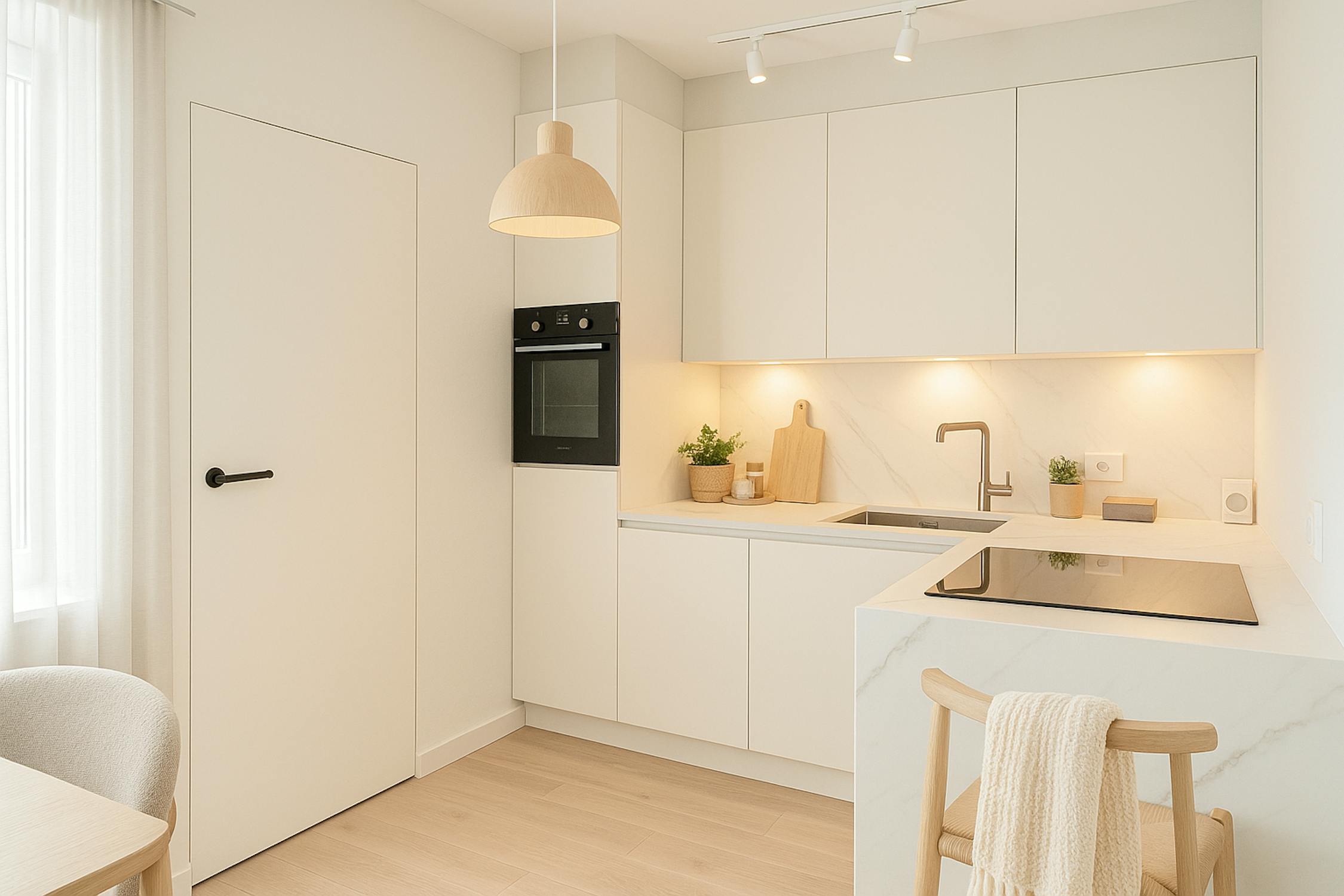- lichtrijke leefruimte (25m²) met open keuken voorzien van koelkast met diepvriesvakje, inductiekookplaat, combi-oven en vaatwas merk Siemens