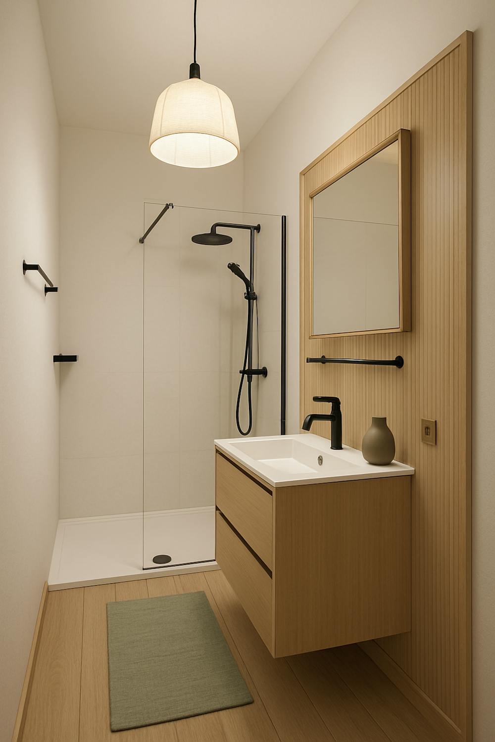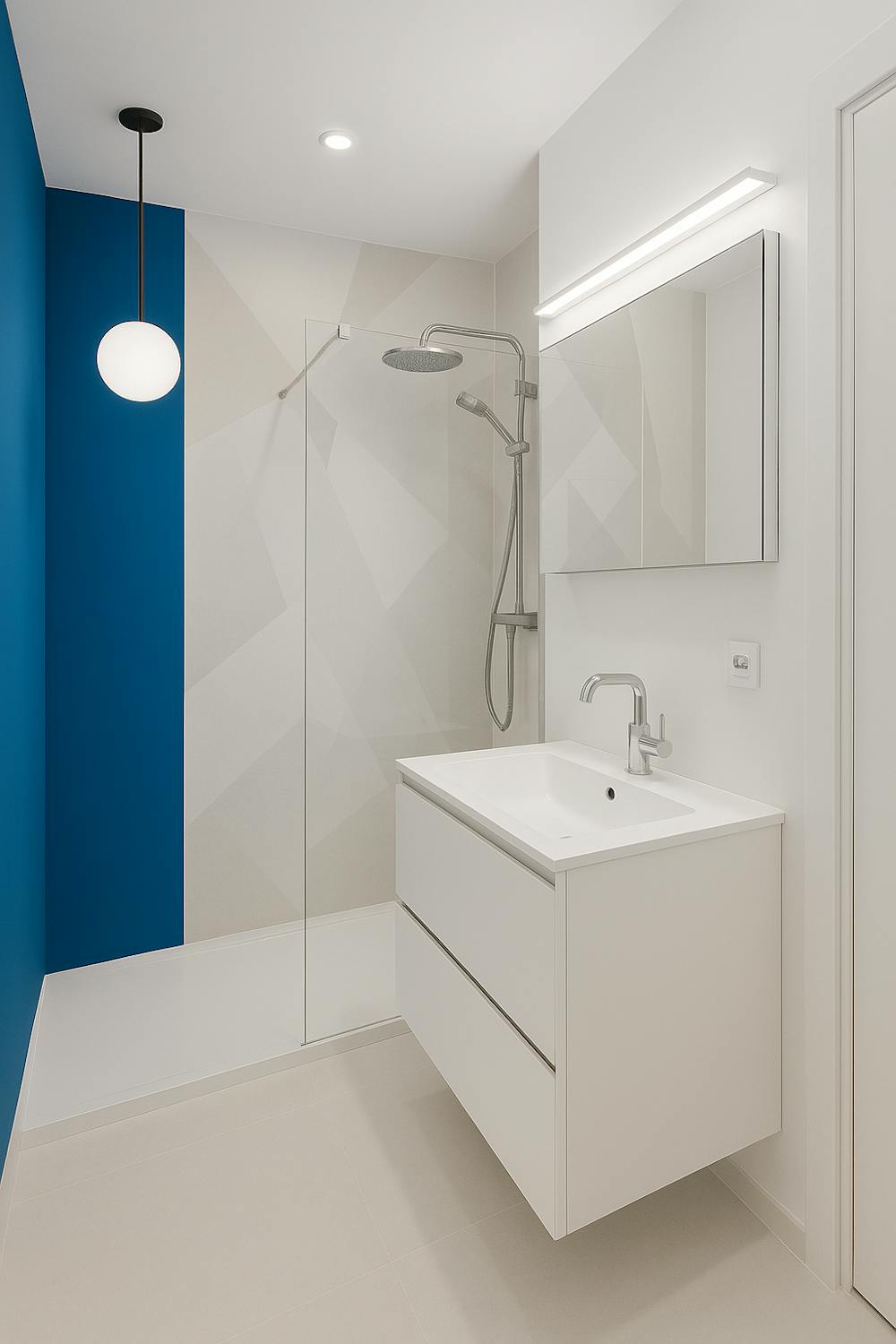 - badkamer (4m²) met douche, toilet en lavabo met spiegelkast