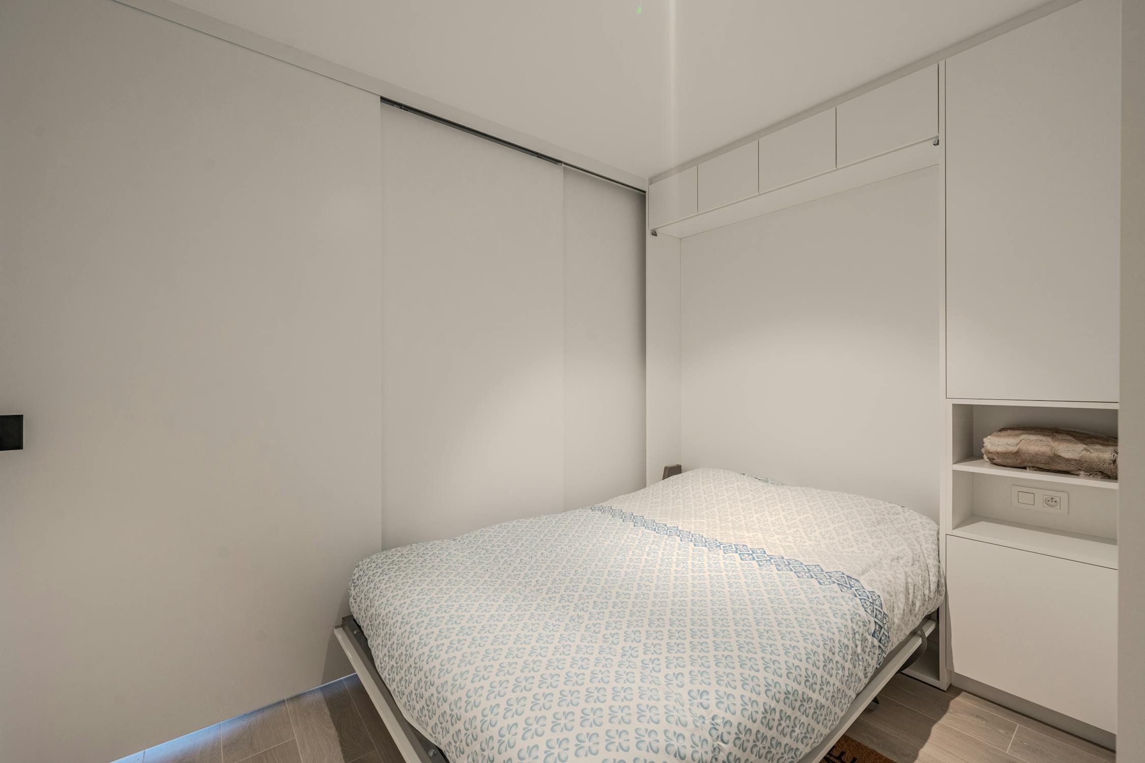 - aparte slaapruimte (7m²) met ingemaakt bed en kasten