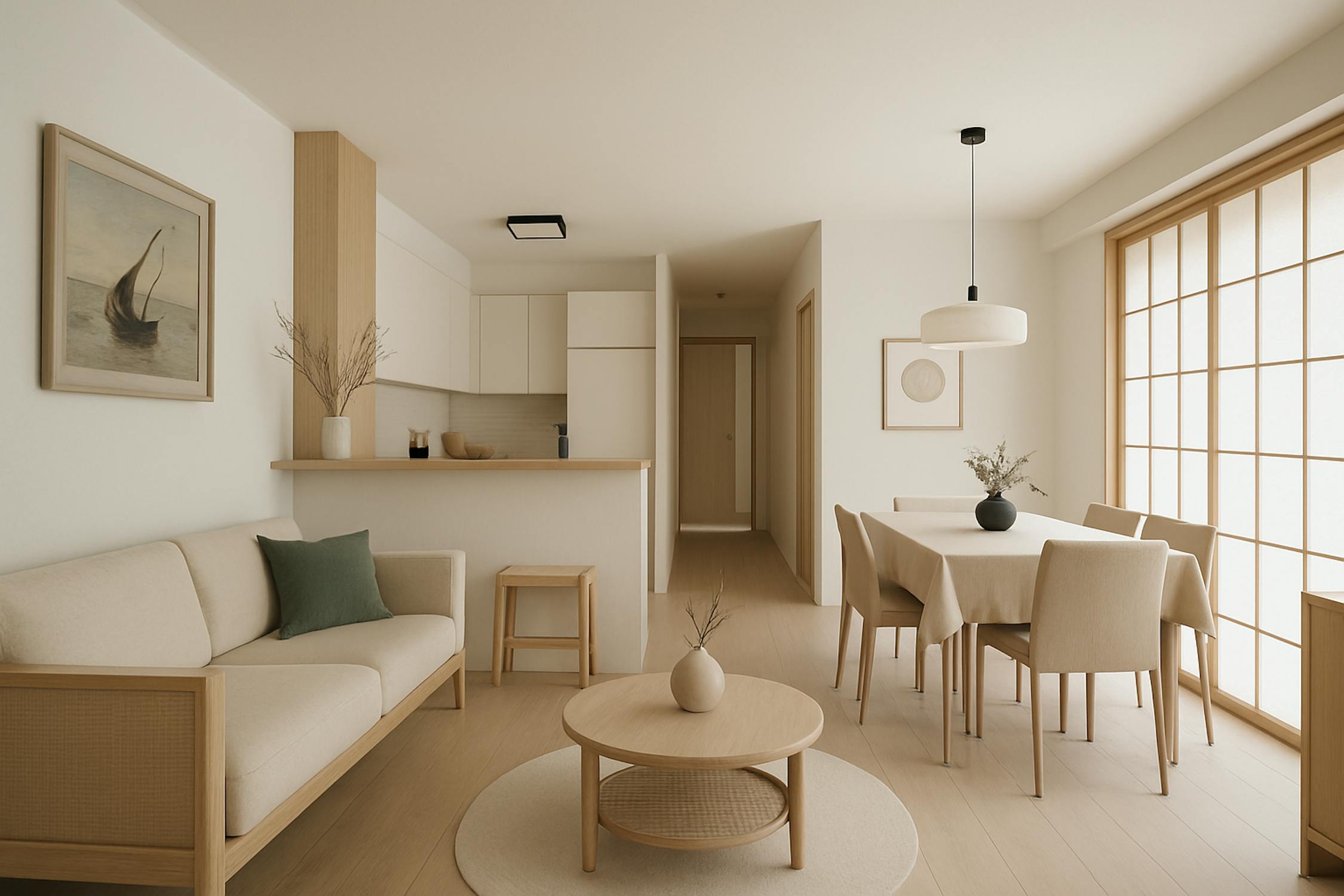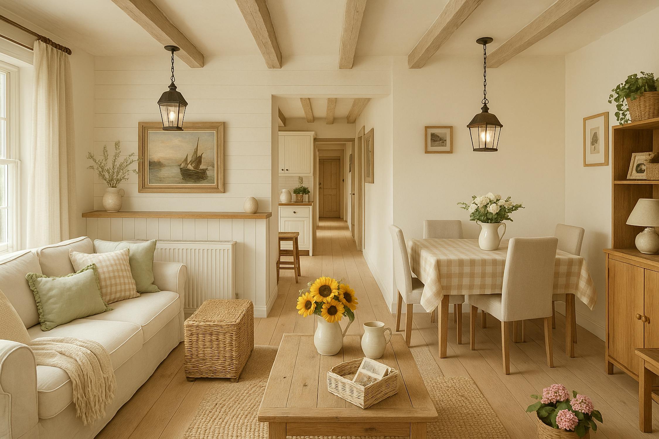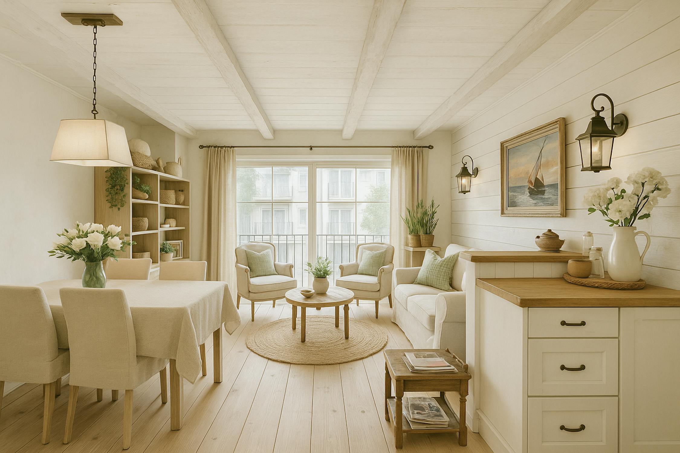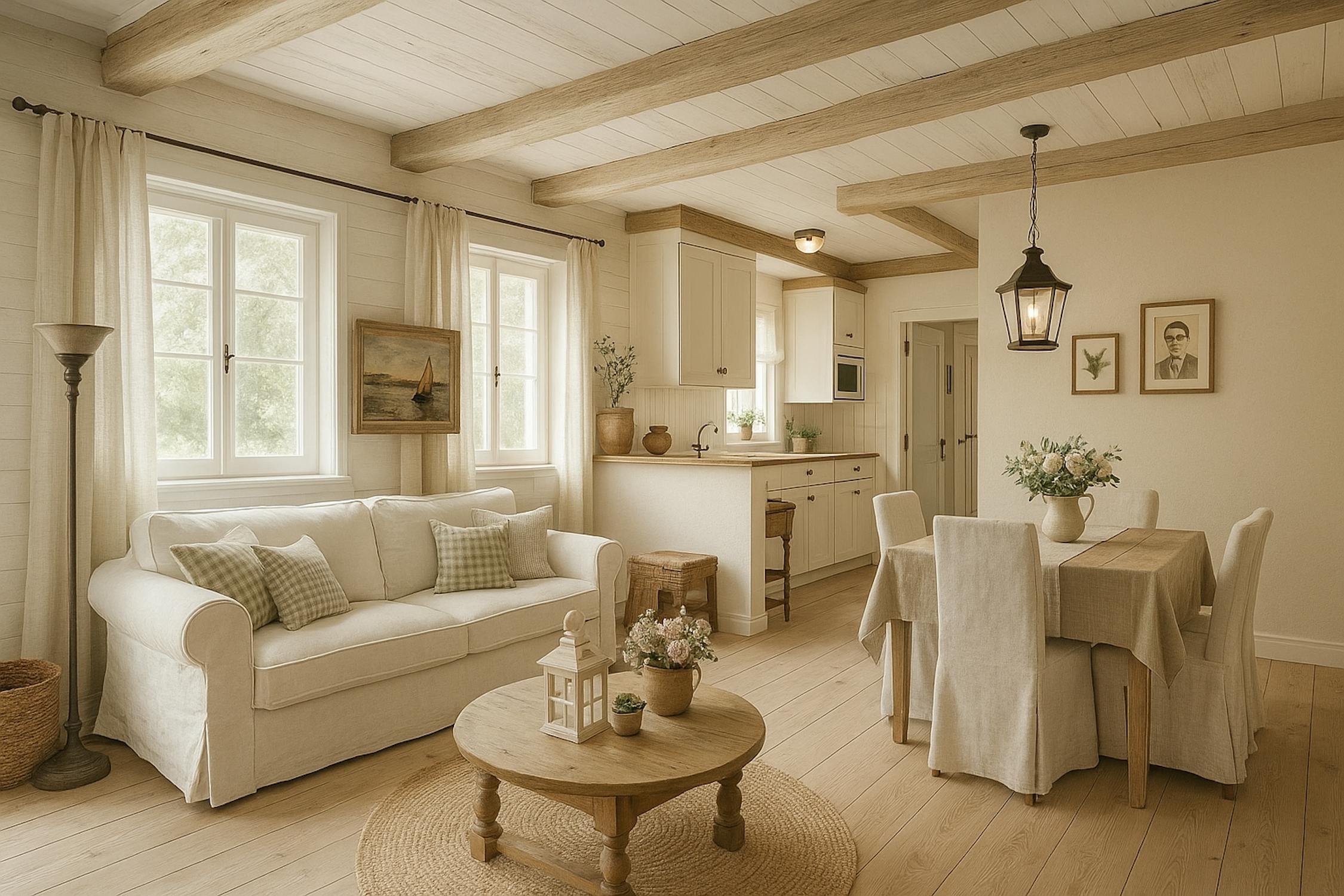 - woonkamer (24m²) met open keuken voorzien van koelkast met diepvriesvakje, vaatwas, elektrische kookplaat en microgolfoven