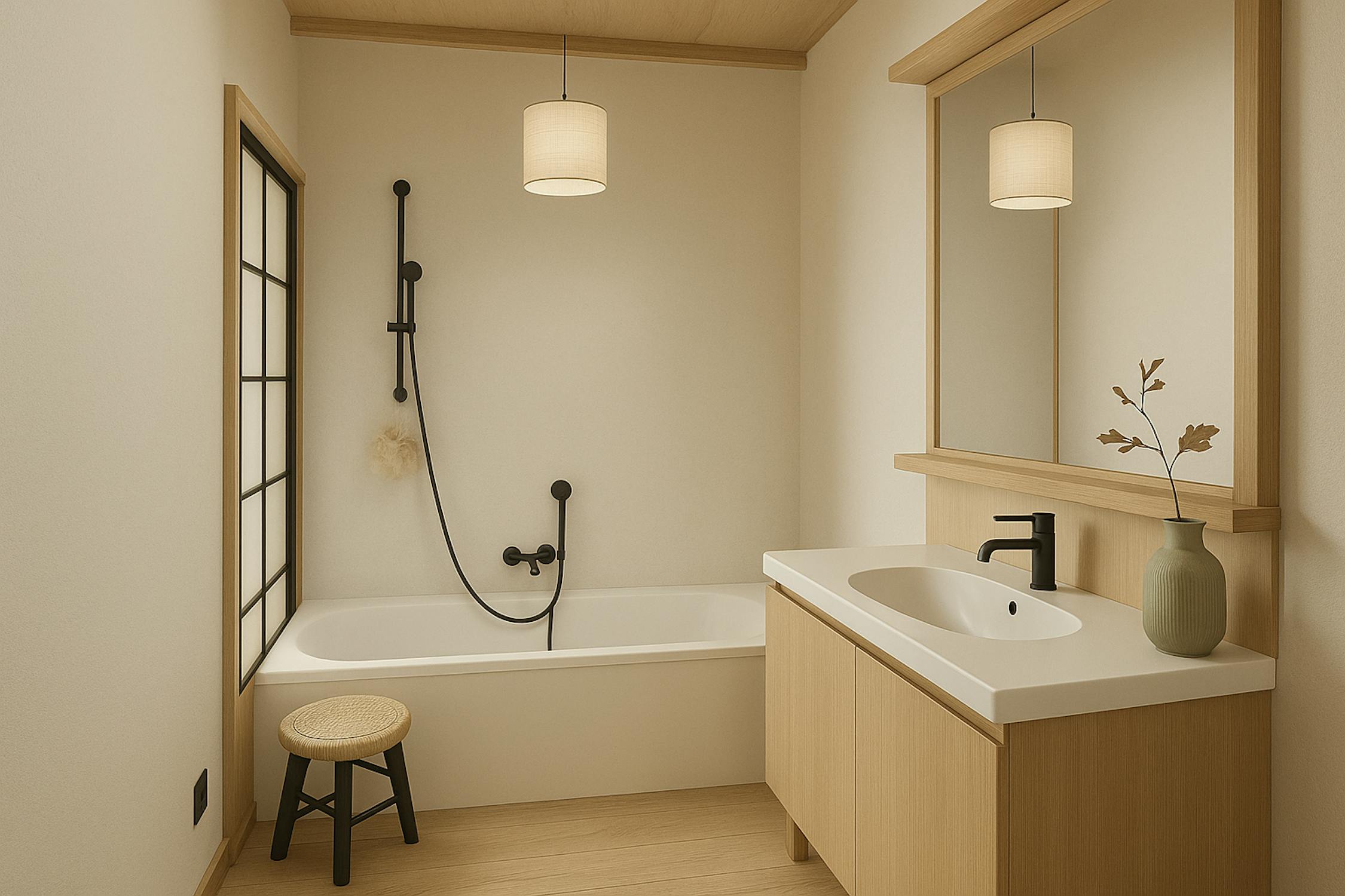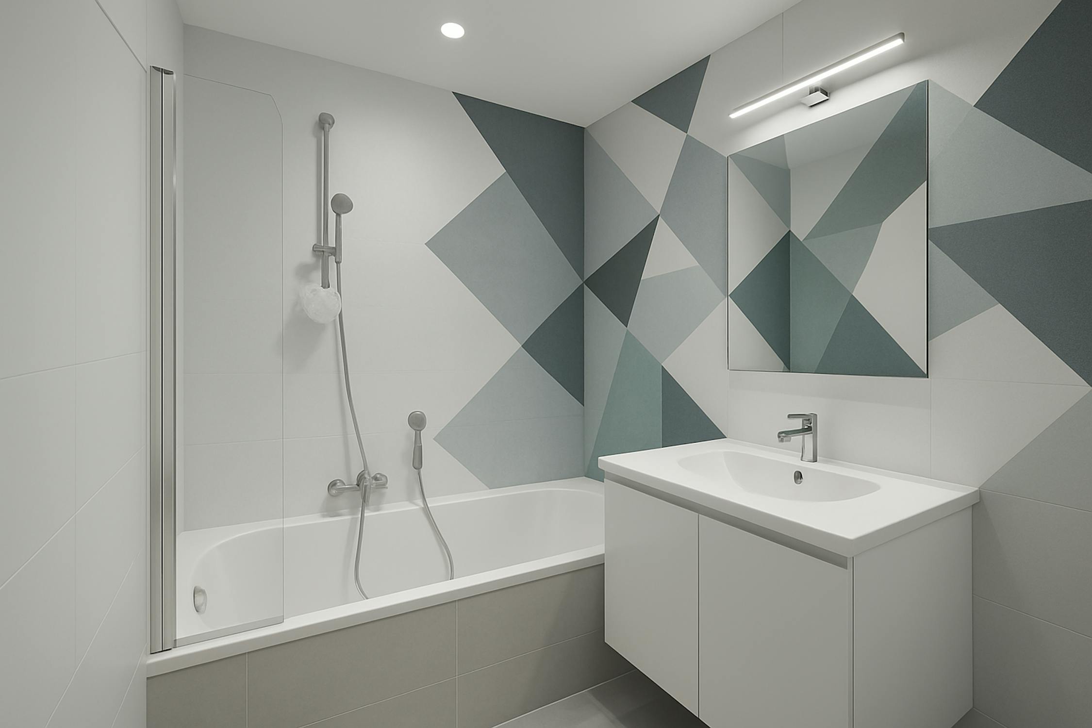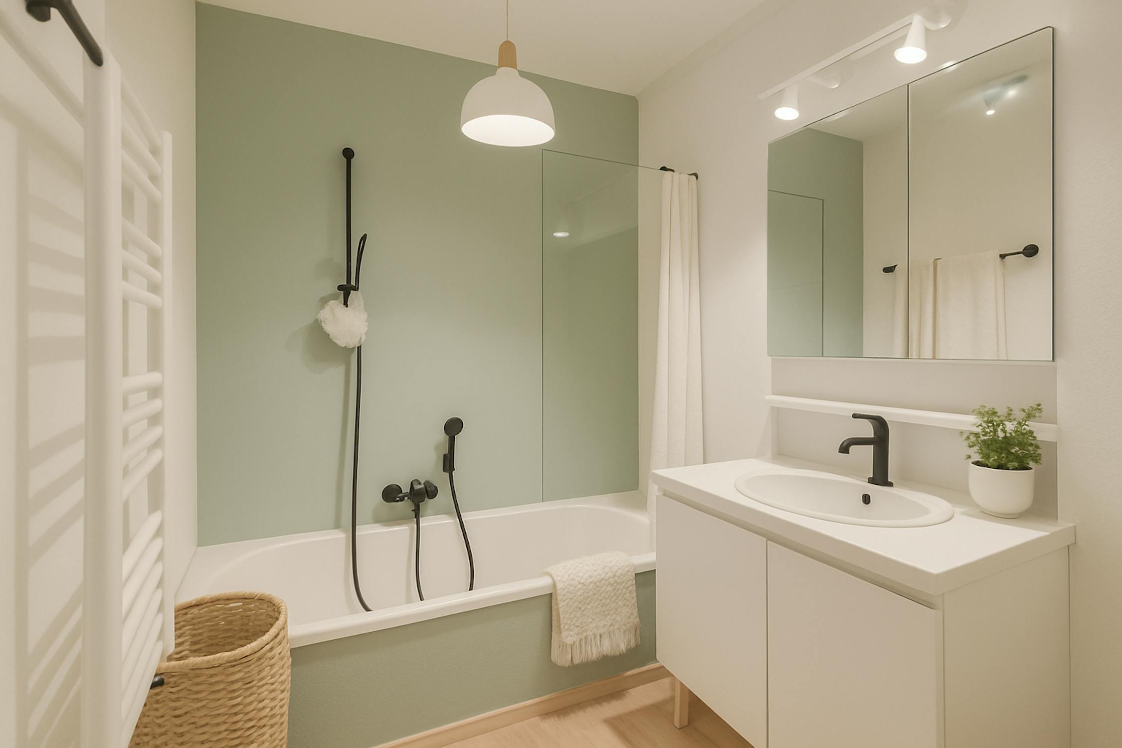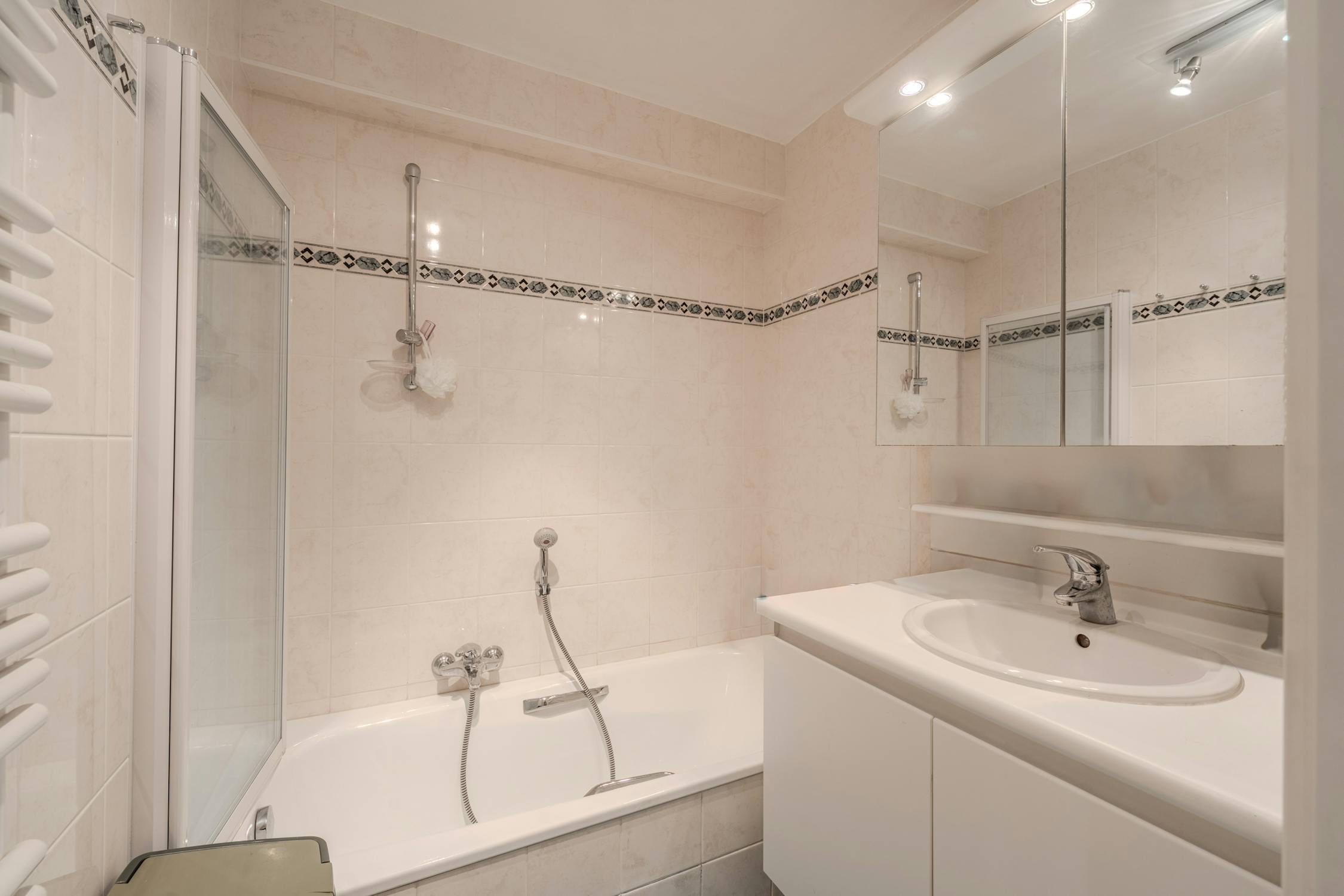 - badkamer 1 (3m²) met bad, lavabo met meubel en handdoekradiator