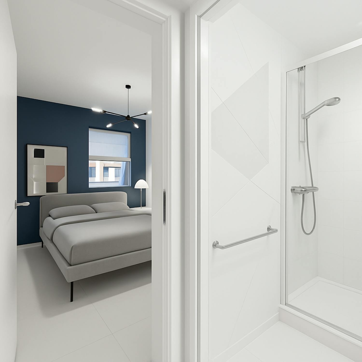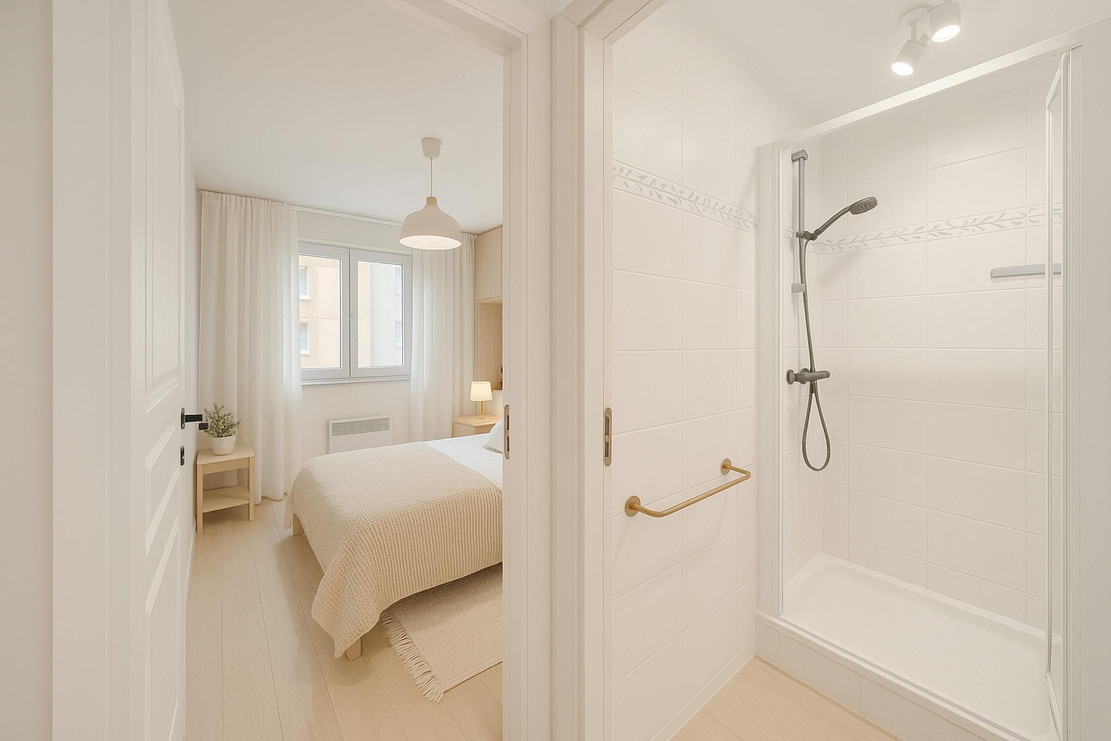 - badkamer 2 (3m²) met douche en lavabo