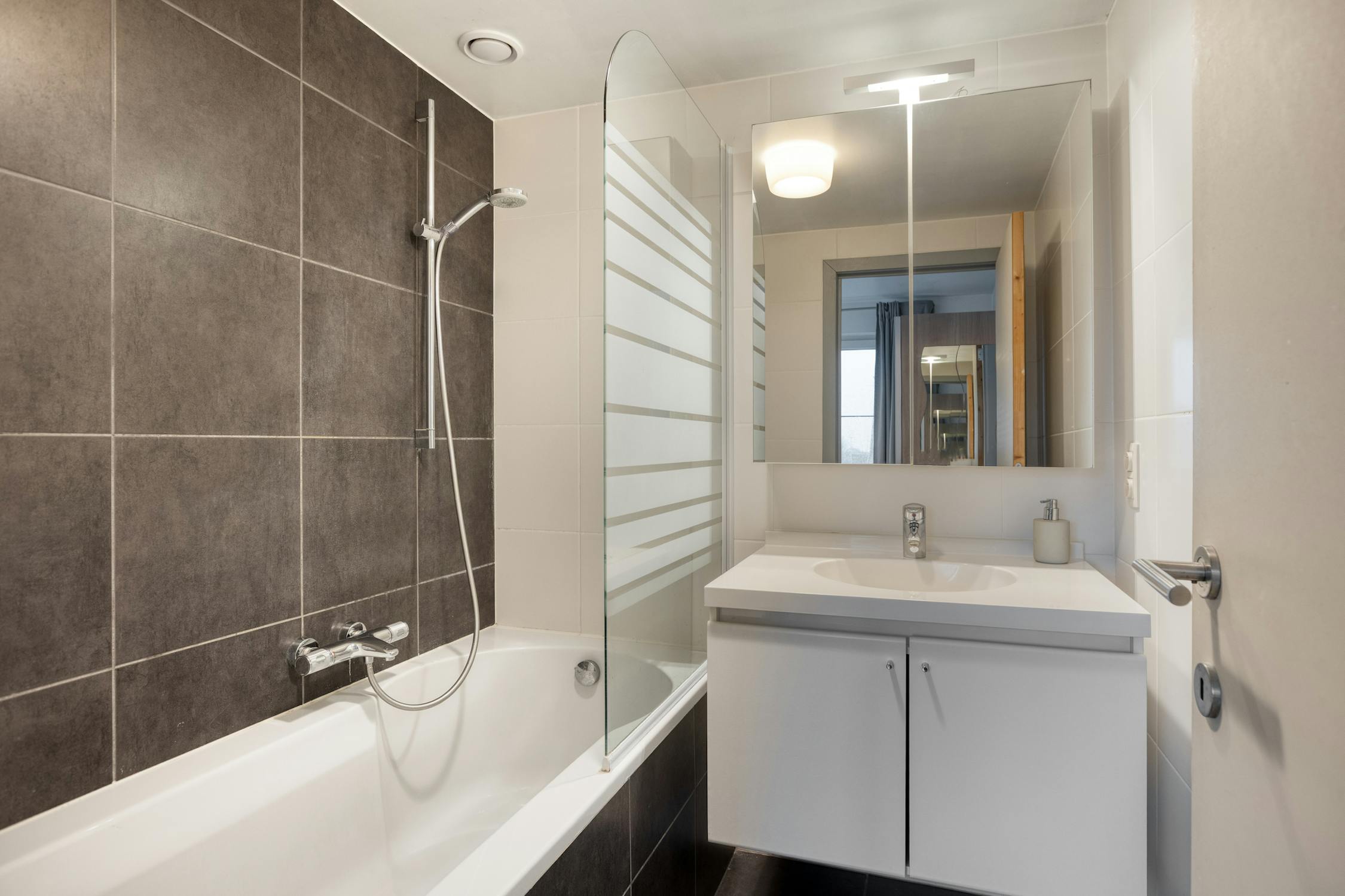 - badkamer met wasmeubel, spiegelkast en ligbad