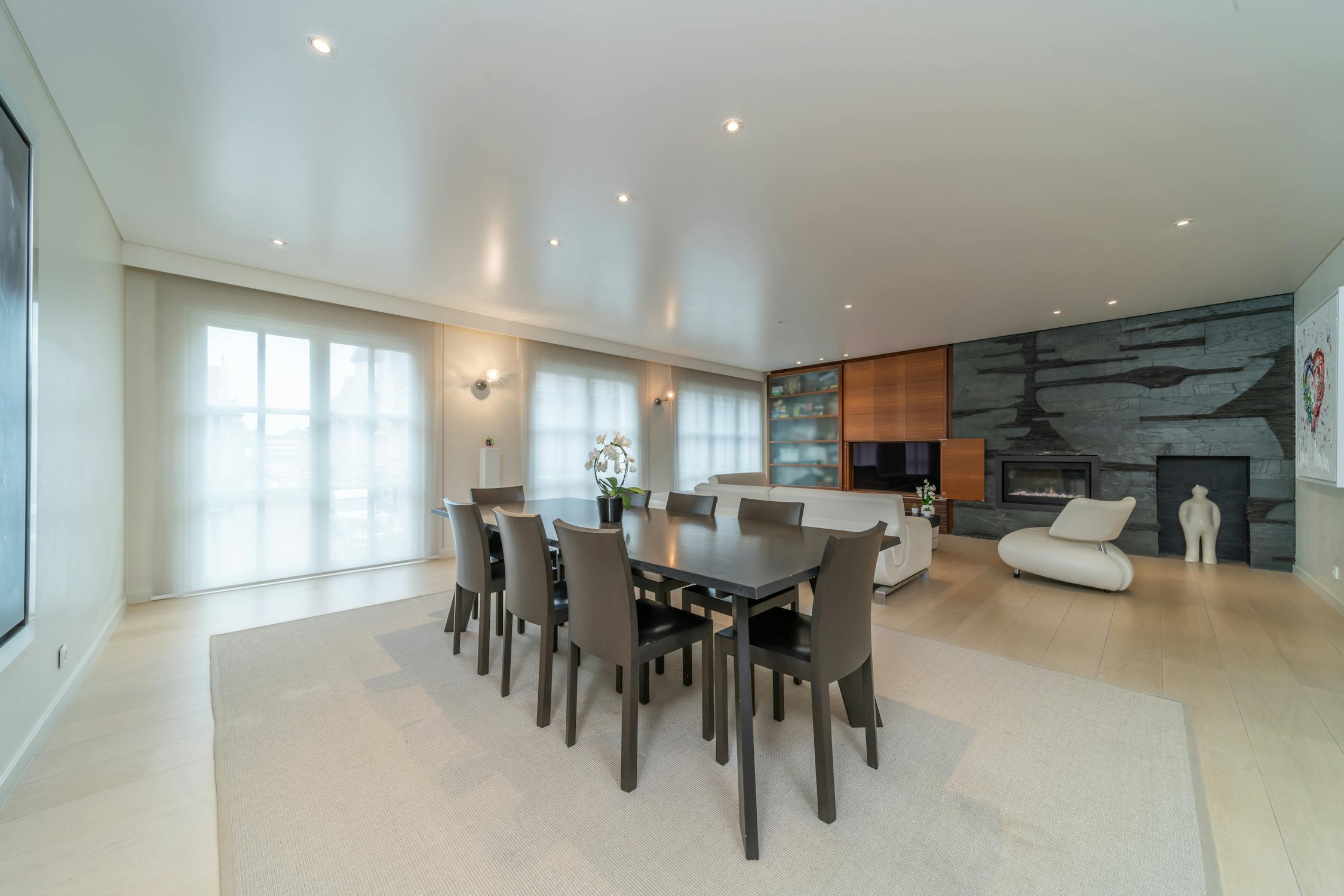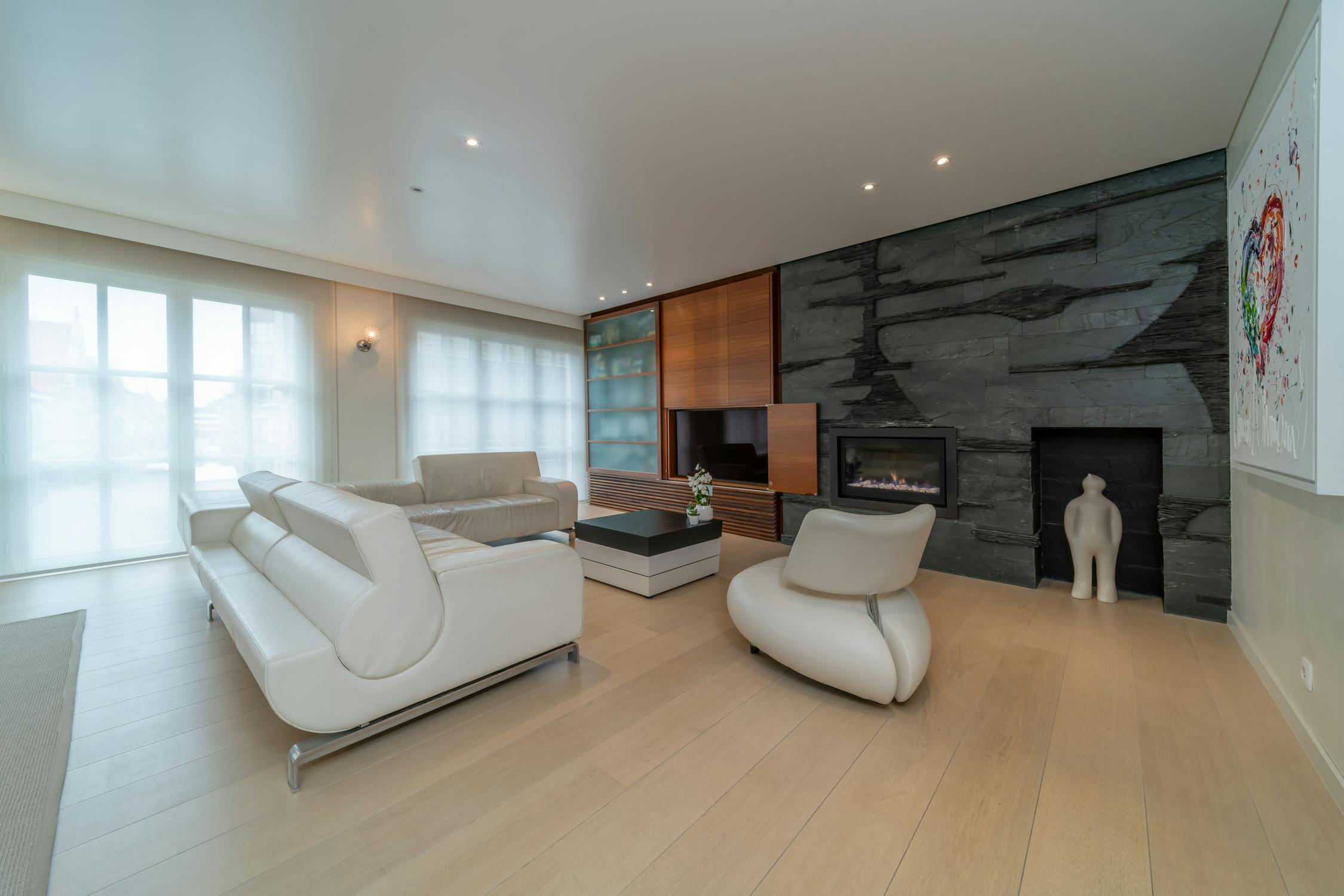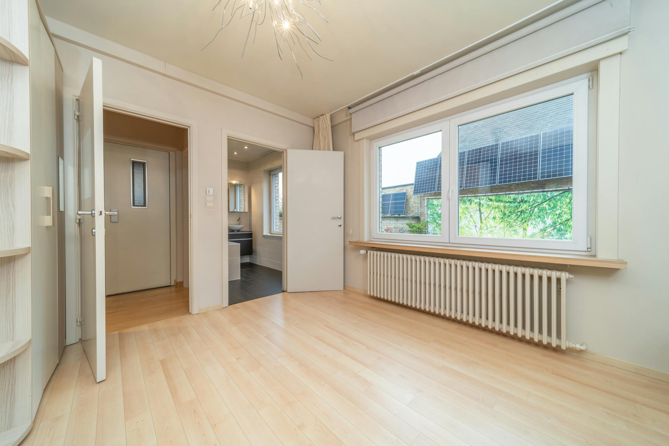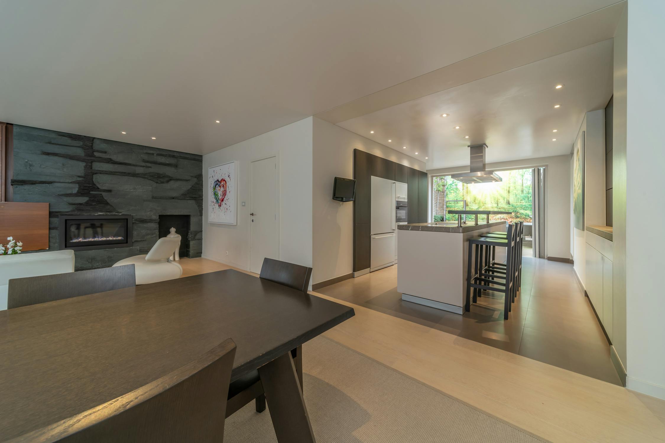 - lichtrijke leefruimte met parket, gashaard en inbouw kasten