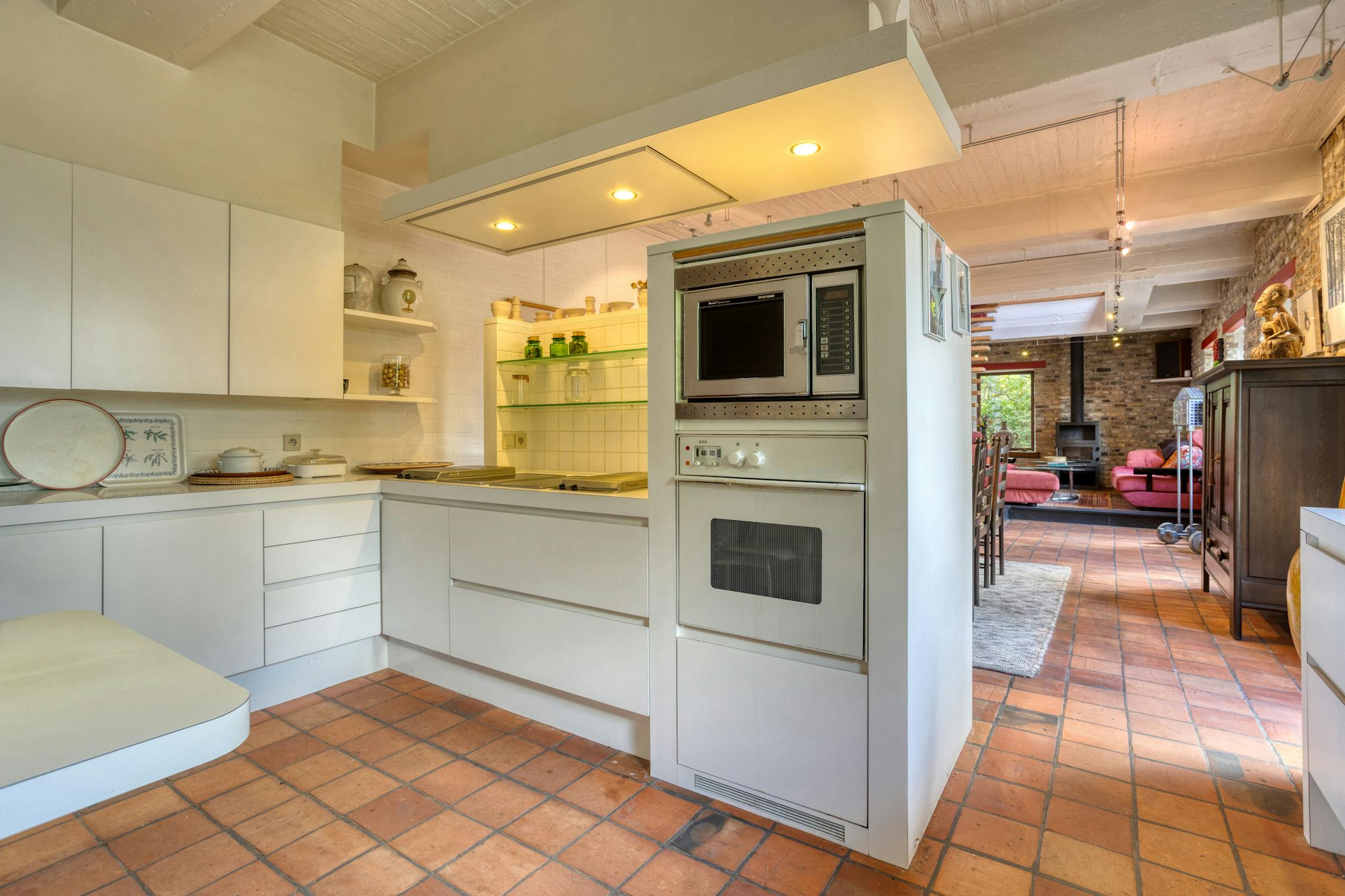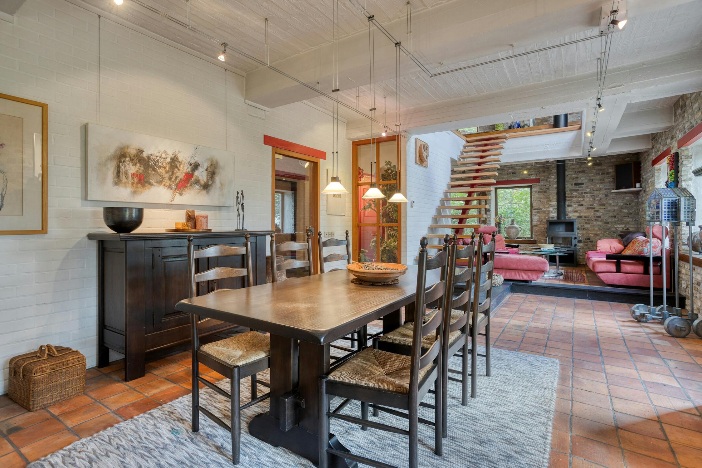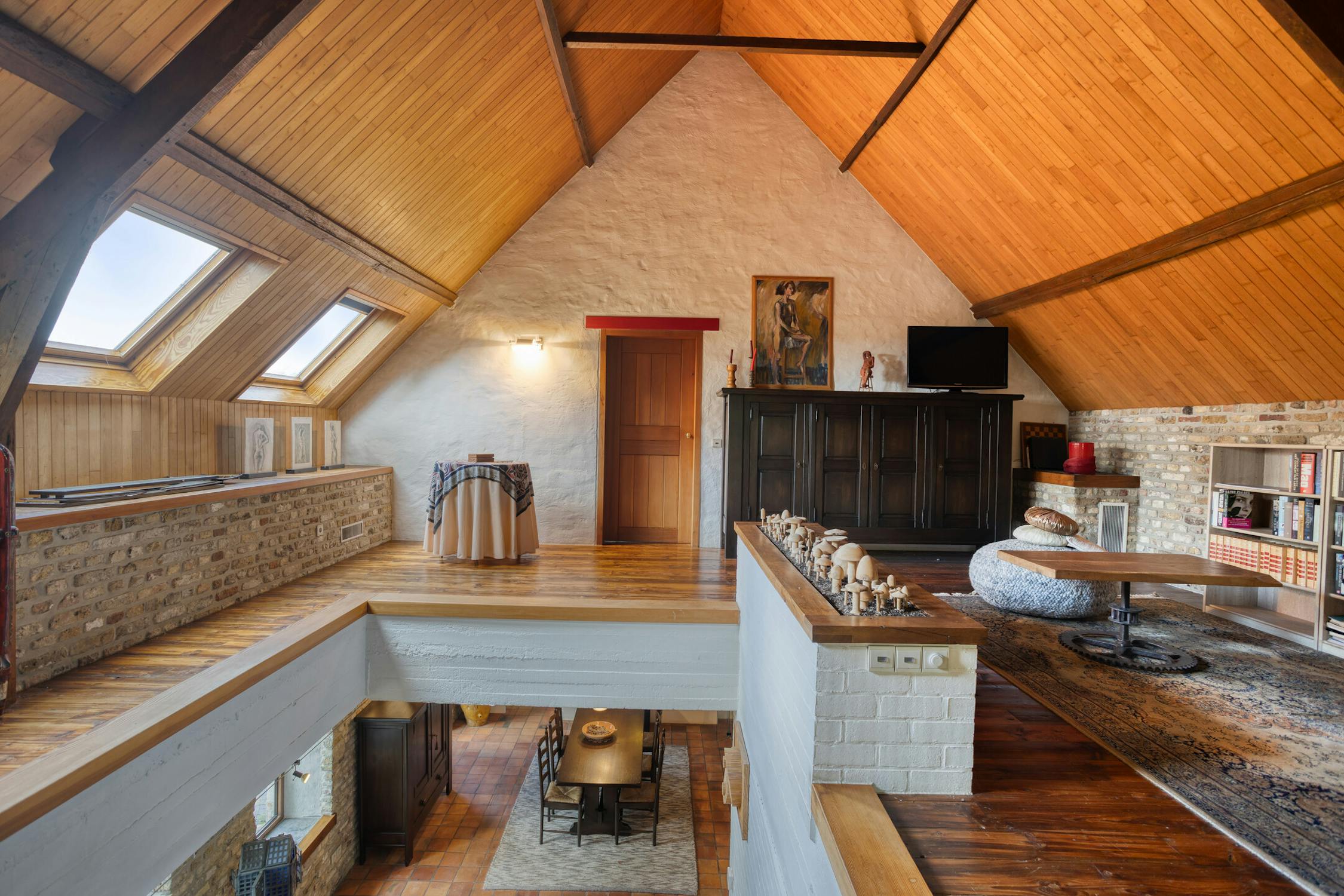 Met een bewoonbare oppervlakte van 363 m² biedt deze woning volop ruimte en licht. Op het gelijkvloers bevinden zich een inkomhal met gastentoilet, een ruime leefruimte met gezellige Finse kachel, een halfopen OBUMEX-keuken, een technische ruimte, berging en een polyvalente hobbykamer die tal van mogelijkheden biedt.