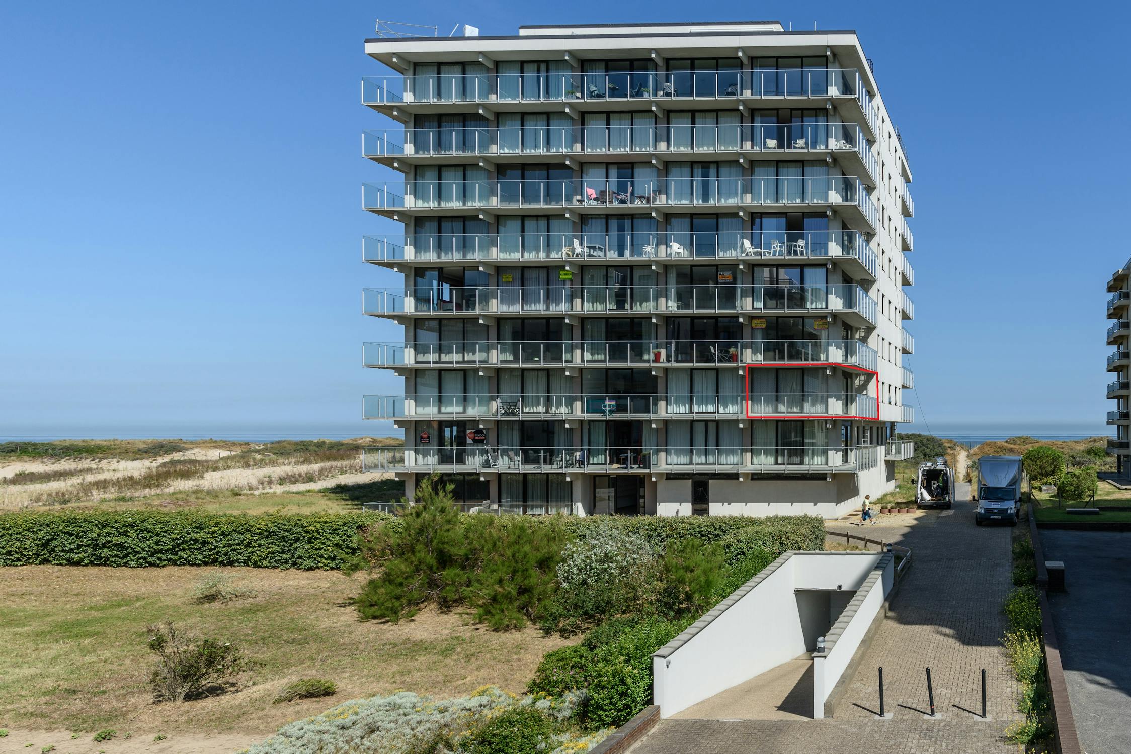 Hoekappartement met zeezicht, 1 slaapkamer en autostaanplaats in De Panne