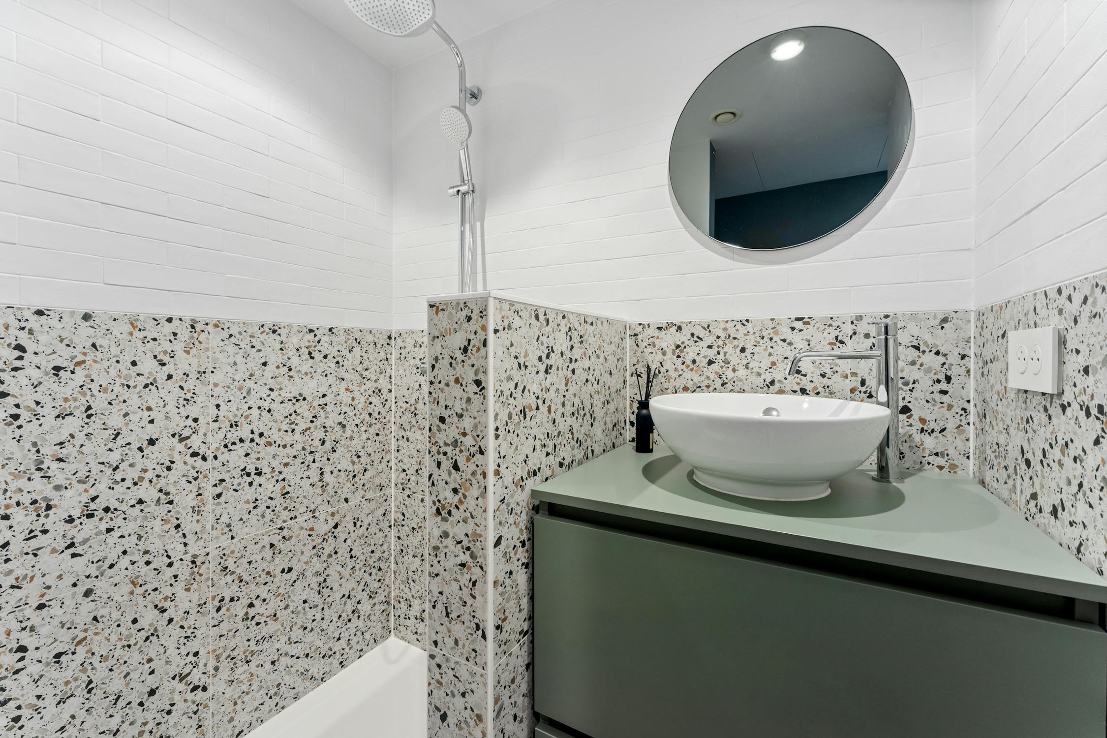 - badkamer met toilet, lavabo en douche