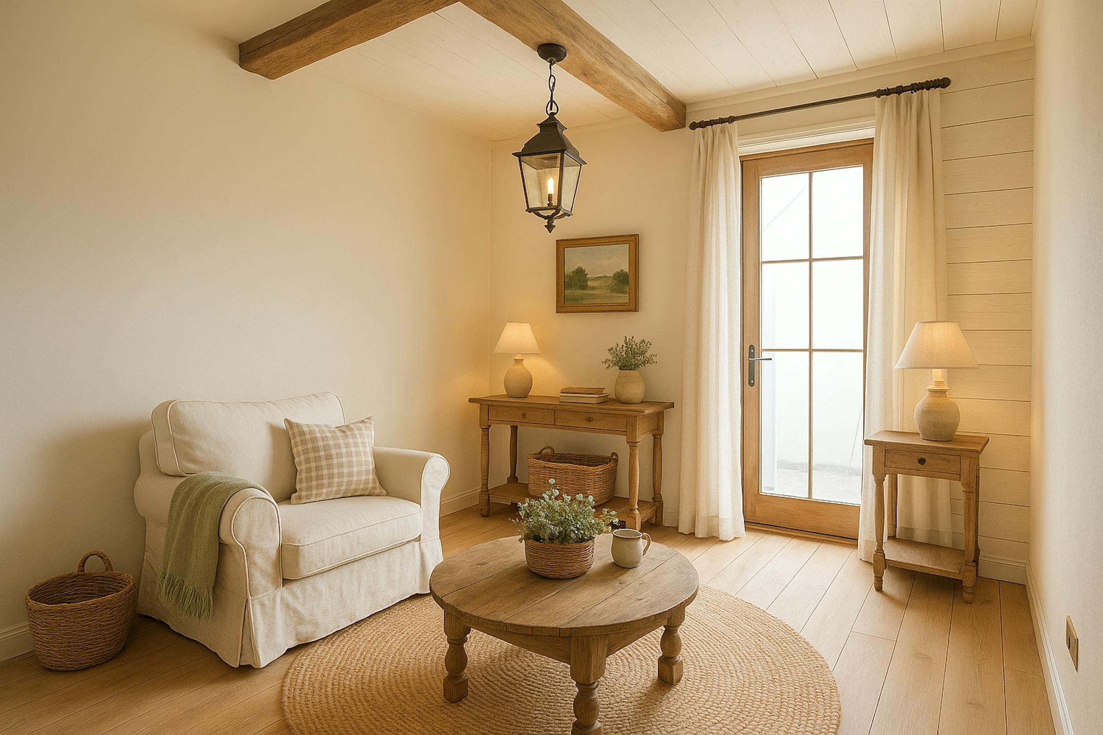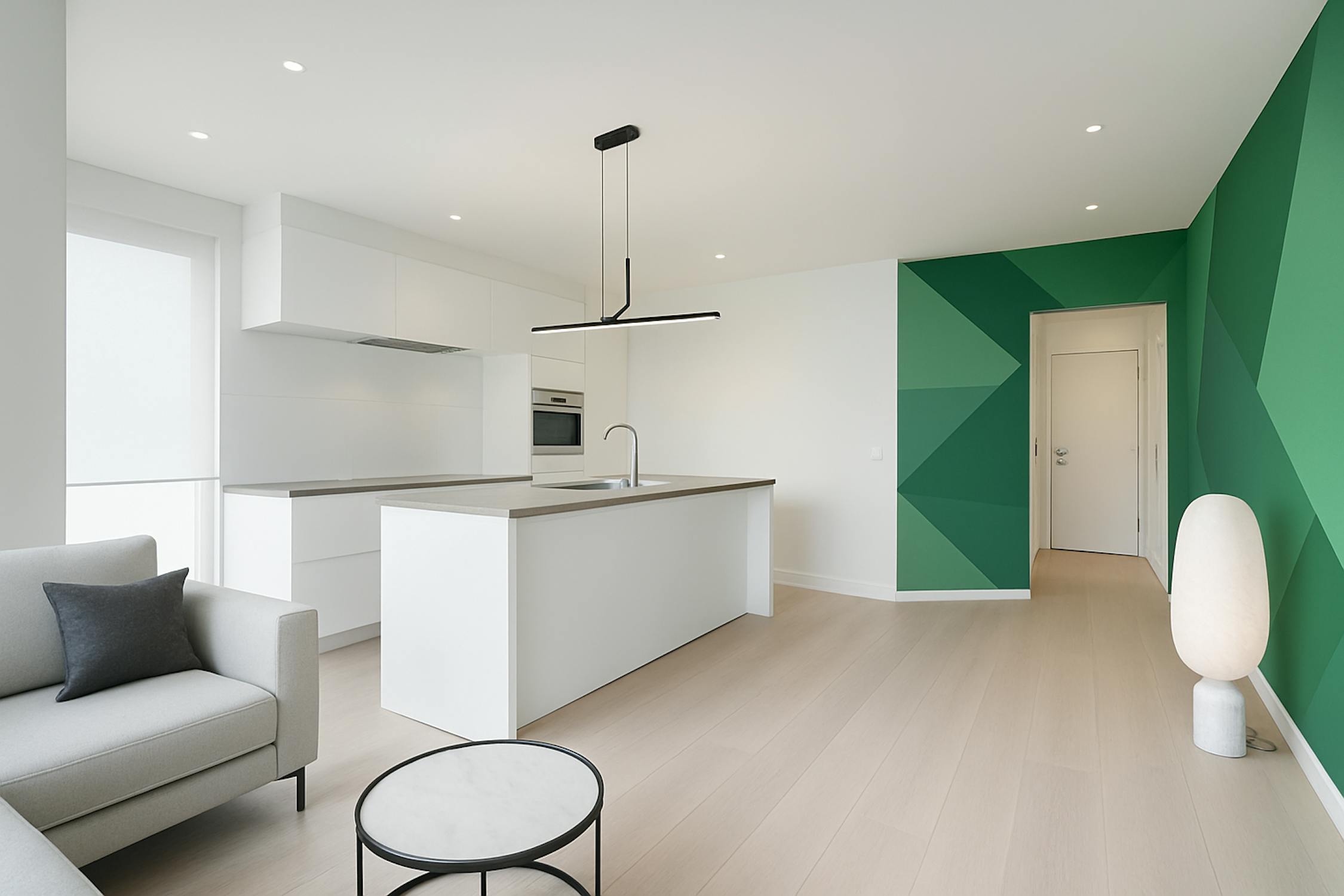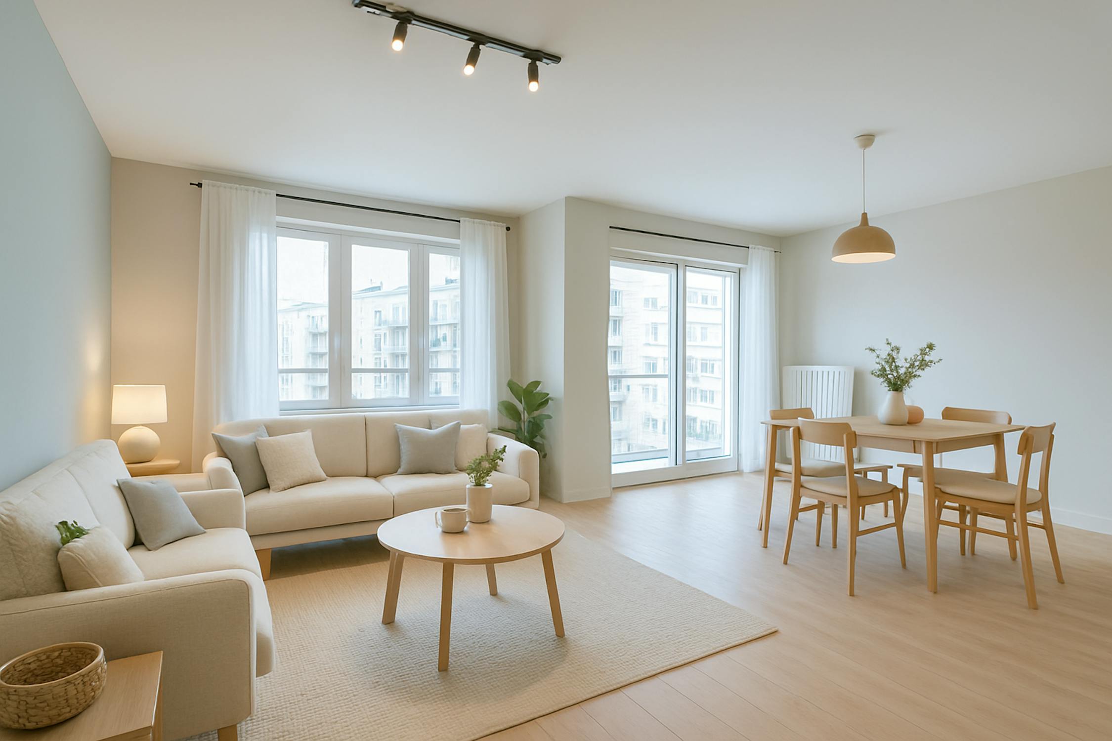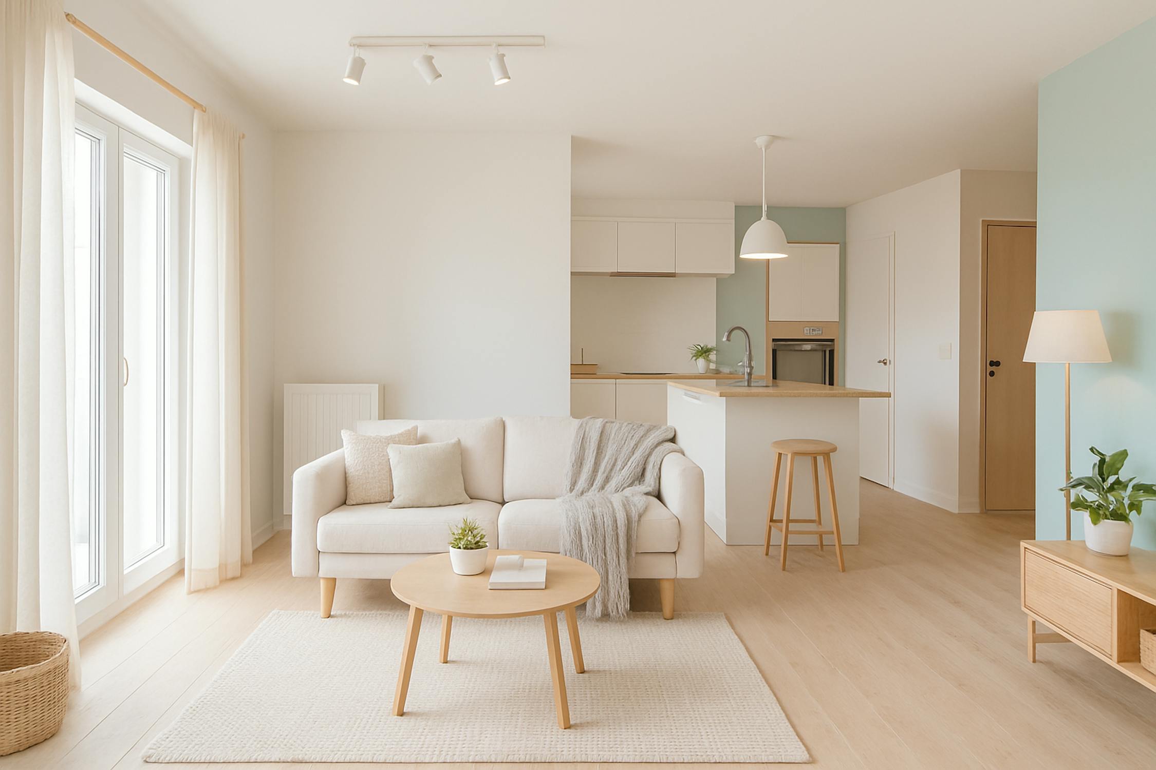 - Ruime en lichtrijke leefruimte met toegang tot het terras aan de voorkant;