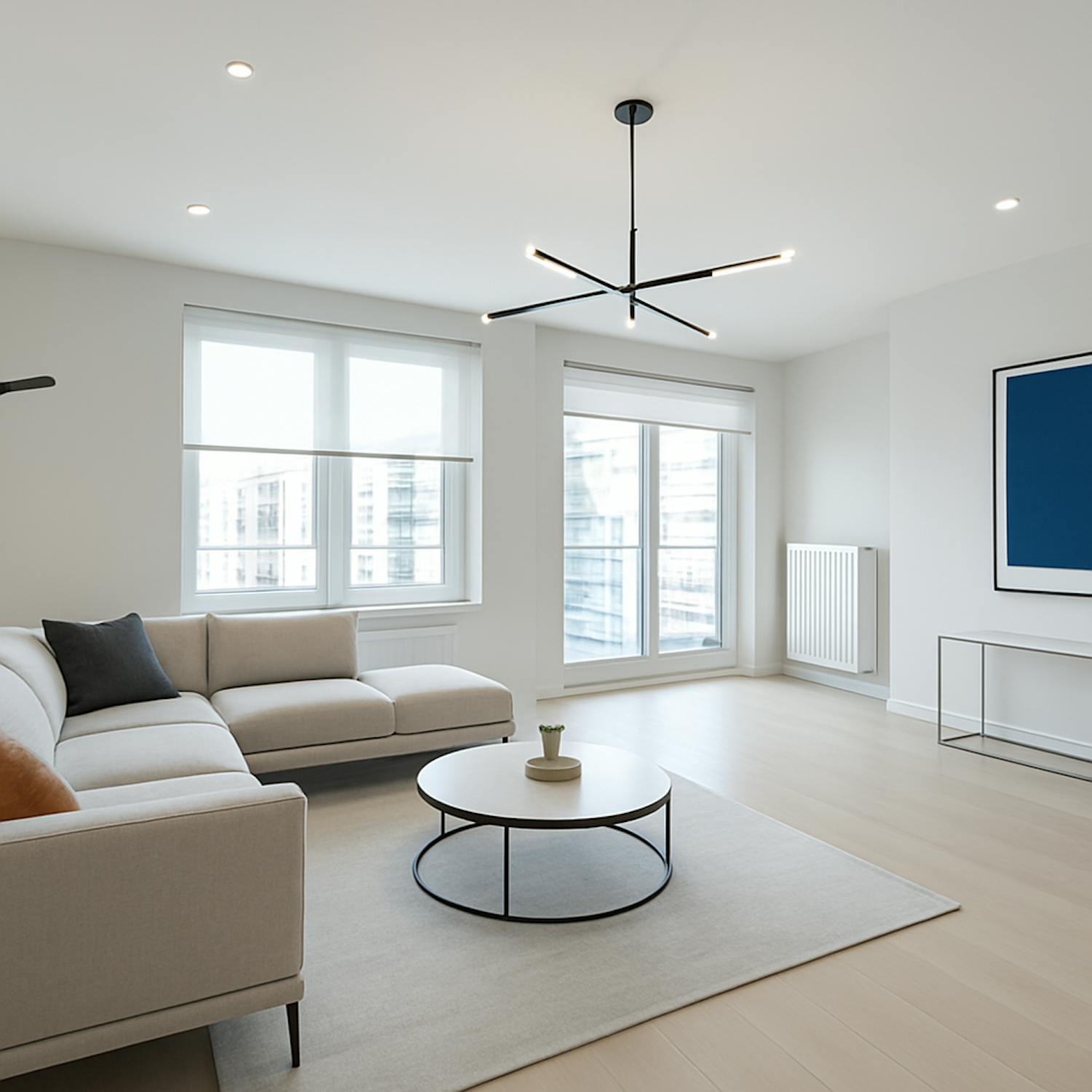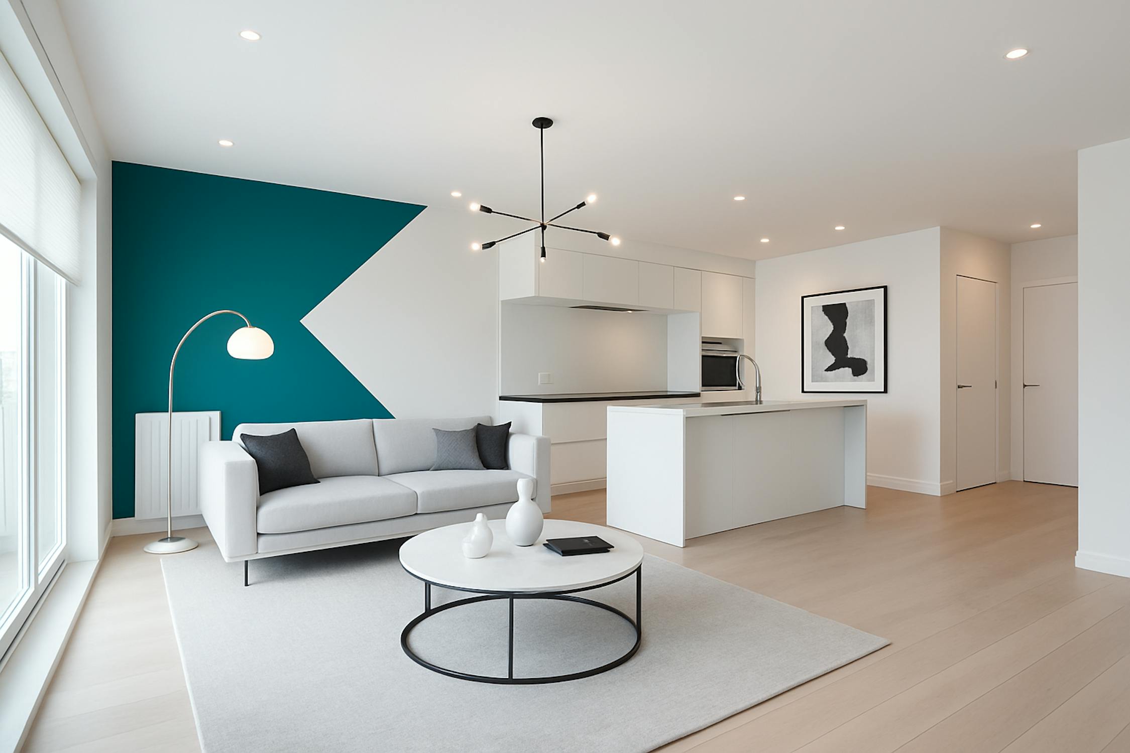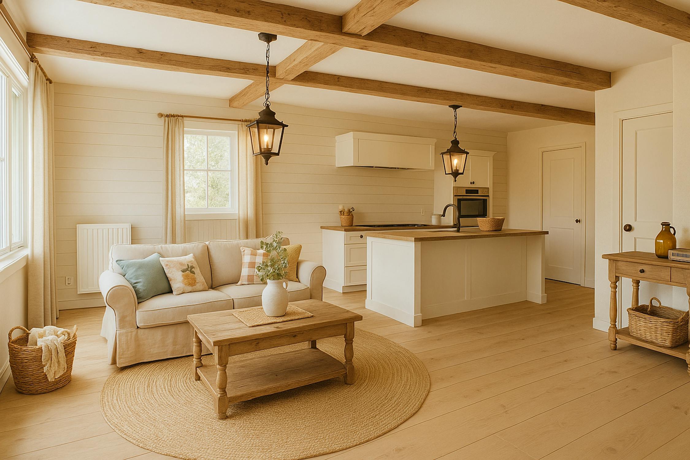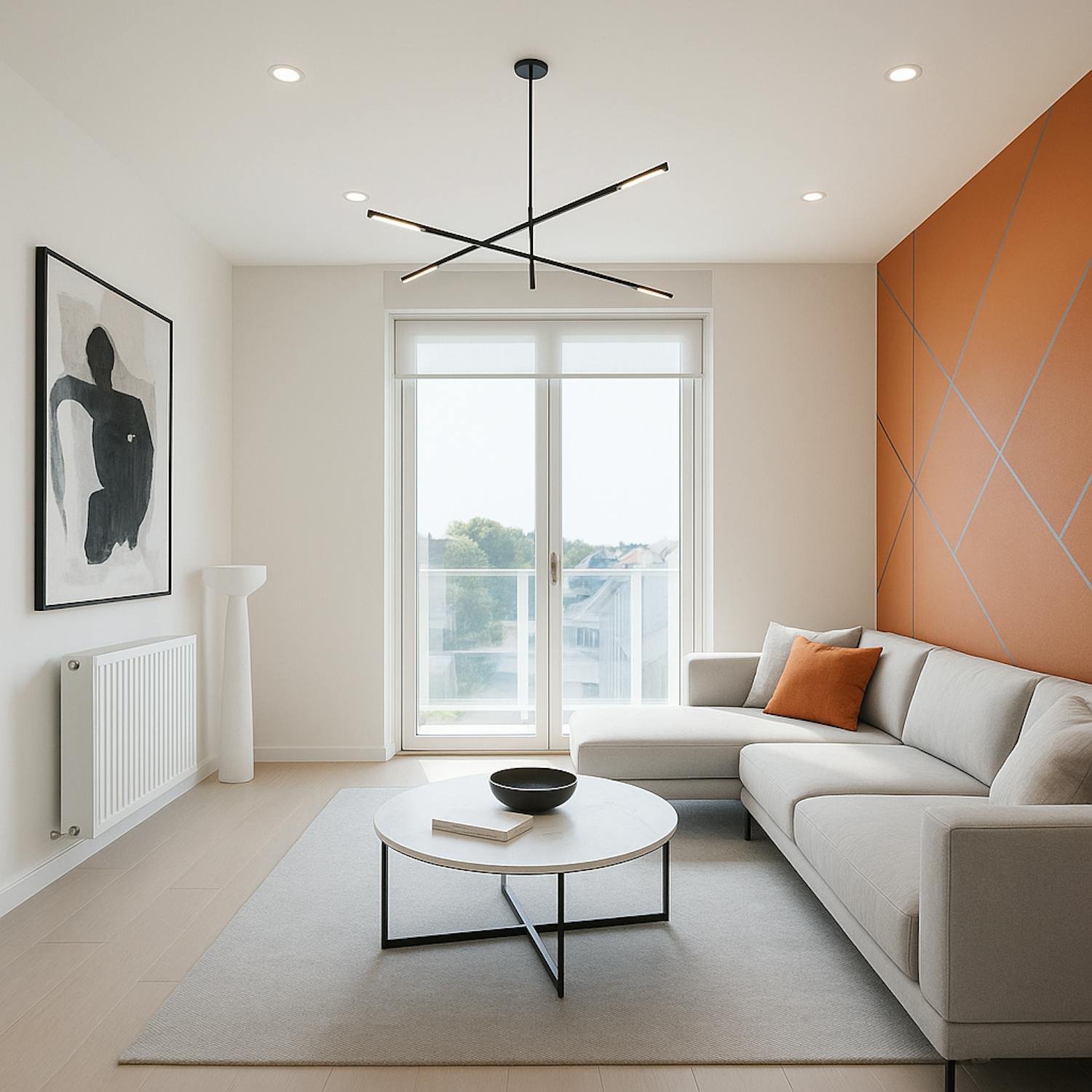 - Ruime en lichtrijke leefruimte met toegang tot het terras aan de voorkant;